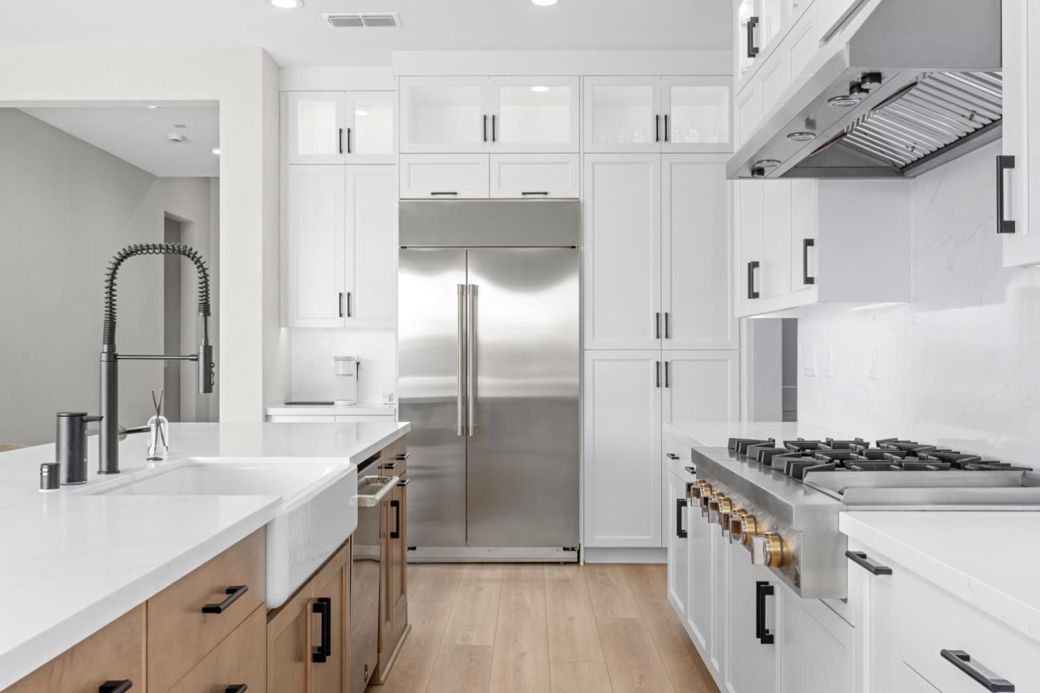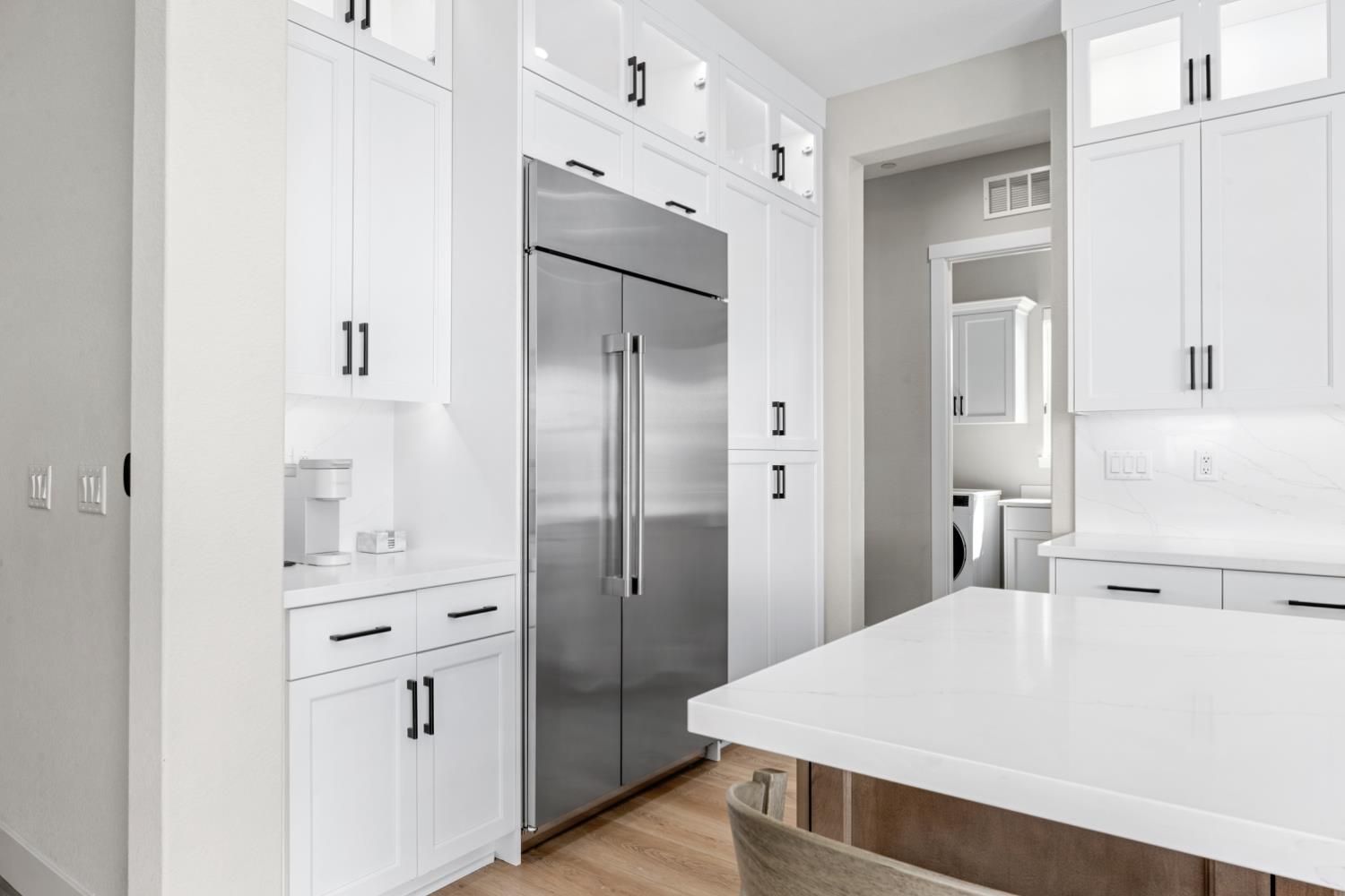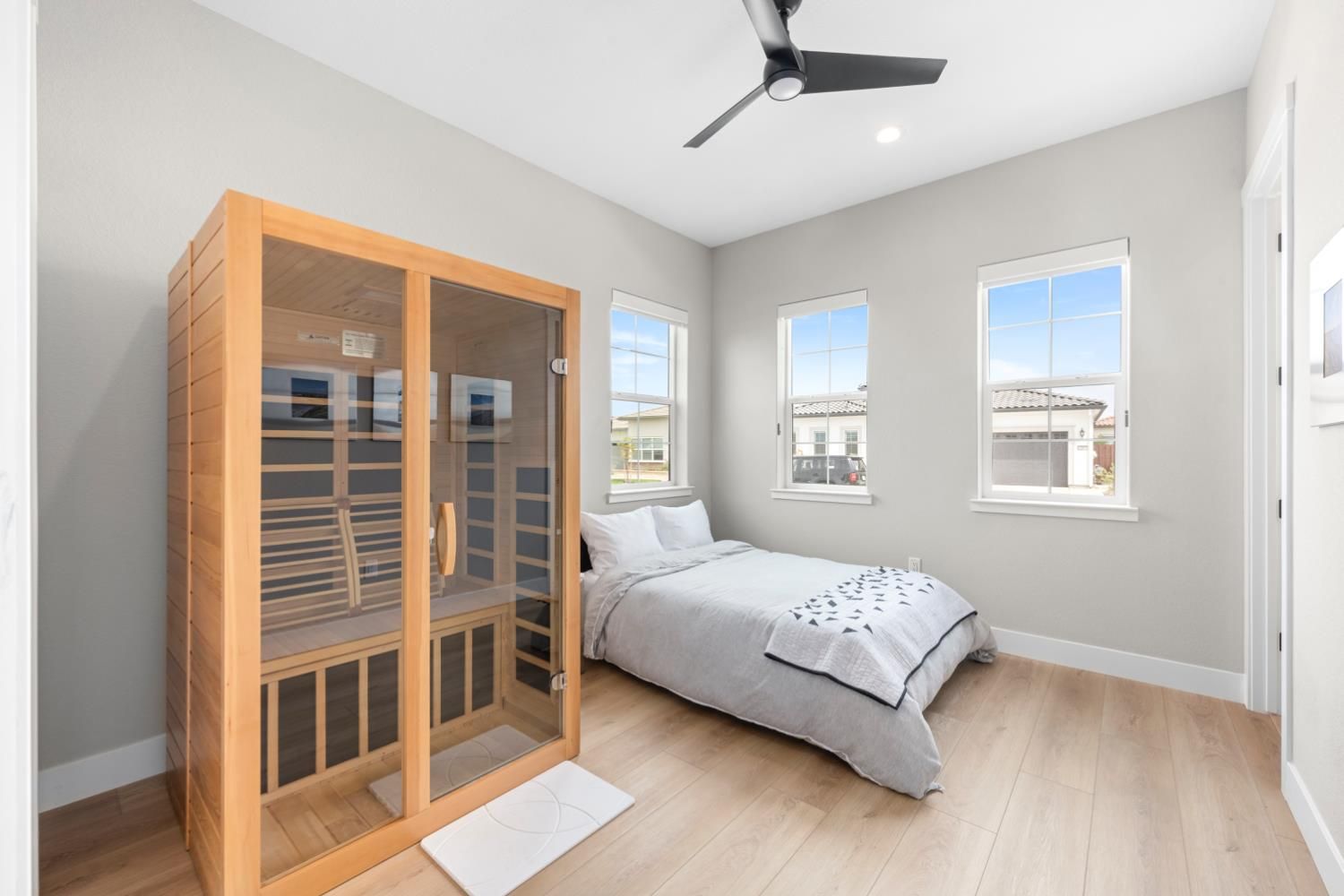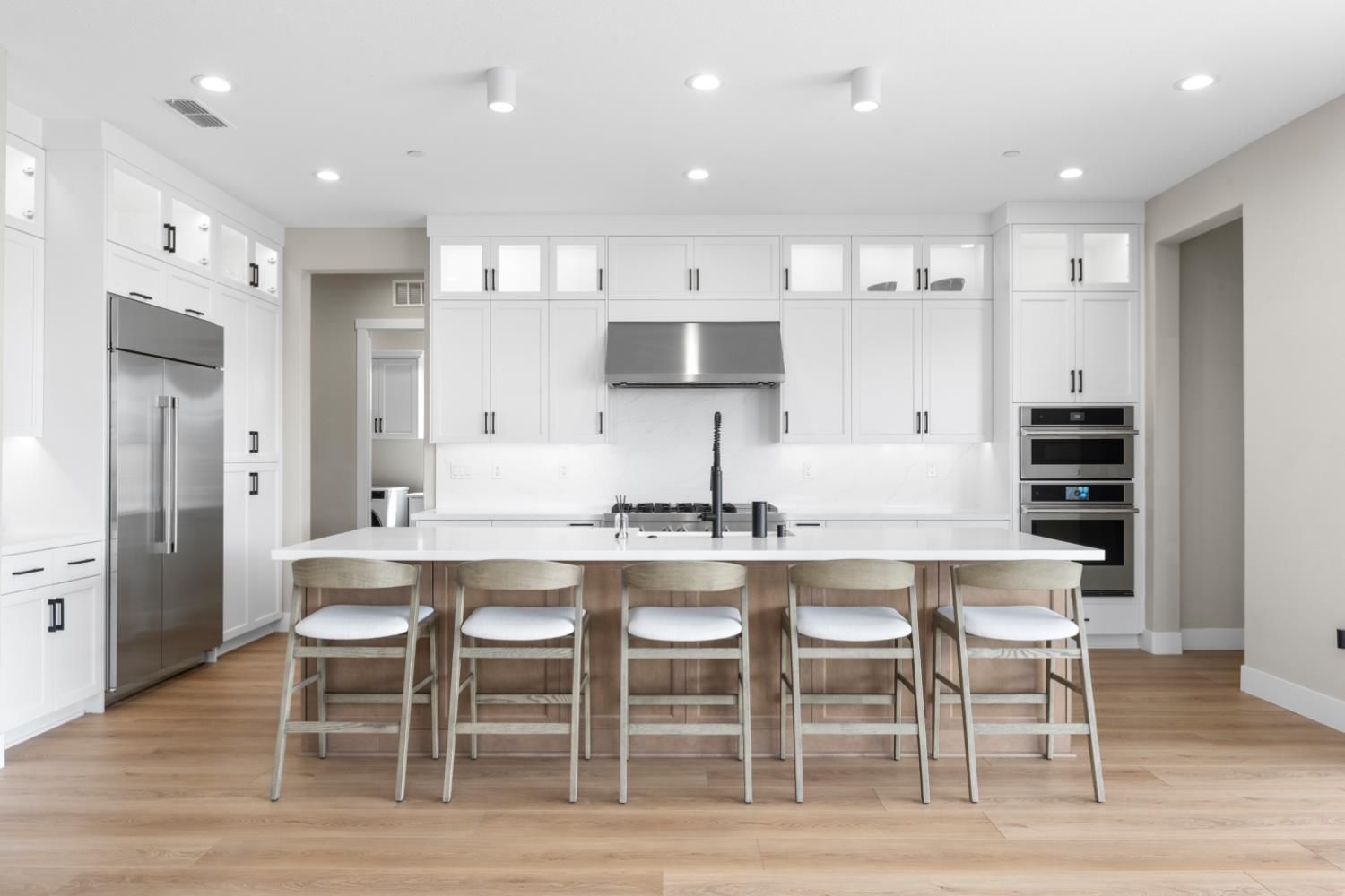 Located in the highly sought-after Regency at Folsom Ranch, an exclusive 55+ gated community, this exceptional residence offers the perfect blend of luxury, comfort, and modern design. Situated on a prime oversized corner lot, the home provides enhanced privacy and impressive curb appeal. Thoughtfully designed with an open-concept floor plan and contemporary architecture, it delivers both elegance and functionality. The grand chef's kitchen flows seamlessly into the expansive great room, highlighted by an impressive accordion-style sliding glass door that creates a true indoor-outdoor al fresco living experienceideal for entertaining or relaxing in style. Inside, the home showcases extensive upgrades, including luxury vinyl plank flooring, designer tile accents, quartz slab surfaces, sleek white European-style cabinetry, stainless steel appliances, and curated designer plumbing and lighting fixtures throughout. The private primary suite serves as a tranquil retreat, featuring a spa-inspired bathroom with an oversized walk-in shower and a modern floating vanity. On a separate wing, two spacious en-suite bedrooms provide comfort and privacy for guests, complemented by a centrally located powder room. The beautifully landscaped backyard is designed for both relaxation and future possibilities, featuring an oversized covered patio, a raised deck for everyday lounging, elegant Japanese maples, and a generous side yard perfect for a future pool or garden. Additional highlights include owned solar, a built-in GE Monogram refrigerator, upgraded cabinetry, upgraded JennAir RISE appliances with professional-grade performance, a Heat and Glow True gas fireplace, and Hunter Douglas window treatments. Property Details: 3 Bedrooms 3.5 Bathrooms Approx. 2,012 Sq. Ft. 2-Car Garage Residents of Regency at Folsom Ranch enjoy resort-style amenities, including a pool, spa, fitness center, pickleball courts, dog park, playground, and scenic walking trails.