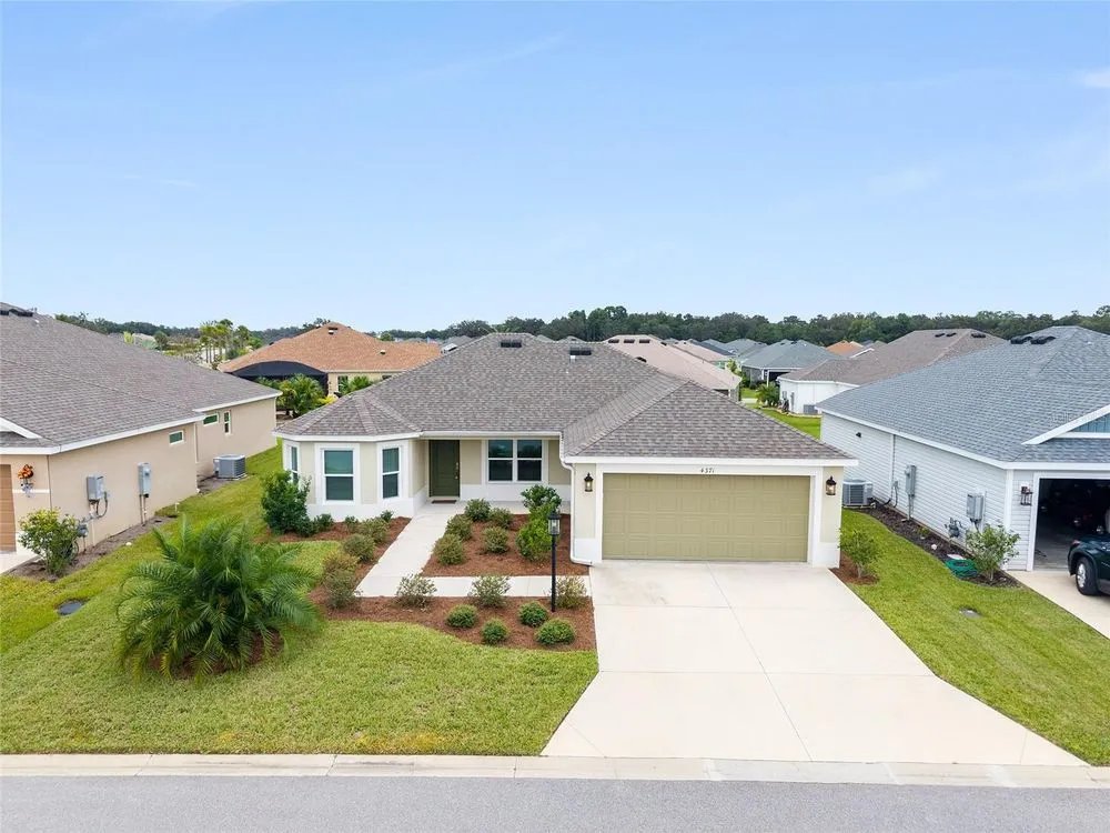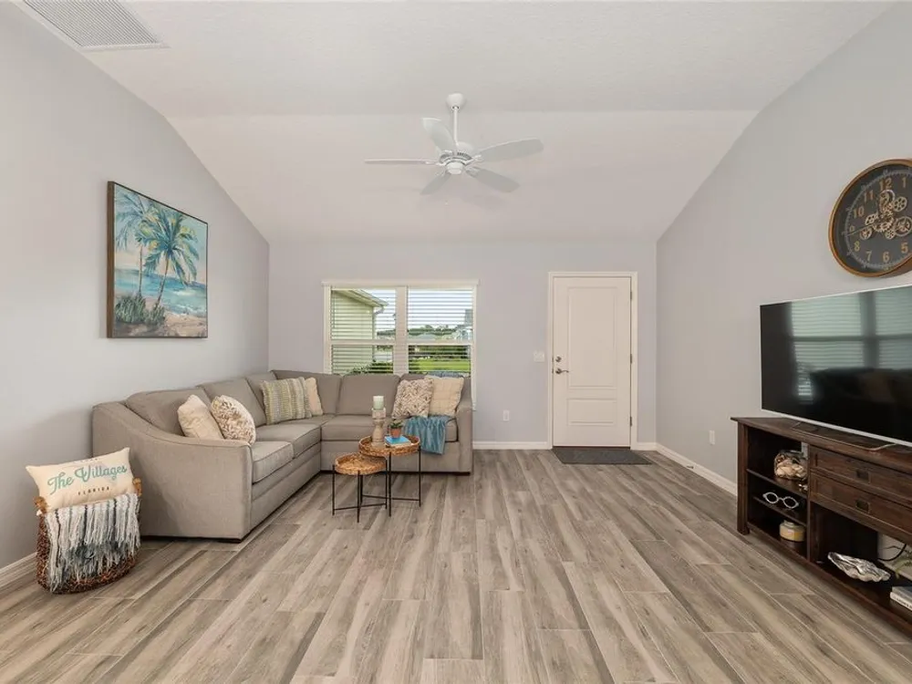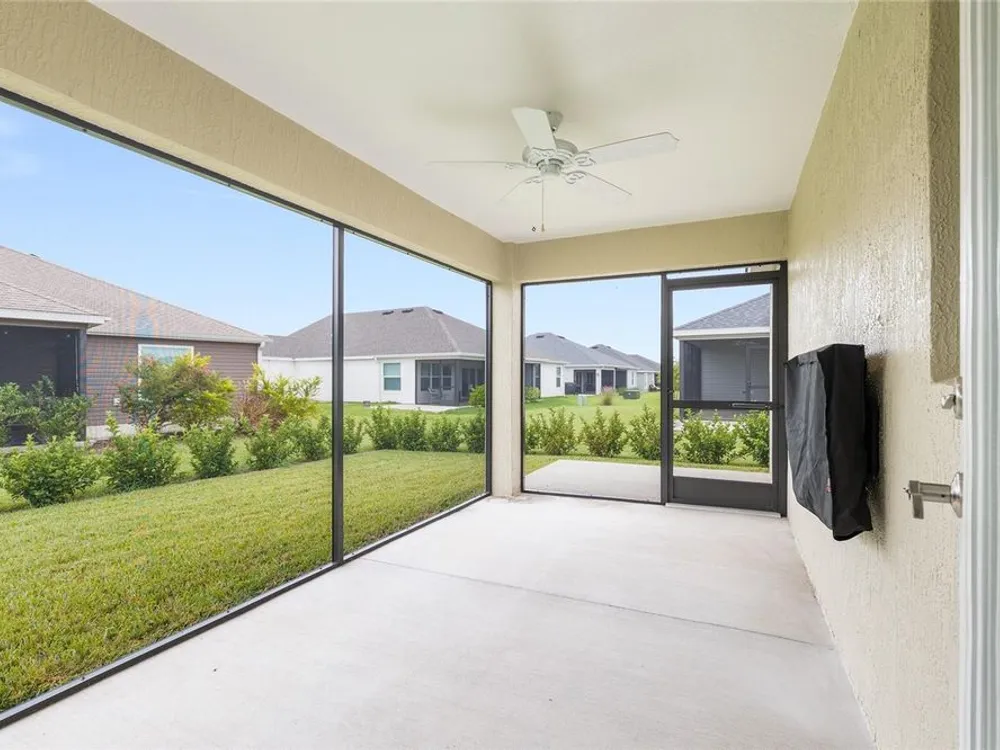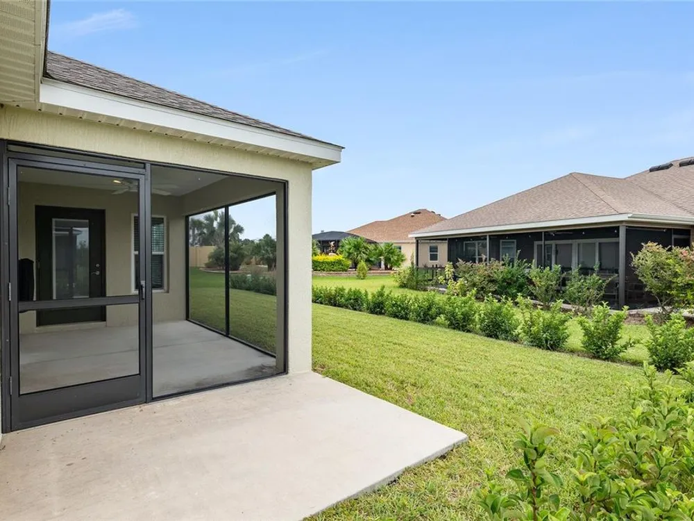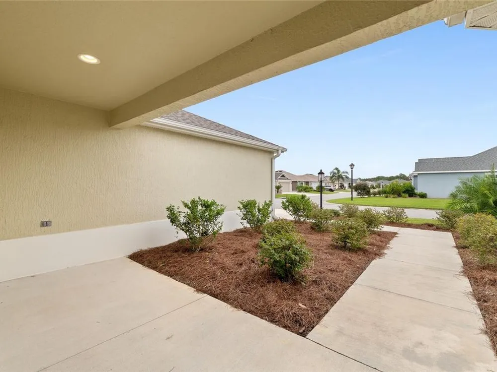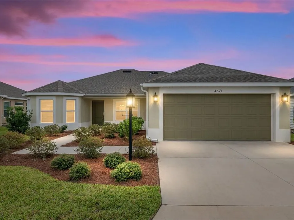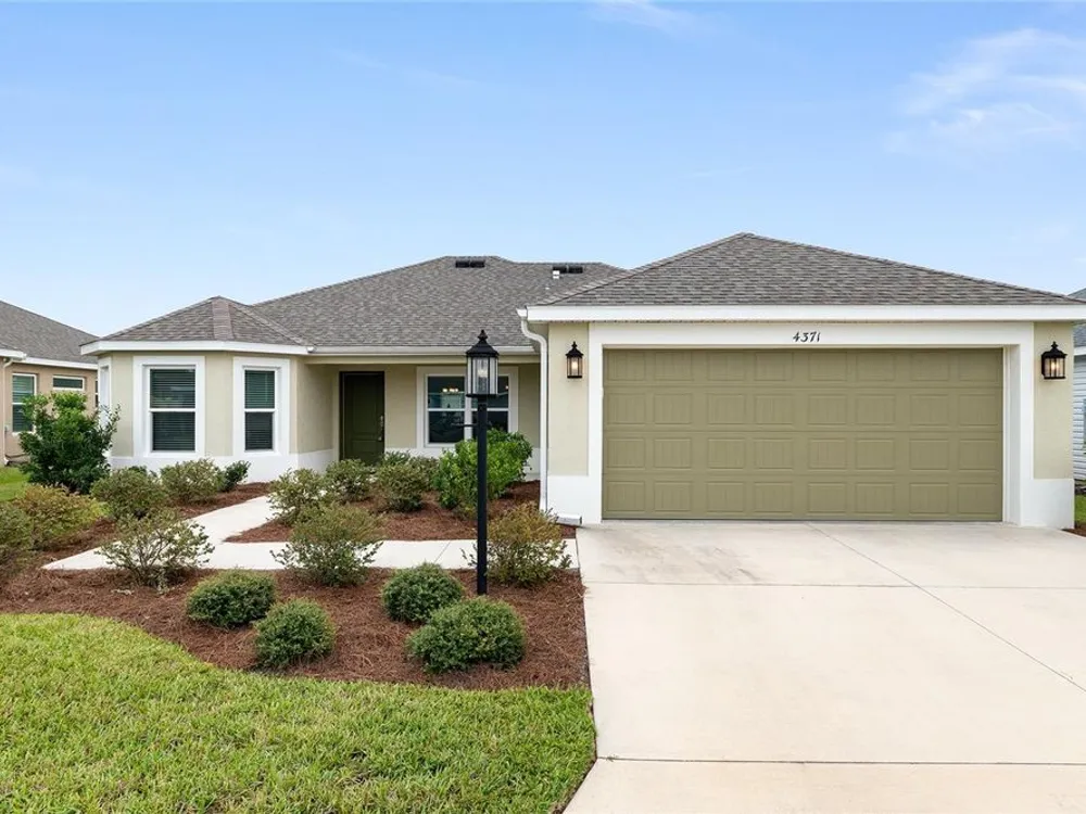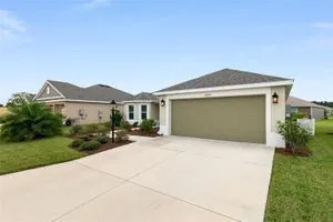 Welcome to this beautiful 3 BED/2 BATH - 1557 sq. ft. “ALDER-8” model located in the highly sought-after VILLAGE OF DELUNA. Built in 2022, this nearly new BLOCK/STUCCO home showcases quality construction and thoughtful design throughout. Step up to the inviting front patio, then enter a BRIGHT & OPEN living space featuring a kitchen, living, and dining combo under TALL CEILINGS. The main living areas feature elegant ceramic wood-look TILE FLOORING, custom taupe wood cabinetry and stunning CAMBRIA QUARTZ countertops in kitchen with and TILE BACKSPLASH for a modern, polished feel. Both bathrooms include Cambria QUARTZ countertops and beautiful TILED SHOWERS. This SPLIT FLOOR PLAN provides privacy with the primary suite tucked away from the two guest bedrooms and guest bath and separated by privacy pocket door. The front guest bedroom has been EXTENDED with an attractive BAY WINDOW, offering extra light and space. A BONUS dining area off the kitchen provides flexibility for a HOBBY/OFFICE AREA, or extra sleeping space for guests. Enjoy Florida living outdoors with a COVERED, SCREENED LANAI leading to an open patio, perfect for grilling or relaxing. Additional highlights include a two-car attached garage and an ideal location just a short golf cart ride to DeLuna community pools, the Water Lily Recreation Center with family POOL and PICKLEBALL, and plenty of added fun for visiting guests. You’ll love being close to EDNA’S ON THE GREEN, multiple golf courses, and scenic nature WALKING TRAILS along Hogeye Pathway Nature Preserve. Conveniently located near Magnolia Plaza shopping, several new medical centers, and the brand-new Super Walmart. This home also offers quick access over the Water Lily Bridge to BROWNWOOD Town Square. And just down the road, and an easy golf cart ride away, you’re sure to enjoy the VILLAGE OF EASTPORT, featuring exciting new amenities and entertainment all in one location! This home truly offers modern comfort, beautiful finishes, and an unbeatable location in one of the most vibrant and growing areas of The Villages, Florida. Call today to schedule your private showing!