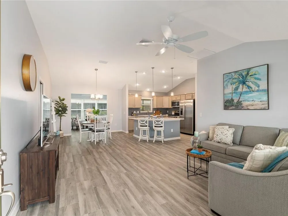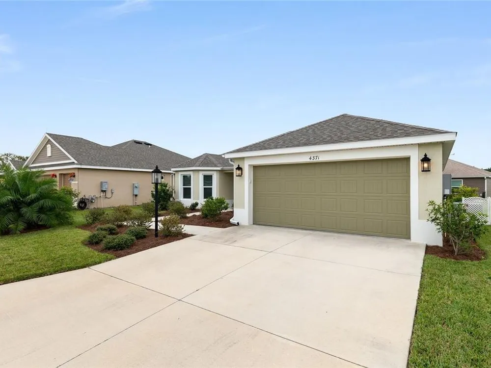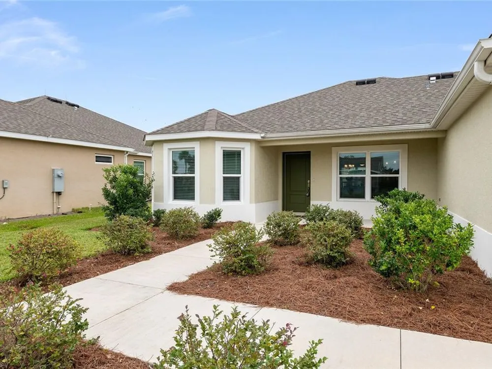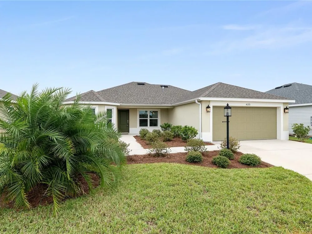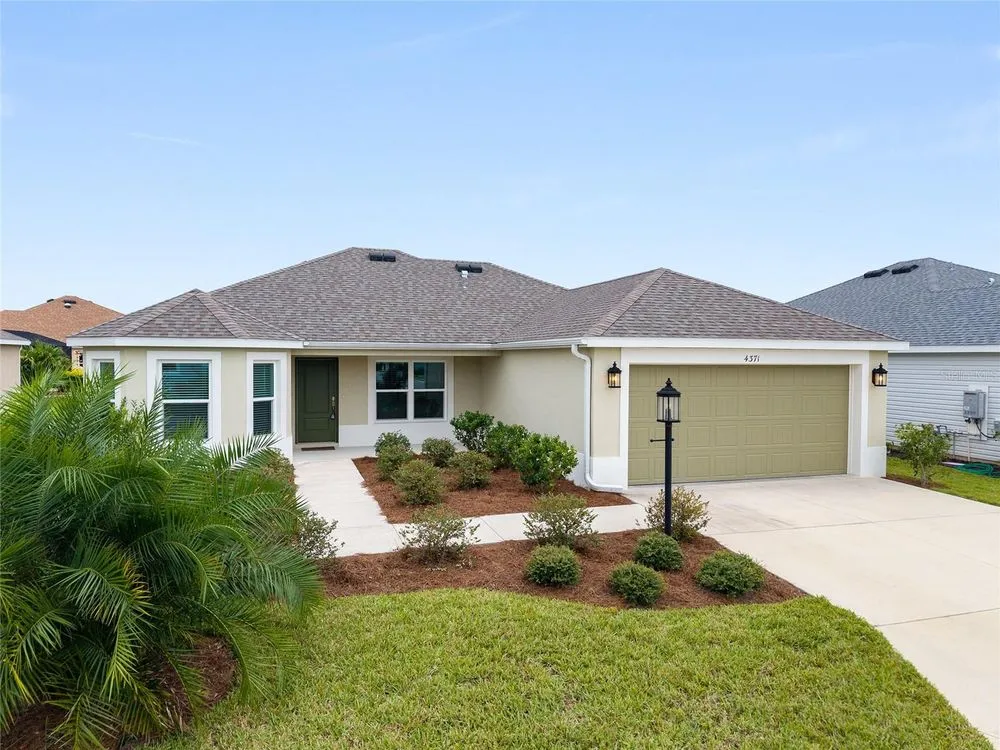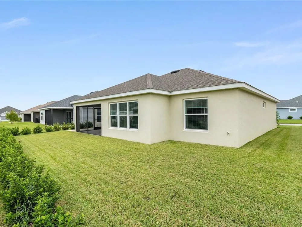 Welcome to this beautiful 3 BED/2 BATH - 1557 sq. ft. “ALDER-8” model located in the highly sought-after VILLAGE OF DELUNA. Built in 2022, this nearly new BLOCK/STUCCO home showcases quality construction and thoughtful design throughout. Step up to the inviting front patio, then enter a BRIGHT & OPEN living space featuring a kitchen, living, and dining combo under TALL CEILINGS. The main living areas feature elegant ceramic wood-look TILE FLOORING, custom taupe wood cabinetry and stunning CAMBRIA QUARTZ countertops in kitchen with and TILE BACKSPLASH for a modern, polished feel. Both bathrooms include Cambria QUARTZ countertops and beautiful TILED SHOWERS. This SPLIT FLOOR PLAN provides privacy with the primary suite tucked away from the two guest bedrooms and guest bath and separated by privacy pocket door. The front guest bedroom has been EXTENDED with an attractive BAY WINDOW, offering extra light and space. A BONUS dining area off the kitchen provides flexibility for a HOBBY/OFFICE AREA, or extra sleeping space for guests. Enjoy Florida living outdoors with a COVERED, SCREENED LANAI leading to an open patio, perfect for grilling or relaxing. Additional highlights include a two-car attached garage and an ideal location just a short golf cart ride to DeLuna community pools, the Water Lily Recreation Center with family POOL and PICKLEBALL, and plenty of added fun for visiting guests. You’ll love being close to EDNA’S ON THE GREEN, multiple golf courses, and scenic nature WALKING TRAILS along Hogeye Pathway Nature Preserve. Conveniently located near Magnolia Plaza shopping, several new medical centers, and the brand-new Super Walmart. This home also offers quick access over the Water Lily Bridge to BROWNWOOD Town Square. And just down the road, and an easy golf cart ride away, you’re sure to enjoy the VILLAGE OF EASTPORT, featuring exciting new amenities and entertainment all in one location! This home truly offers modern comfort, beautiful finishes, and an unbeatable location in one of the most vibrant and growing areas of The Villages, Florida. Call today to schedule your private showing!