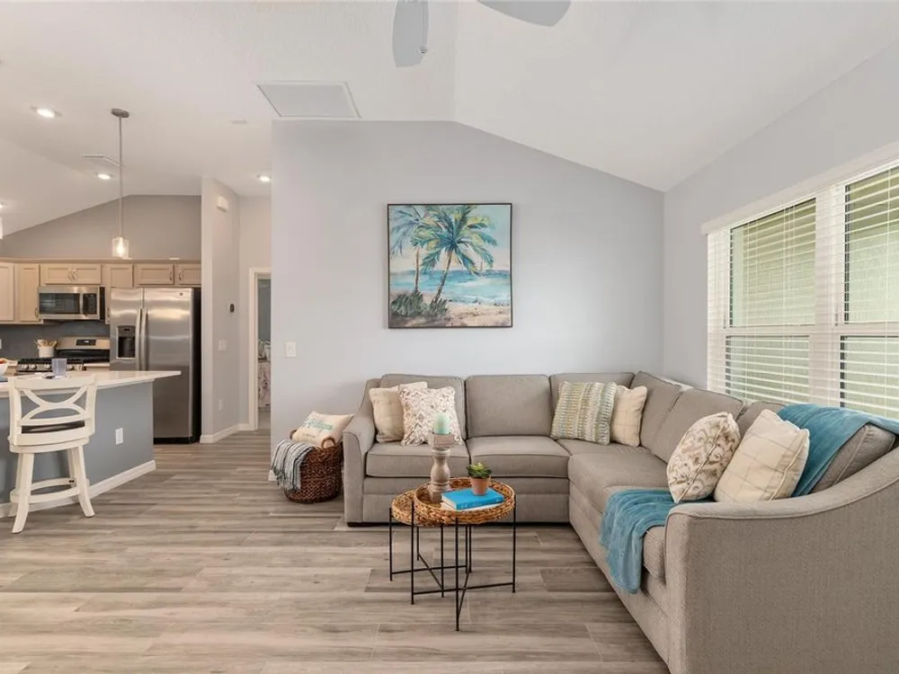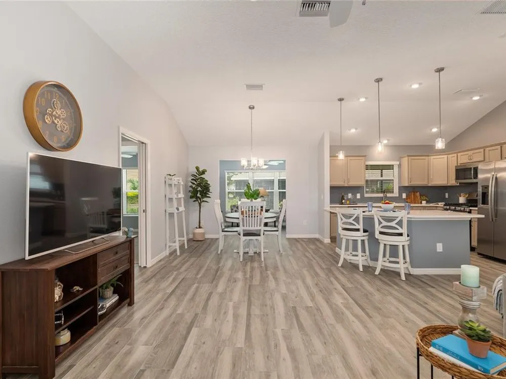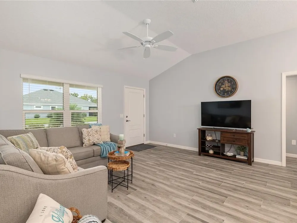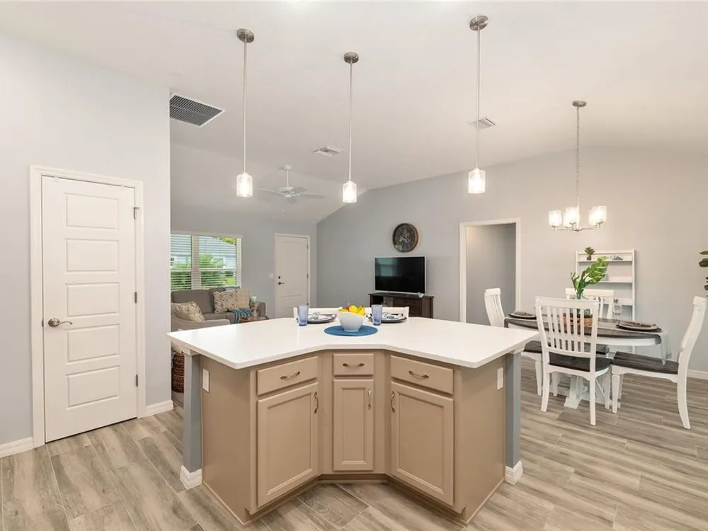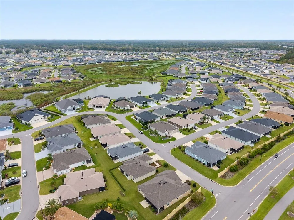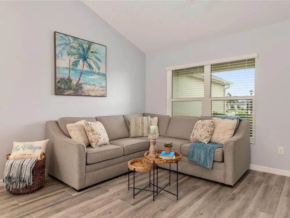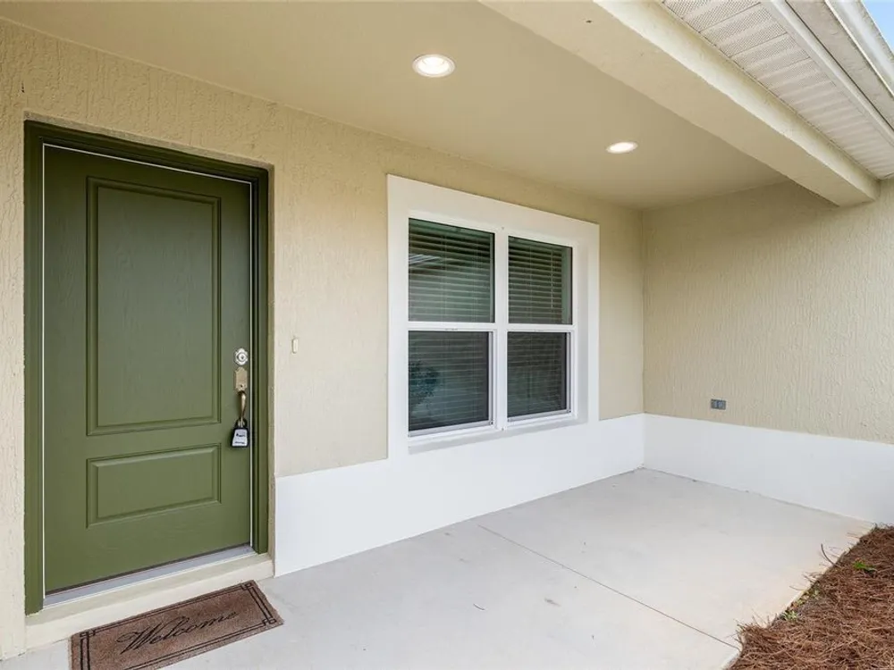 Welcome to this beautiful 3 BED/2 BATH - 1557 sq. ft. “ALDER-8” model located in the highly sought-after VILLAGE OF DELUNA. Built in 2022, this nearly new BLOCK/STUCCO home showcases quality construction and thoughtful design throughout. Step up to the inviting front patio, then enter a BRIGHT & OPEN living space featuring a kitchen, living, and dining combo under TALL CEILINGS. The main living areas feature elegant ceramic wood-look TILE FLOORING, custom taupe wood cabinetry and stunning CAMBRIA QUARTZ countertops in kitchen with and TILE BACKSPLASH for a modern, polished feel. Both bathrooms include Cambria QUARTZ countertops and beautiful TILED SHOWERS. This SPLIT FLOOR PLAN provides privacy with the primary suite tucked away from the two guest bedrooms and guest bath and separated by privacy pocket door. The front guest bedroom has been EXTENDED with an attractive BAY WINDOW, offering extra light and space. A BONUS dining area off the kitchen provides flexibility for a HOBBY/OFFICE AREA, or extra sleeping space for guests. Enjoy Florida living outdoors with a COVERED, SCREENED LANAI leading to an open patio, perfect for grilling or relaxing. Additional highlights include a two-car attached garage and an ideal location just a short golf cart ride to DeLuna community pools, the Water Lily Recreation Center with family POOL and PICKLEBALL, and plenty of added fun for visiting guests. You’ll love being close to EDNA’S ON THE GREEN, multiple golf courses, and scenic nature WALKING TRAILS along Hogeye Pathway Nature Preserve. Conveniently located near Magnolia Plaza shopping, several new medical centers, and the brand-new Super Walmart. This home also offers quick access over the Water Lily Bridge to BROWNWOOD Town Square. And just down the road, and an easy golf cart ride away, you’re sure to enjoy the VILLAGE OF EASTPORT, featuring exciting new amenities and entertainment all in one location! This home truly offers modern comfort, beautiful finishes, and an unbeatable location in one of the most vibrant and growing areas of The Villages, Florida. Call today to schedule your private showing!
