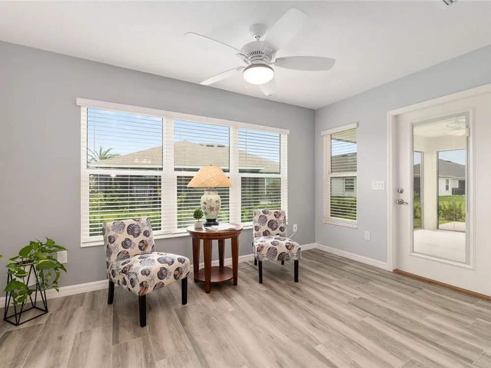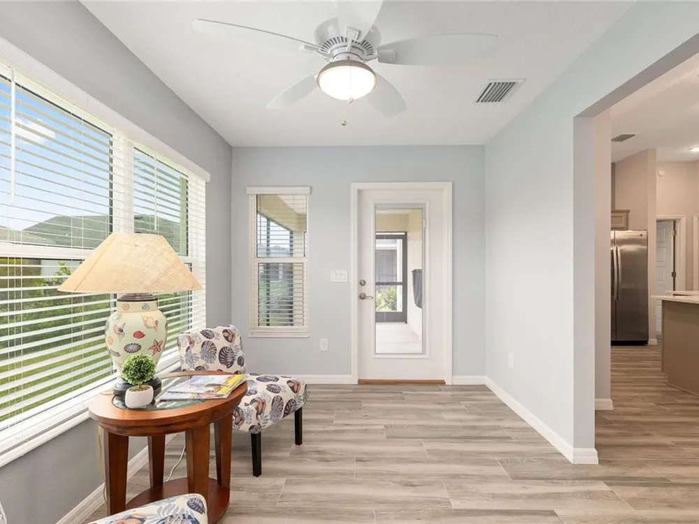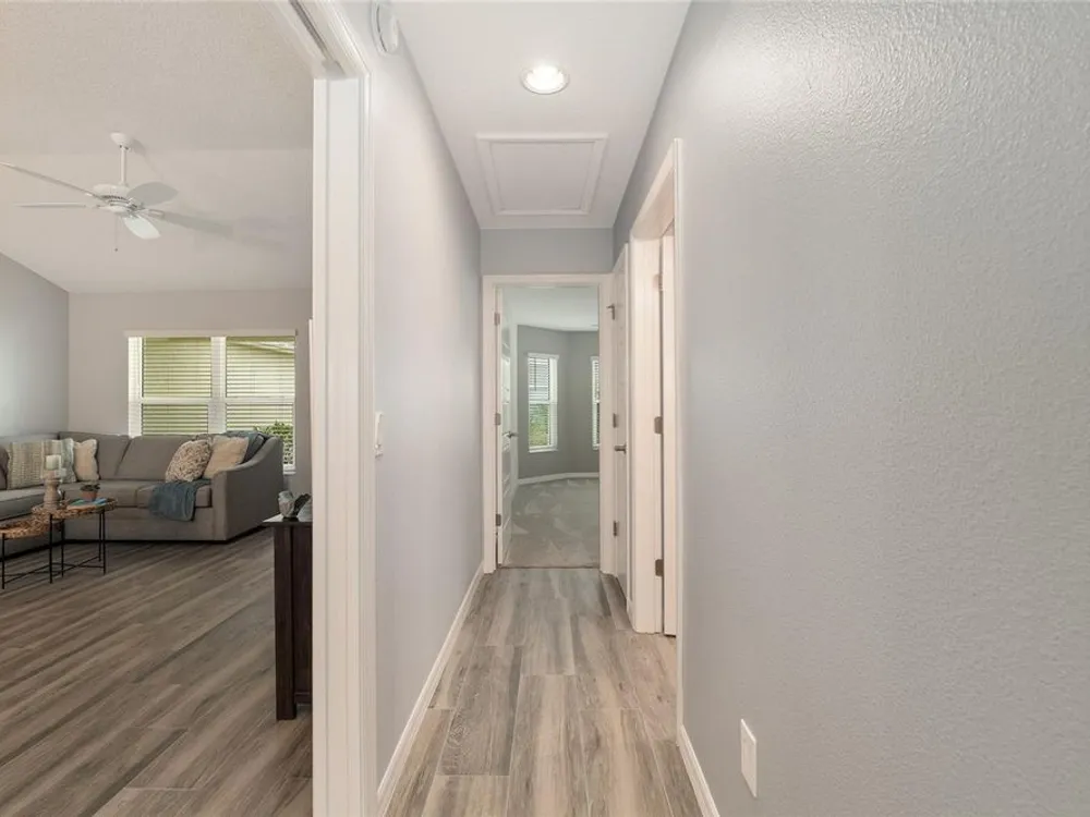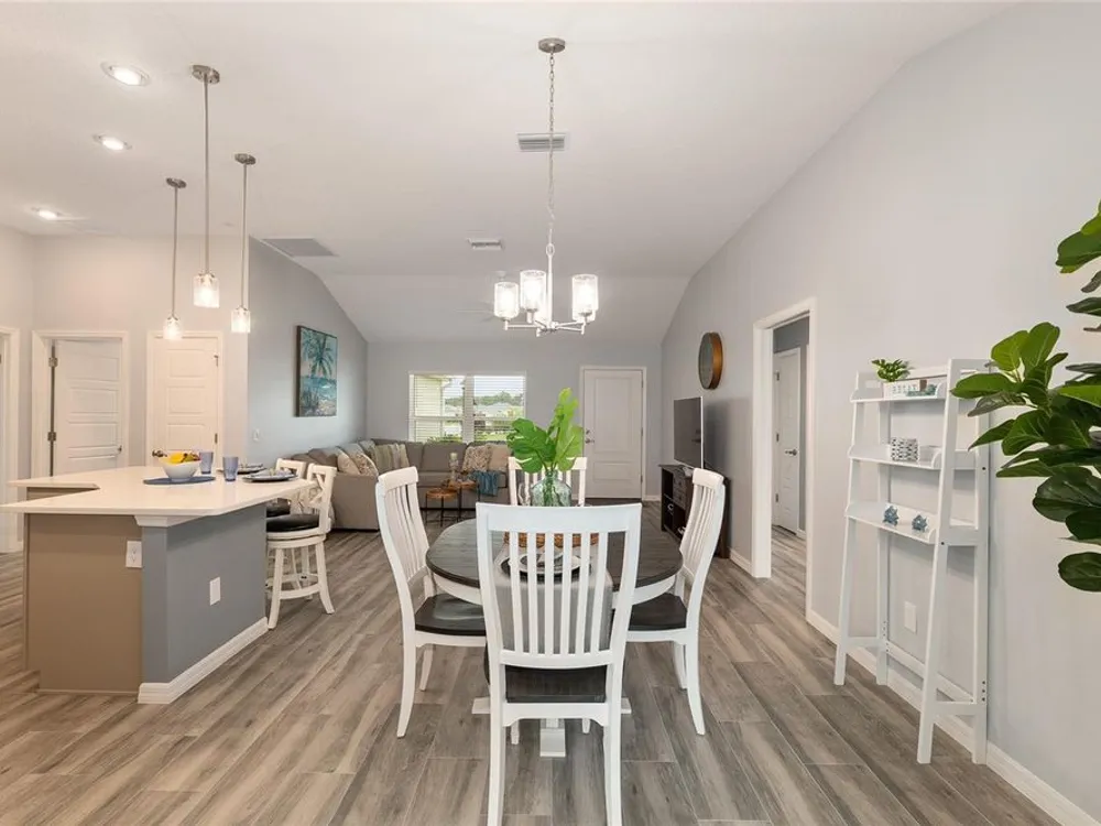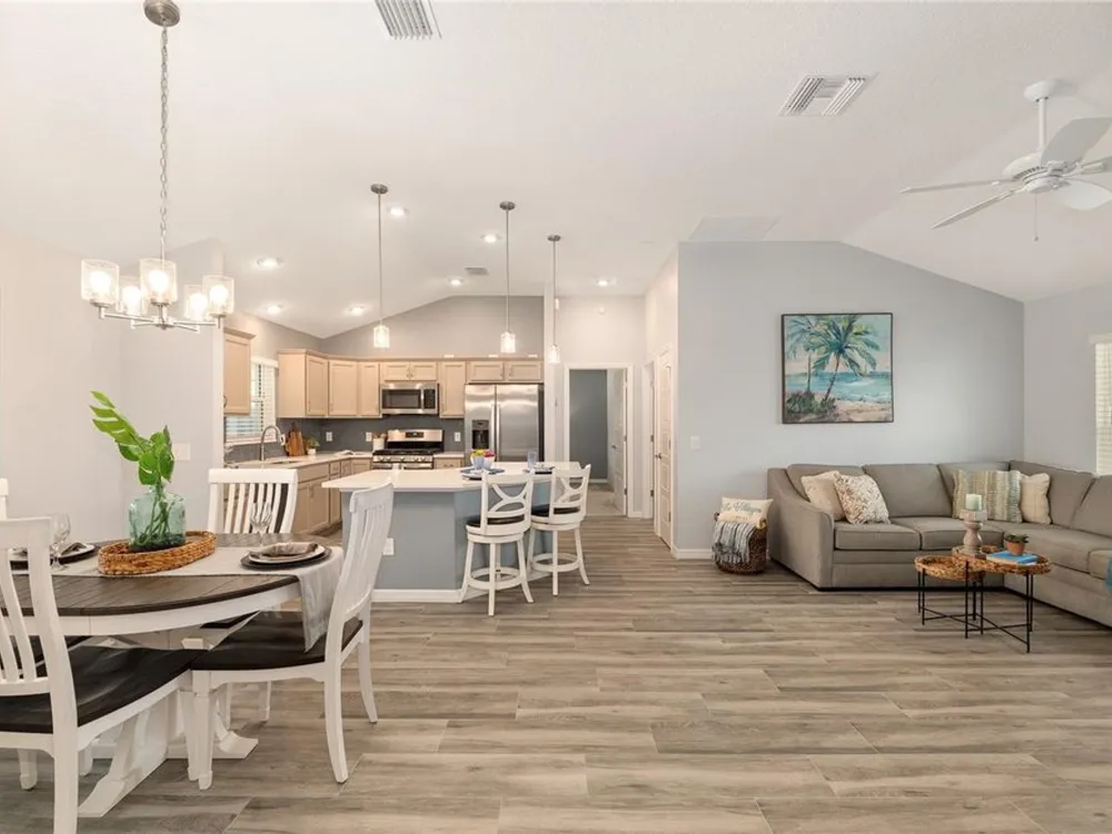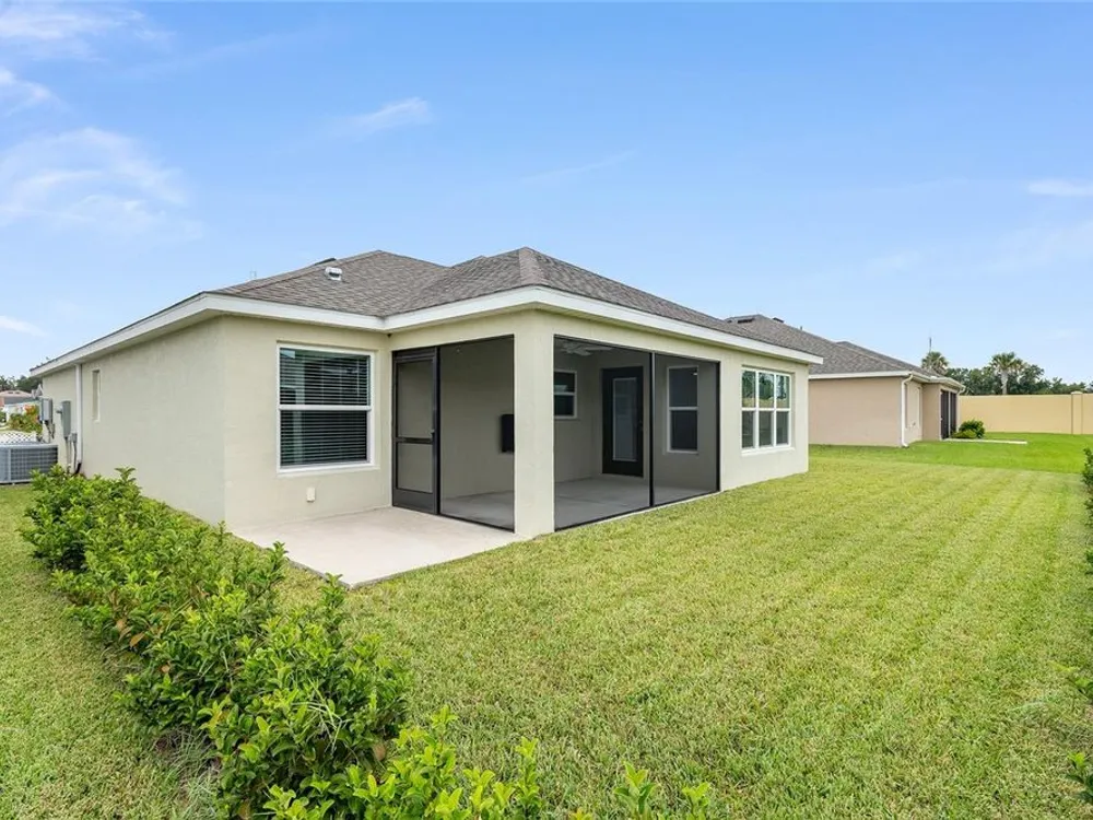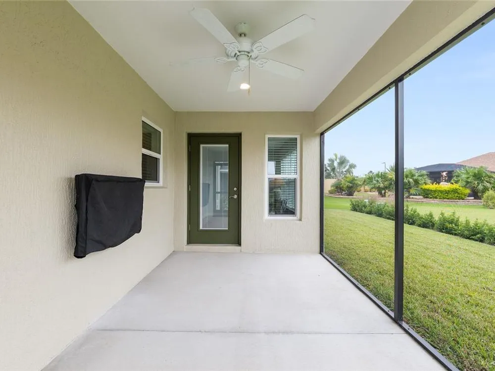 Welcome to this beautiful 3 BED/2 BATH - 1557 sq. ft. “ALDER-8” model located in the highly sought-after VILLAGE OF DELUNA. Built in 2022, this nearly new BLOCK/STUCCO home showcases quality construction and thoughtful design throughout. Step up to the inviting front patio, then enter a BRIGHT & OPEN living space featuring a kitchen, living, and dining combo under TALL CEILINGS. The main living areas feature elegant ceramic wood-look TILE FLOORING, custom taupe wood cabinetry and stunning CAMBRIA QUARTZ countertops in kitchen with and TILE BACKSPLASH for a modern, polished feel. Both bathrooms include Cambria QUARTZ countertops and beautiful TILED SHOWERS. This SPLIT FLOOR PLAN provides privacy with the primary suite tucked away from the two guest bedrooms and guest bath and separated by privacy pocket door. The front guest bedroom has been EXTENDED with an attractive BAY WINDOW, offering extra light and space. A BONUS dining area off the kitchen provides flexibility for a HOBBY/OFFICE AREA, or extra sleeping space for guests. Enjoy Florida living outdoors with a COVERED, SCREENED LANAI leading to an open patio, perfect for grilling or relaxing. Additional highlights include a two-car attached garage and an ideal location just a short golf cart ride to DeLuna community pools, the Water Lily Recreation Center with family POOL and PICKLEBALL, and plenty of added fun for visiting guests. You’ll love being close to EDNA’S ON THE GREEN, multiple golf courses, and scenic nature WALKING TRAILS along Hogeye Pathway Nature Preserve. Conveniently located near Magnolia Plaza shopping, several new medical centers, and the brand-new Super Walmart. This home also offers quick access over the Water Lily Bridge to BROWNWOOD Town Square. And just down the road, and an easy golf cart ride away, you’re sure to enjoy the VILLAGE OF EASTPORT, featuring exciting new amenities and entertainment all in one location! This home truly offers modern comfort, beautiful finishes, and an unbeatable location in one of the most vibrant and growing areas of The Villages, Florida. Call today to schedule your private showing!