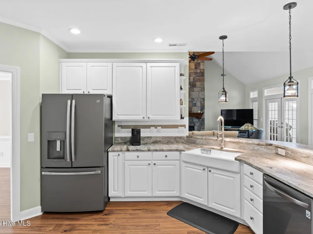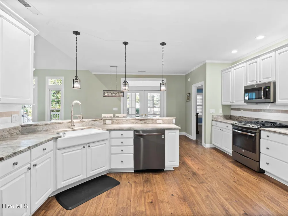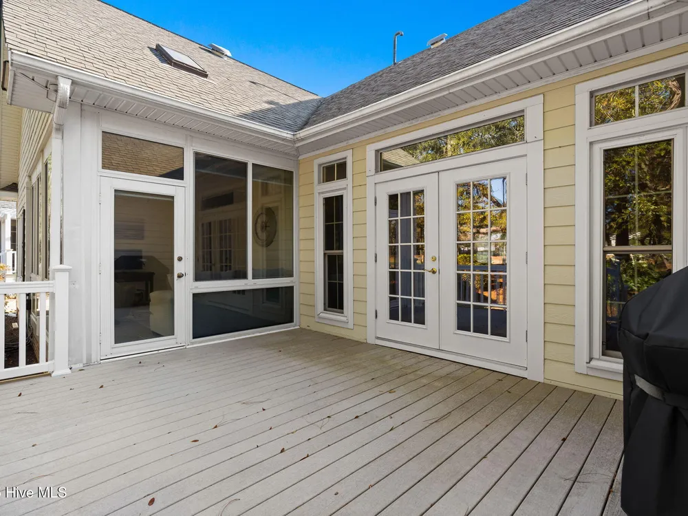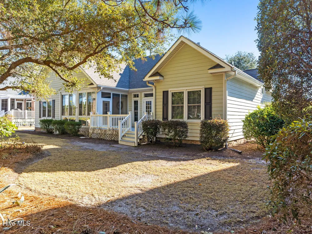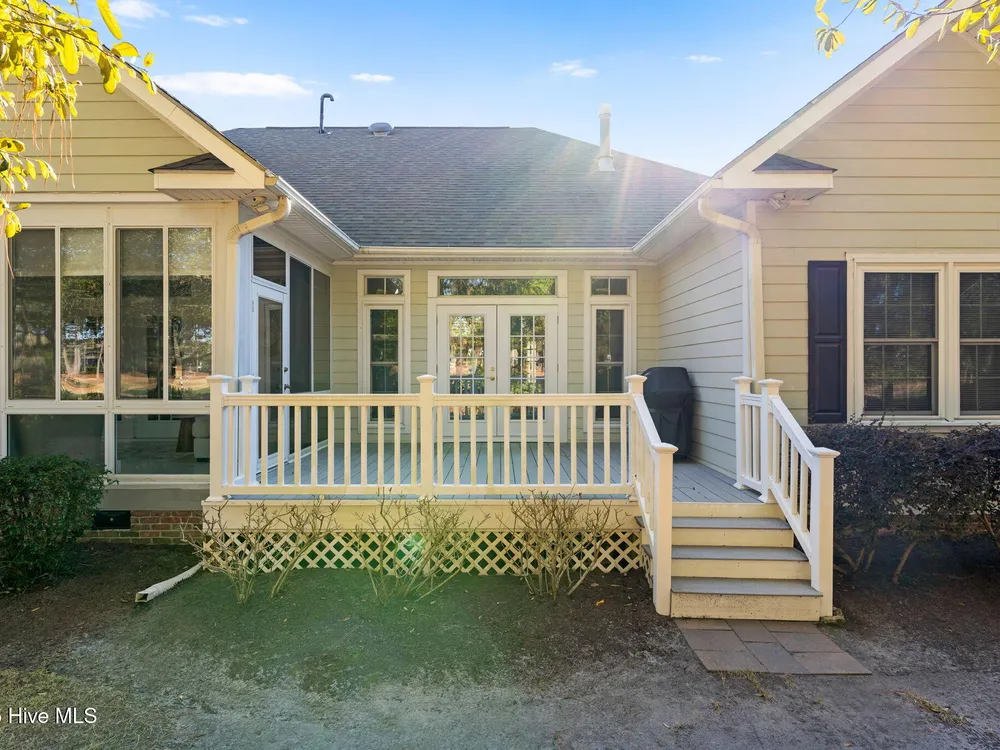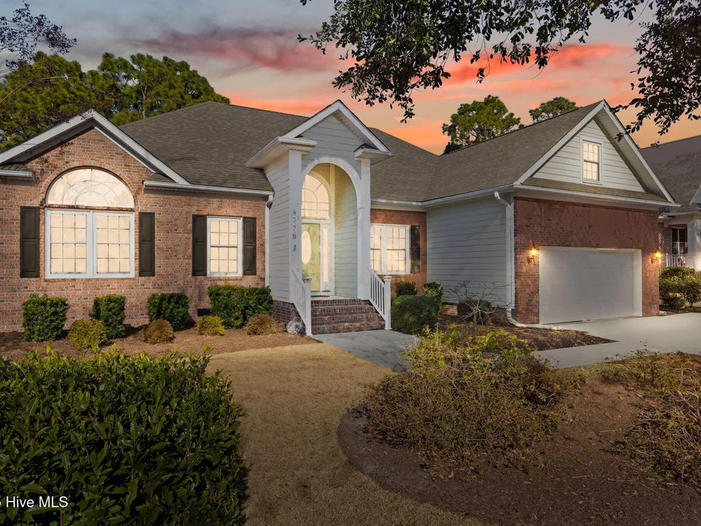 How would you like to unwind, relax, and create memories while overlooking the golf course? Sipping on your favorite drink, laughing, reading a book, doing what ever it is that makes you happy while enjoying life? This is all possible if you continue reading on. Welcome to 4379 Gauntlet Drive, a meticulously updated single-story residence overlooking the 11th hole of the Founders Club Golf Course. This home features three bedrooms, two baths, and an inviting landscaped yard on the golf course. As you enter your new home, you're greeted by a bright foyer adorned with luxury vinyl plank flooring and a stunning light. The captivating great room, featuring a cozy gas fireplace and soaring ceiling, is filled with natural light from expansive windows and French doors leading to spectacular golf course views.The contemporary kitchen is a chef's dream. New stainless-steel appliances, and abundant cabinetry. Enjoy meals in the adjoining casual dining area or unwind in the climate-controlled sunroom.The owner's suite provides picturesque views, plantation shutters, and a beautifully updated en suite bathroom featuring a dual sink vanity and a luxurious walk-in shower. Two guest bedrooms share a stylish hall bathroom that reflects the home's allure.A versatile bonus room on the second floor adds extra living space, while a convenient laundry/mudroom with garage access enhances functionality. Outside, the Trex decking creates a low-maintenance haven for relaxation and entertaining. This delightful home seamlessly blends comfort, elegance, and scenic surroundings, making it an extraordinary find in St. James. Are you worried about leaves or pine straw getting in your gutters? No worries with this home, because a leaf blocking system has already been installed. Low maintenance are words best used to describes this home. Make this home your home today!