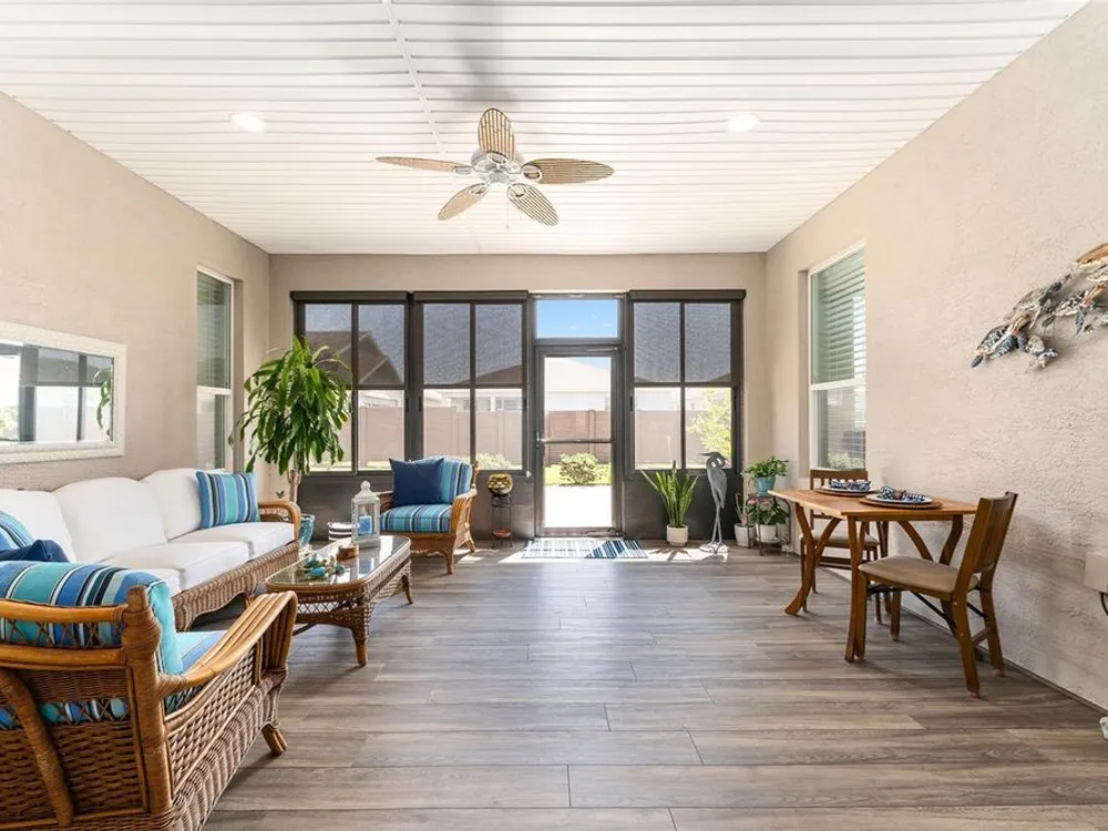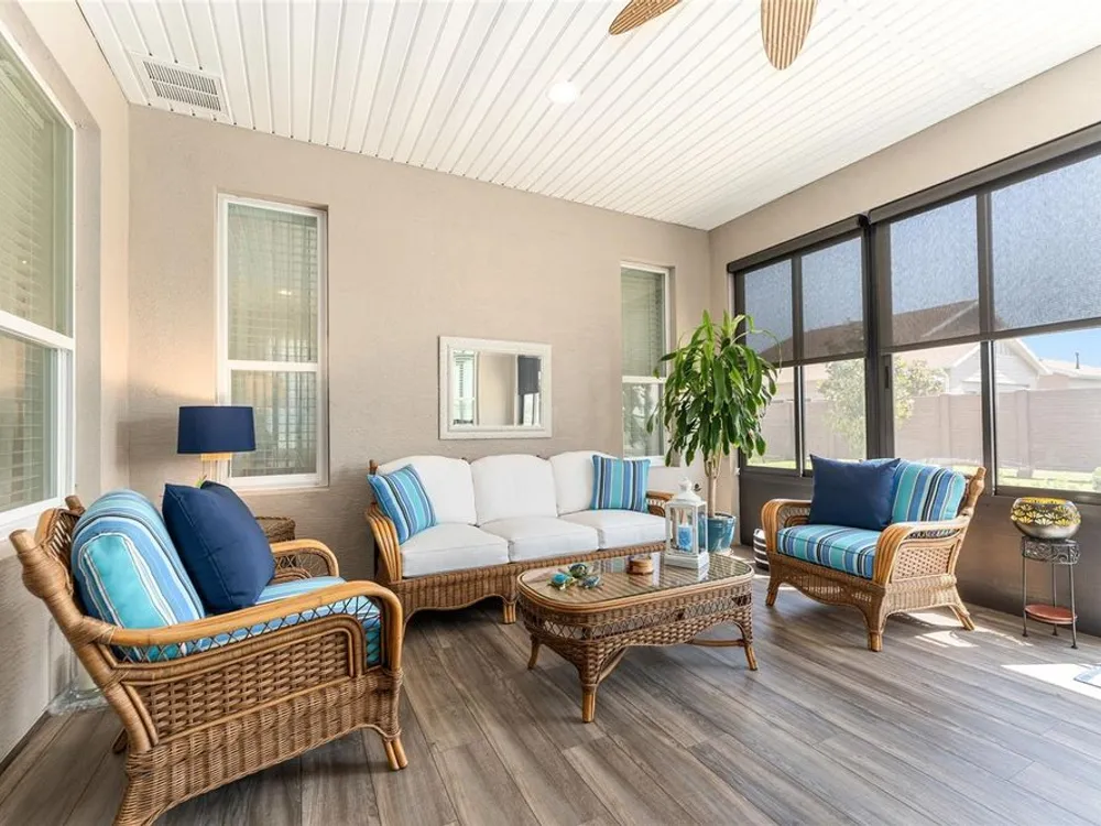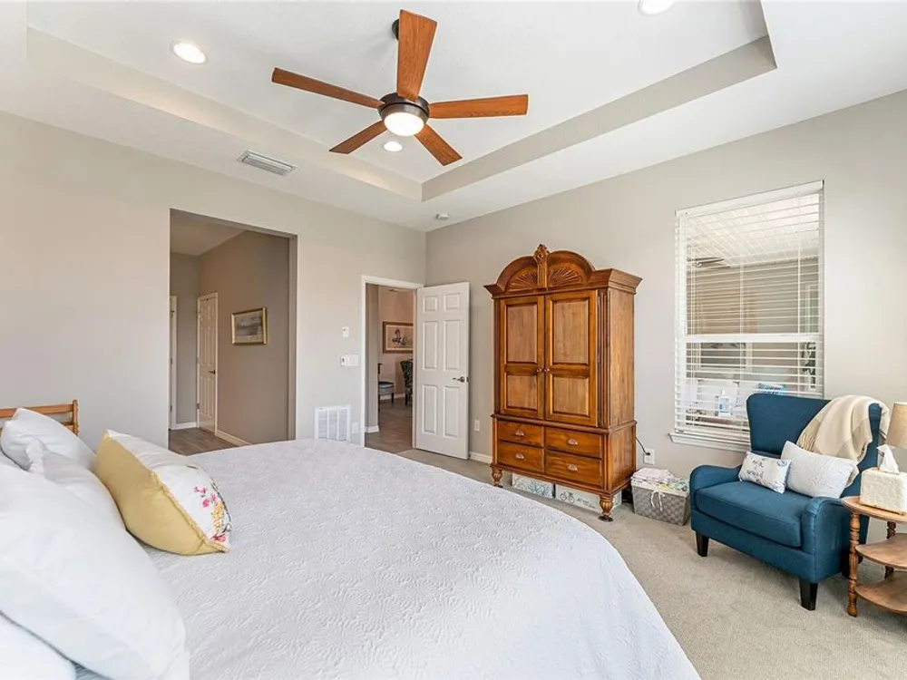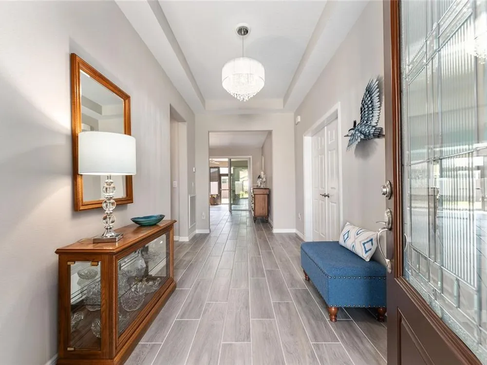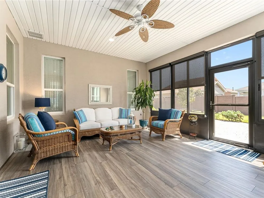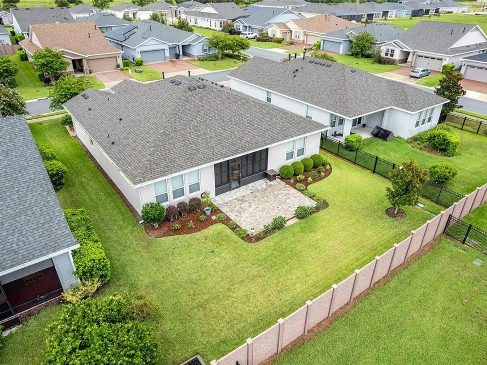 This meticulously maintained custom built Excite model home, crafted by Shea Homes is ONE OF A KIND! Located in the highly sought-after gated community of Ocala Preserve, just minutes from the renowned World Equestrian Center! The "Excite" model home, which was the showcase model for Shea Homes, is now available for you to call home. Featuring 2 bedrooms, 2.5 bathrooms, and a versatile office, this residence boasts over 2,000 square feet of thoughtfully designed under-air living space. Complete with an oversized 2-car garage, plus golf cart garage and glass enclosed Florida Room! Boasting stunning curb appeal and a meticulously designed interior, this home redefines modern living. Upon entering you will be greeted by upgraded wood-like ceramic tile flooring and a split floor plan that flows effortlessly into an expansive open-concept living area. The chef's kitchen is a culinary delight, equipped with natural gas, stainless steel luxury General Electric CAFÉ edition appliances, upgraded kitchen range with double ovens, a tile backsplash, granite counters, oversize island, and more. The master bedroom offers an ensuite with his and hers sinks, a step-in shower, and a walk-in closet, while the second bedroom features its own ensuite with a soaking tub and shower. That's right, TWO MASTERS! Additional highlights of this home include whole home water softener system, upgraded 2-foot extended garage, Custom front exterior lighting, Custom interior lighting in foyer, upgraded high-end fixtures throughout, extended 19x16 lanai with brick pavers and brand new professional landscaping, Additional security lighting on back of house with switch, Coffered foyer ceiling and more! The sellers spared no expense when customizing this stunning home! One of the best features is the plexiglass enclosed Florida room with Luxury Vinyl Flooring, sliding Low-E windows and Sun shades! Perfect for entertaining, or simply relaxing taking in the breathtaking views of the immaculate backyard. In addition, enjoy your privacy with the extended privacy wall. From its luxurious upgrades to its attention to detail, this home is a rare find that perfectly blends sophistication with comfort. Beyond the home, the community offers an unparalleled lifestyle anchored by a 57,000-square-foot private club. From gourmet dining at the full-service restaurant and bar to creative pursuits in the artisan studio, every amenity is thoughtfully designed for homeowners and guests. Stay active with a state-of-the-art fitness center, pickleball and tennis courts, and bocce ball facilities, or unwind in heated pools and hot tubs. Homeowners benefit from services like high-speed internet, pest control, and lawn care, all included, along with peace of mind provided by a monitored security system and guard-gated access. Golf cart-friendly streets, a dog park, and scenic walking trails complete the resort-style experience. This is more than a home—it's a gateway to a luxurious, active lifestyle. Don’t miss the opportunity to own a slice of paradise. Schedule your showing today!
