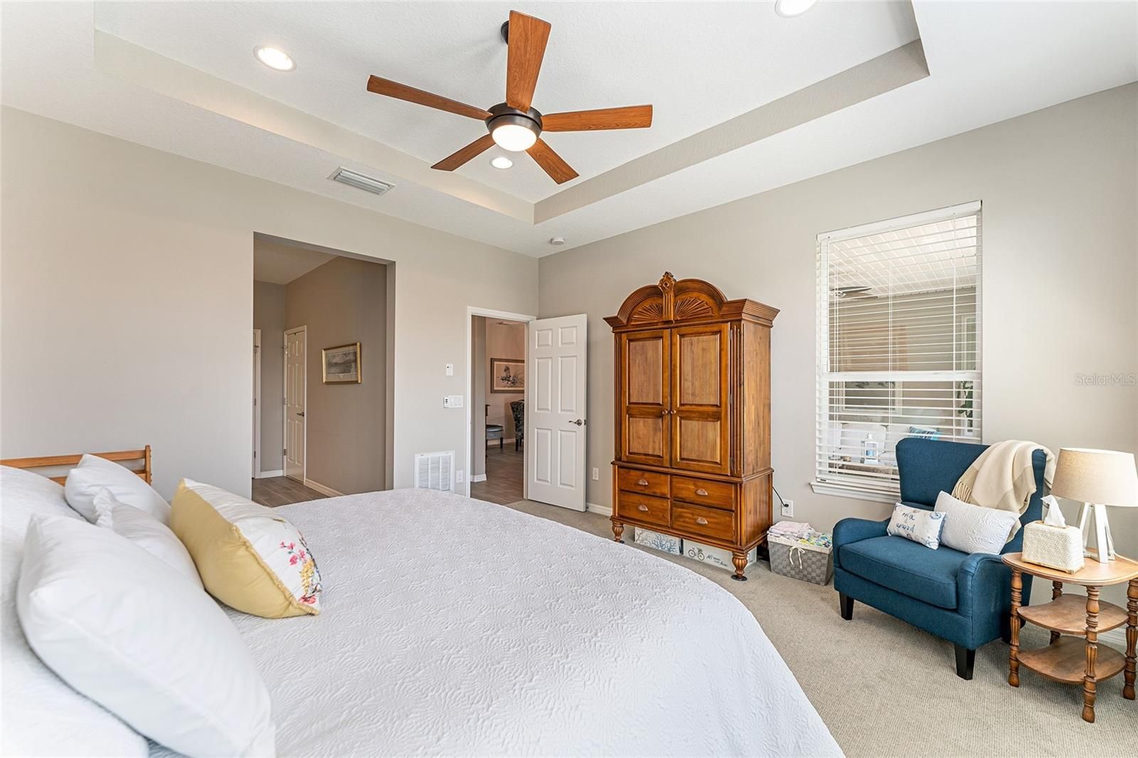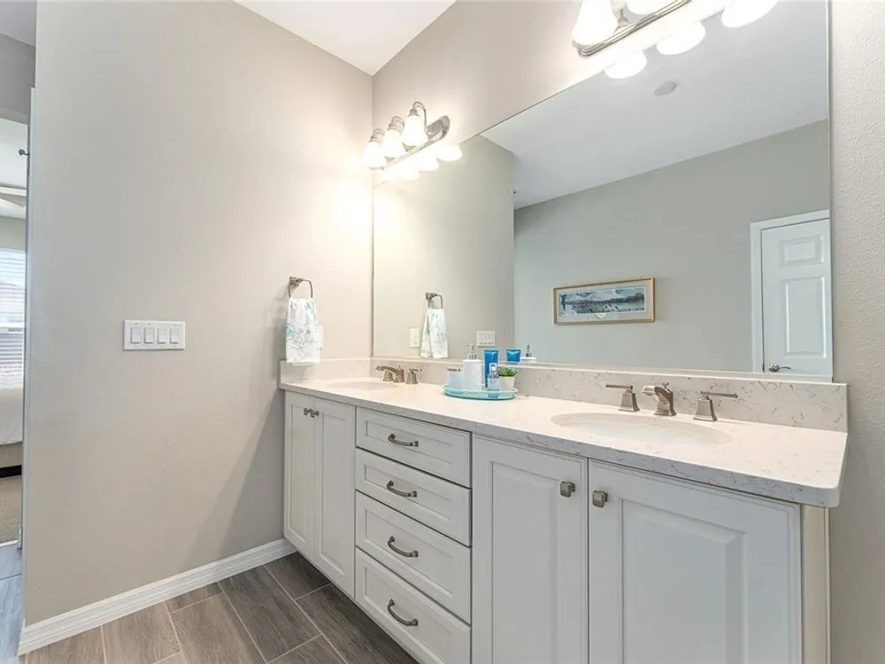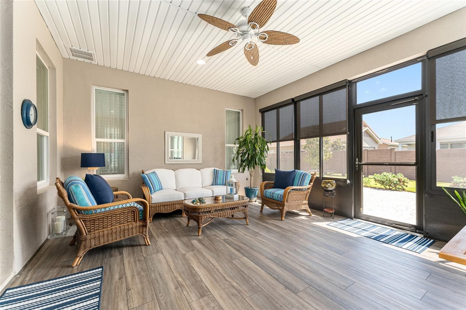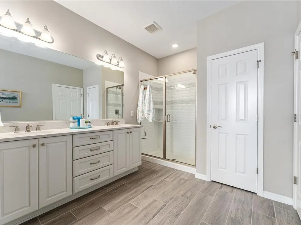 This meticulously maintained custom built Excite model home, crafted by Shea Homes is ONE OF A KIND! Located in the highly sought-after gated community of Ocala Preserve, just minutes from the renowned World Equestrian Center! The "Excite" model home, which was the showcase model for Shea Homes, is now available for you to call home. Featuring 2 bedrooms, 2.5 bathrooms, and a versatile office, this residence boasts over 2,000 square feet of thoughtfully designed under-air living space. Complete with an oversized 2-car garage, plus golf cart garage and glass enclosed Florida Room! Boasting stunning curb appeal and a meticulously designed interior, this home redefines modern living. Upon entering you will be greeted by upgraded wood-like ceramic tile flooring and a split floor plan that flows effortlessly into an expansive open-concept living area. The chef's kitchen is a culinary delight, equipped with natural gas, stainless steel luxury General Electric CAFÉ edition appliances, upgraded kitchen range with double ovens, a tile backsplash, granite counters, oversize island, and more. The master bedroom offers an ensuite with his and hers sinks, a step-in shower, and a walk-in closet, while the second bedroom features its own ensuite with a soaking tub and shower. That's right, TWO MASTERS! Additional highlights of this home include whole home water softener system, upgraded 2-foot extended garage, Custom front exterior lighting, Custom interior lighting in foyer, upgraded high-end fixtures throughout, extended 19x16 lanai with brick pavers and brand new professional landscaping, Additional security lighting on back of house with switch, Coffered foyer ceiling and more! The sellers spared no expense when customizing this stunning home! One of the best features is the plexiglass enclosed Florida room with Luxury Vinyl Flooring, sliding Low-E windows and Sun shades! Perfect for entertaining, or simply relaxing taking in the breathtaking views of the immaculate backyard. In addition, enjoy your privacy with the extended privacy wall. From its luxurious upgrades to its attention to detail, this home is a rare find that perfectly blends sophistication with comfort. Beyond the home, the community offers an unparalleled lifestyle anchored by a 57,000-square-foot private club. From gourmet dining at the full-service restaurant and bar to creative pursuits in the artisan studio, every amenity is thoughtfully designed for homeowners and guests. Stay active with a state-of-the-art fitness center, pickleball and tennis courts, and bocce ball facilities, or unwind in heated pools and hot tubs. Homeowners benefit from services like high-speed internet, pest control, and lawn care, all included, along with peace of mind provided by a monitored security system and guard-gated access. Golf cart-friendly streets, a dog park, and scenic walking trails complete the resort-style experience. This is more than a home—it's a gateway to a luxurious, active lifestyle. Don’t miss the opportunity to own a slice of paradise. Schedule your showing today!