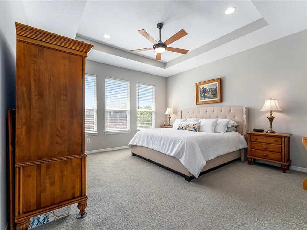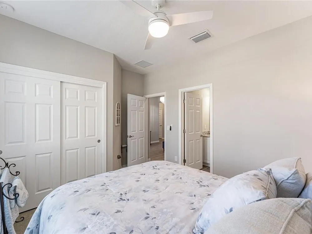 - Accessibility Features, Ceiling Fan(s), Eat-in Kitchen, Living/Dining Room, Open Floorplan, Main Level Primary, Smart Home, Solid-Wood Cabinets, Stone Counters, Thermostat, Walk-In Closet(s)