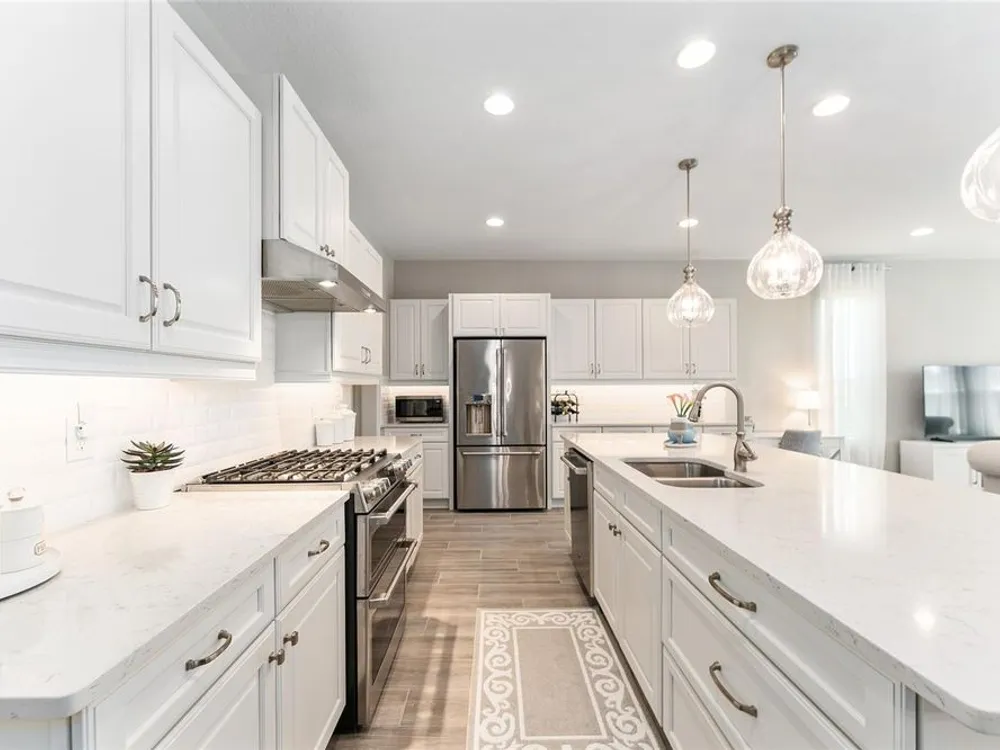 - Dishwasher, Disposal, Freezer, Gas Water Heater, Ice Maker, Microwave, Range, Range Hood, Refrigerator, Water Softener