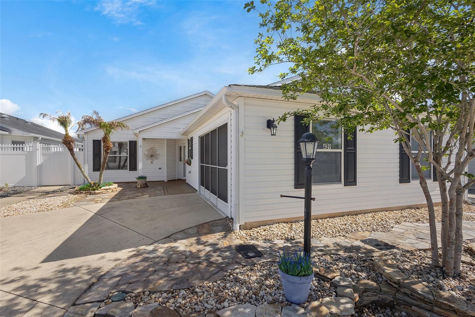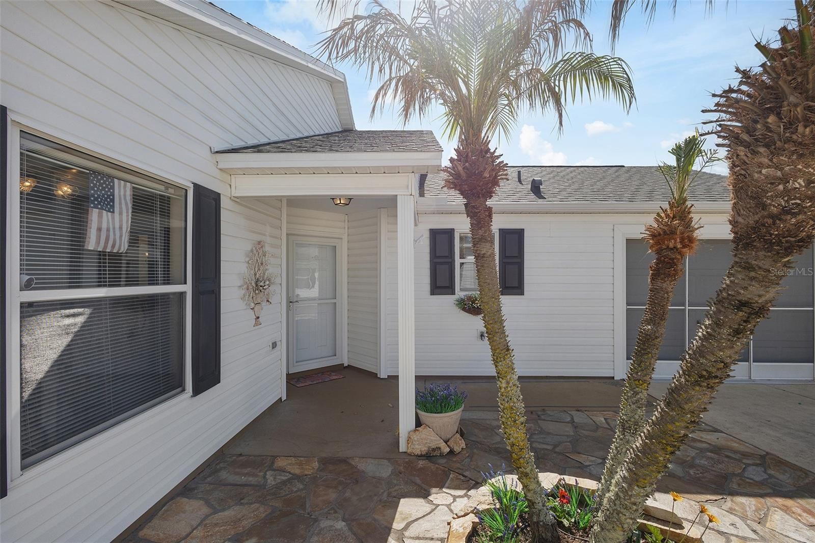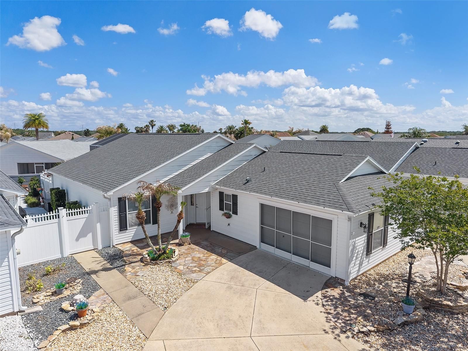 Prime Anna Maria Courtyard Villa in the Village of Hadley – 3BR/2BA with VAULTED CEILINGS, 2023 ROOF, and XXL PAVERED LANAI SURROUND, Updated in 2021 - Upgraded kitchen with GRANITE, LARGE ISLAND, ADDED Custom Cabinetry , WATER-SAFE FLOORING, WHEELCHAIR ACCESSIBLE Welcome home to this beautifully maintained Anna Maria Courtyard Villa ideally located in the highly sought-after Village of Hadley in The Villages. From the moment you arrive, you’ll appreciate the inviting curb appeal with low-maintenance landscaping and a welcoming entry that sets the tone for easy Florida living. Step inside to discover an open, airy floor plan enhanced by vaulted ceilings and abundant natural light. The main living areas and primary suite feature upgraded Mannington Restoration water-safe flooring (2021), offering both style and durability and easy maintenance. The spacious living and dining areas flow seamlessly into the heart of the home—an upgraded kitchen designed for both function and entertaining. Remodeled in 2021, this kitchen showcases granite countertops, a custom cabinet configuration with pull-outs, expanded counter space, and a large island with seating and storage. Additional enhancements include upper and lower cabinet LED lighting, a neutral tile backsplash, stainless steel undercounted sink, and an Elite convection oven by Kenmore—creating a polished, modern, and highly functional culinary space. The primary suite is generously sized with vaulted ceilings, creating a light and relaxing retreat. It includes a large walk-in closet and an en-suite bathroom with dual sink vanities and ample storage. Both guest bedrooms are well-proportioned and feature built-in closets, offering comfortable accommodations for visitors or flexible space for a home office. One of the standout features of this home is the oversized rear lanai, finished with pavers for a polished look and designed for year-round enjoyment—ideal for outdoor dining, entertaining, or simply relaxing in your private setting. The garage has been thoughtfully arranged to maximize parking efficiency and storage capacity, adding everyday practicality. Additional highlights include a ROOF replaced in 2023 and a seller credit being offered toward HVAC due to age, providing added value and peace of mind for the next owner. HVAC currently operates as it is intended, credit for future peace of mind. Located in the Village of Hadley, you’re conveniently positioned near Colony Plaza shopping and dining, multiple recreation centers, golf courses, and just a short drive to both Lake Sumter Landing and Brownwood Paddock Square—making this an exceptional opportunity to enjoy The Villages lifestyle. Check out the Video Tour by clicking on the TOUR link above. This move-in ready courtyard villa combines smart upgrades, functional design, and an unbeatable location—perfect as a primary residence, seasonal retreat, or investment property.