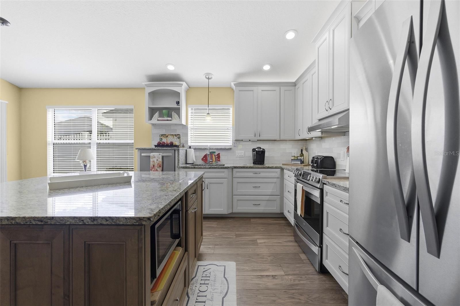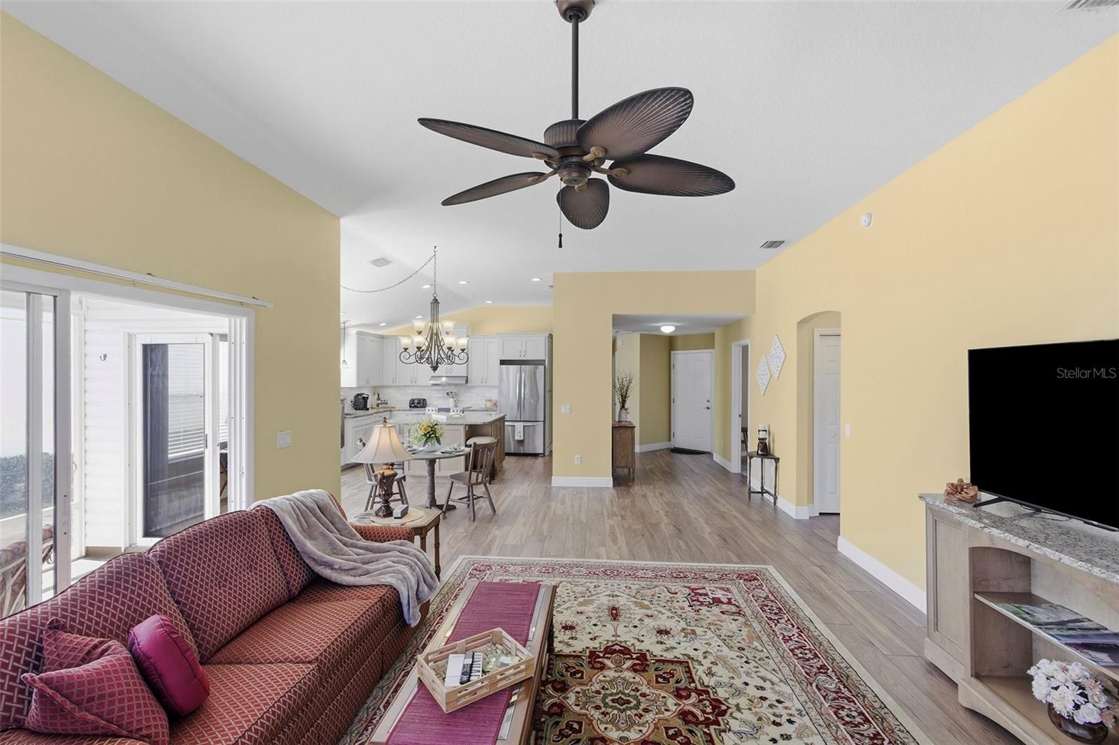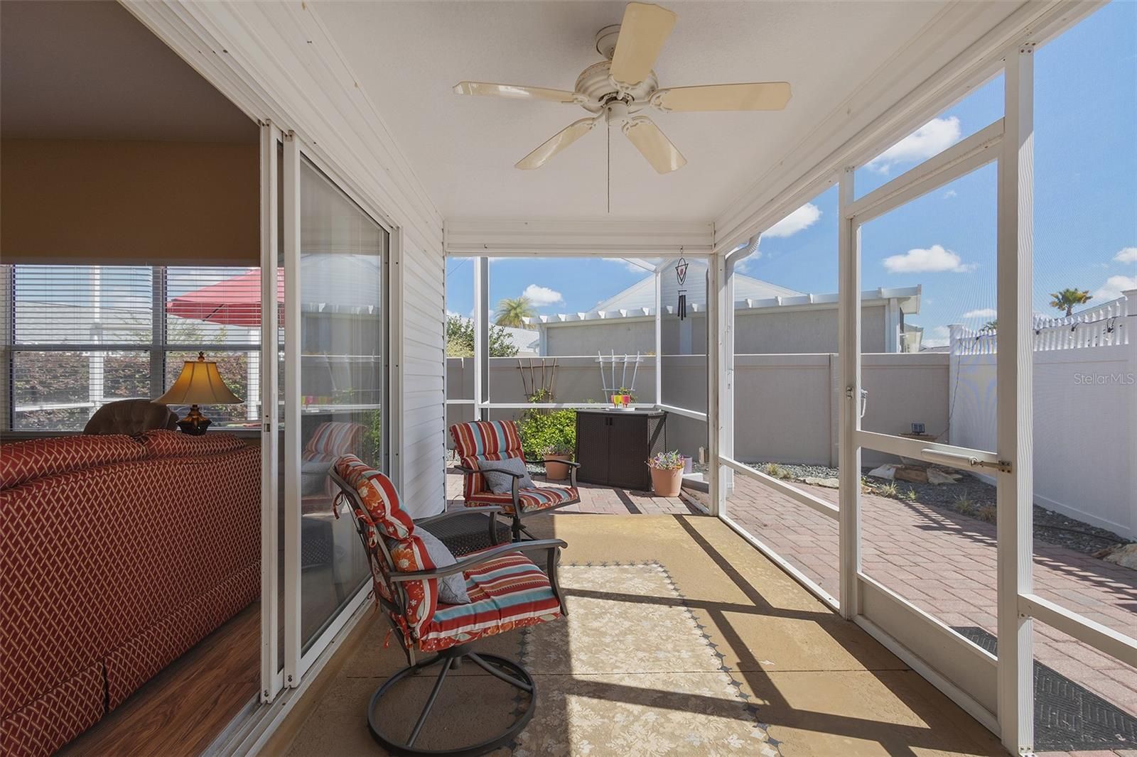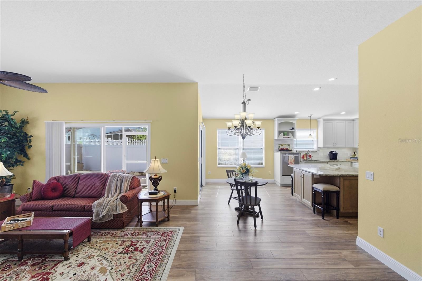 Prime Anna Maria Courtyard Villa in the Village of Hadley – 3BR/2BA with VAULTED CEILINGS, 2023 ROOF, and XXL PAVERED LANAI SURROUND, Updated in 2021 - Upgraded kitchen with GRANITE, LARGE ISLAND, ADDED Custom Cabinetry , WATER-SAFE FLOORING, WHEELCHAIR ACCESSIBLE Welcome home to this beautifully maintained Anna Maria Courtyard Villa ideally located in the highly sought-after Village of Hadley in The Villages. From the moment you arrive, you’ll appreciate the inviting curb appeal with low-maintenance landscaping and a welcoming entry that sets the tone for easy Florida living. Step inside to discover an open, airy floor plan enhanced by vaulted ceilings and abundant natural light. The main living areas and primary suite feature upgraded Mannington Restoration water-safe flooring (2021), offering both style and durability and easy maintenance. The spacious living and dining areas flow seamlessly into the heart of the home—an upgraded kitchen designed for both function and entertaining. Remodeled in 2021, this kitchen showcases granite countertops, a custom cabinet configuration with pull-outs, expanded counter space, and a large island with seating and storage. Additional enhancements include upper and lower cabinet LED lighting, a neutral tile backsplash, stainless steel undercounted sink, and an Elite convection oven by Kenmore—creating a polished, modern, and highly functional culinary space. The primary suite is generously sized with vaulted ceilings, creating a light and relaxing retreat. It includes a large walk-in closet and an en-suite bathroom with dual sink vanities and ample storage. Both guest bedrooms are well-proportioned and feature built-in closets, offering comfortable accommodations for visitors or flexible space for a home office. One of the standout features of this home is the oversized rear lanai, finished with pavers for a polished look and designed for year-round enjoyment—ideal for outdoor dining, entertaining, or simply relaxing in your private setting. The garage has been thoughtfully arranged to maximize parking efficiency and storage capacity, adding everyday practicality. Additional highlights include a ROOF replaced in 2023 and a seller credit being offered toward HVAC due to age, providing added value and peace of mind for the next owner. HVAC currently operates as it is intended, credit for future peace of mind. Located in the Village of Hadley, you’re conveniently positioned near Colony Plaza shopping and dining, multiple recreation centers, golf courses, and just a short drive to both Lake Sumter Landing and Brownwood Paddock Square—making this an exceptional opportunity to enjoy The Villages lifestyle. Check out the Video Tour by clicking on the TOUR link above. This move-in ready courtyard villa combines smart upgrades, functional design, and an unbeatable location—perfect as a primary residence, seasonal retreat, or investment property.