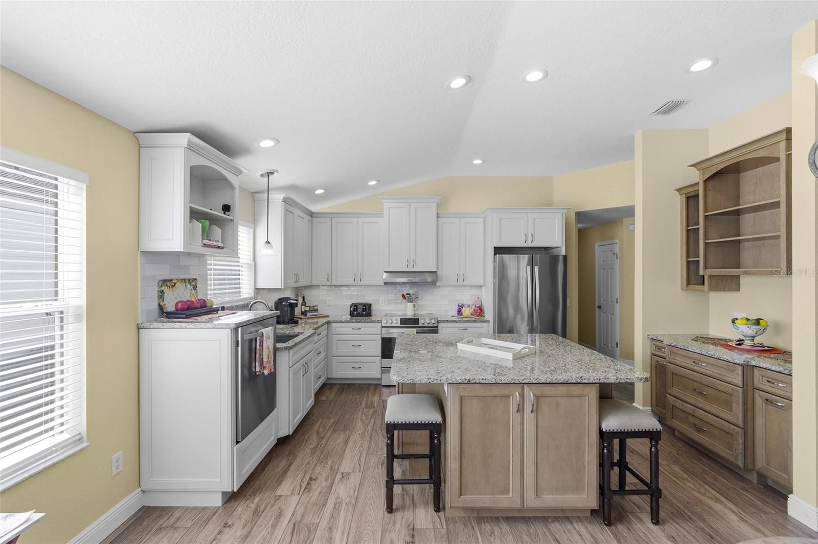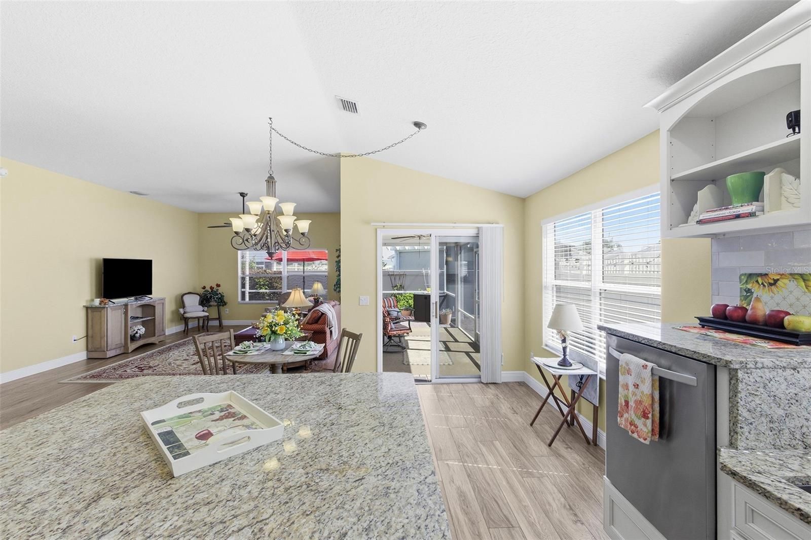 - Accessibility Features, Living/Dining Room, Open Floorplan, Main Level Primary, Stone Counters, Vaulted Ceiling(s), Walk-In Closet(s), Window Treatments