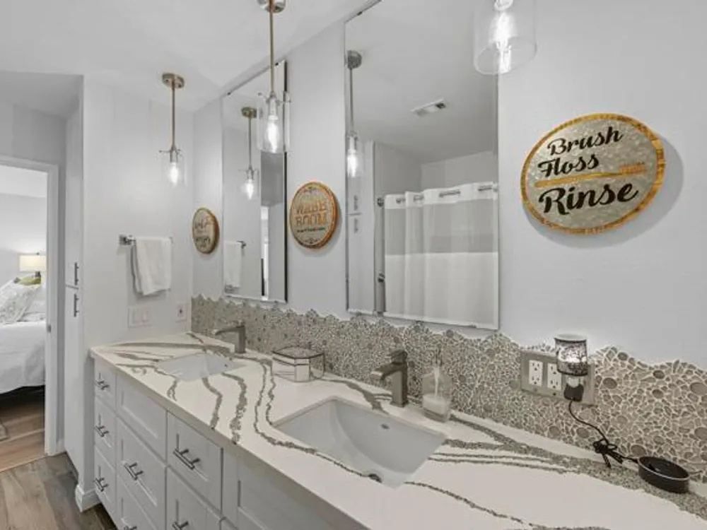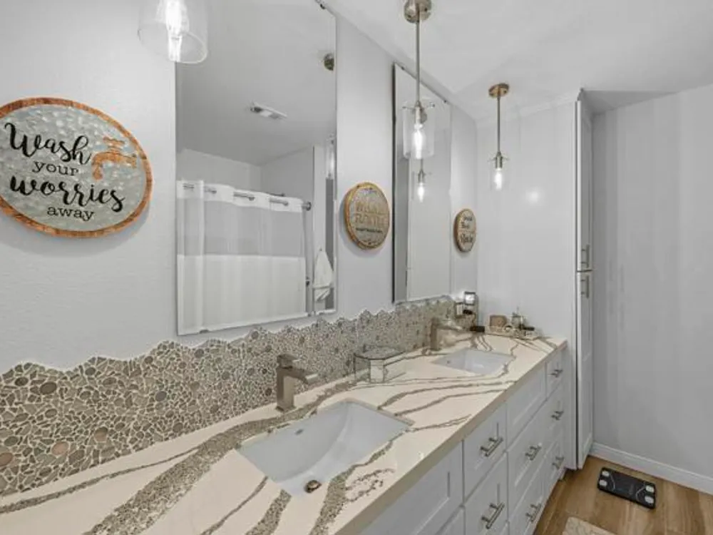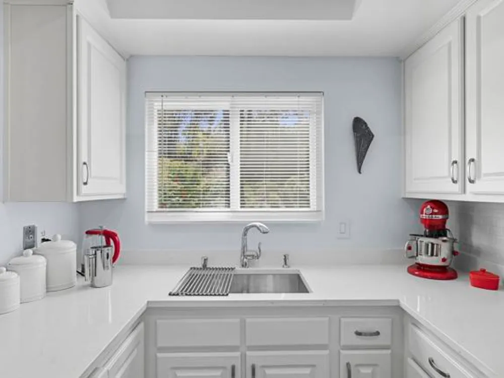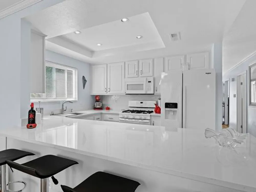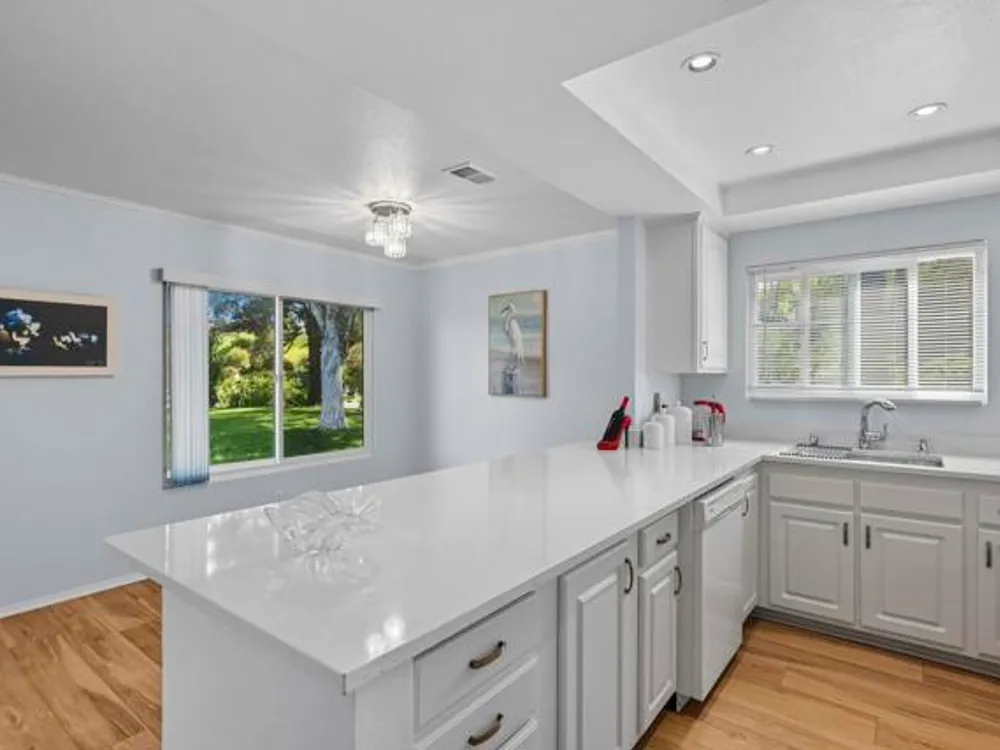 Experience the perfect harmony of privacy, comfort, and convenience in this beautifully updated single-story end unit, nestled within one of Oceanside’s most desirable 55+ communities. With no neighbors behind or beside you and set against a lush, manicured greenbelt adorned with mature landscaping, this home offers a rare and peaceful retreat. Enjoy unbeatable proximity—less than 5 minutes to El Corazon Senior Center, the historic Mission San Luis Rey, and top retailers including Ralphs, Vons, Stater Bros., Walmart, and Lowe’s. You’ll also find a wide selection of dining options and essential medical facilities nearby, including Tri-City Hospital. In just 10–15 minutes, explore the vibrant downtown Oceanside with its new resorts, or escape to scenic lakes and one of California’s premier harbors for fishing and recreation. Step inside to a tastefully remodeled kitchen featuring quartz countertops, a stainless steel farmhouse sink, and newer appliances including a 5-burner gas stove, microwave, and refrigerator. The flexible floor plan includes a cozy carport-patio area and a one-car attached garage finished with drywall. Recent upgrades include fresh interior paint, elegant wood plank flooring, and two fully renovated bathrooms with modern tile and walk-in showers. A