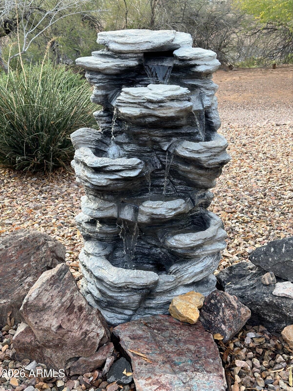 Fully furnished and move-in ready home! One level with open floor plan and 9-foot ceilings. Builders model with all the bells and whistles including large master bedroom with bay window, en-suite bathroom and walk-in closet. Upgraded extra-long master bathroom with extended fully tiled shower with bench and pull-down shower head, double vanities with marble countertops, recessed medicine cabinets, 8×10 walk in closet, additional large linen closet, separate toilet room. Custom kitchen includes marble countertops, upgraded staggered cabinets with crown molding, large island with breakfast bar, pull out drawers, large walk-in pantry, stainless steel appliances, gas cooktop, built-in oven & microwave, dishwasher, and beautifully colored tiled backsplash. Desk nook. Home is wired for sou inside and outside. Double sliding glass doors to the patio with custom roller shades. Many after-market upgrades including new water purification system, beautiful split level plantation shutters, attractive ceiling fans, and solar panels. Furnishings include two new leather recliners and big screen tv, king bed in master bedroom with dresser, matching bedside tables, two sitting chairs, and footboard bench. Queen bed in second bedroom with bedside tables. New kitchen table and chairs. Desk in living room. Second classic style refrigerator in laundry room. Garage has overhead shelving and extended length garage upgrade. Lovely backyard view with only natural landscape behind the home. Friendly neighborhood. Beautifully landscaped yard with small waterfall fountain and an incredible outdoor fireplace. Irrigation drip system. Entertain on your covered patio next to your outdoor fireplace and enjoy the view. This stunning must-see home is priced to sell.