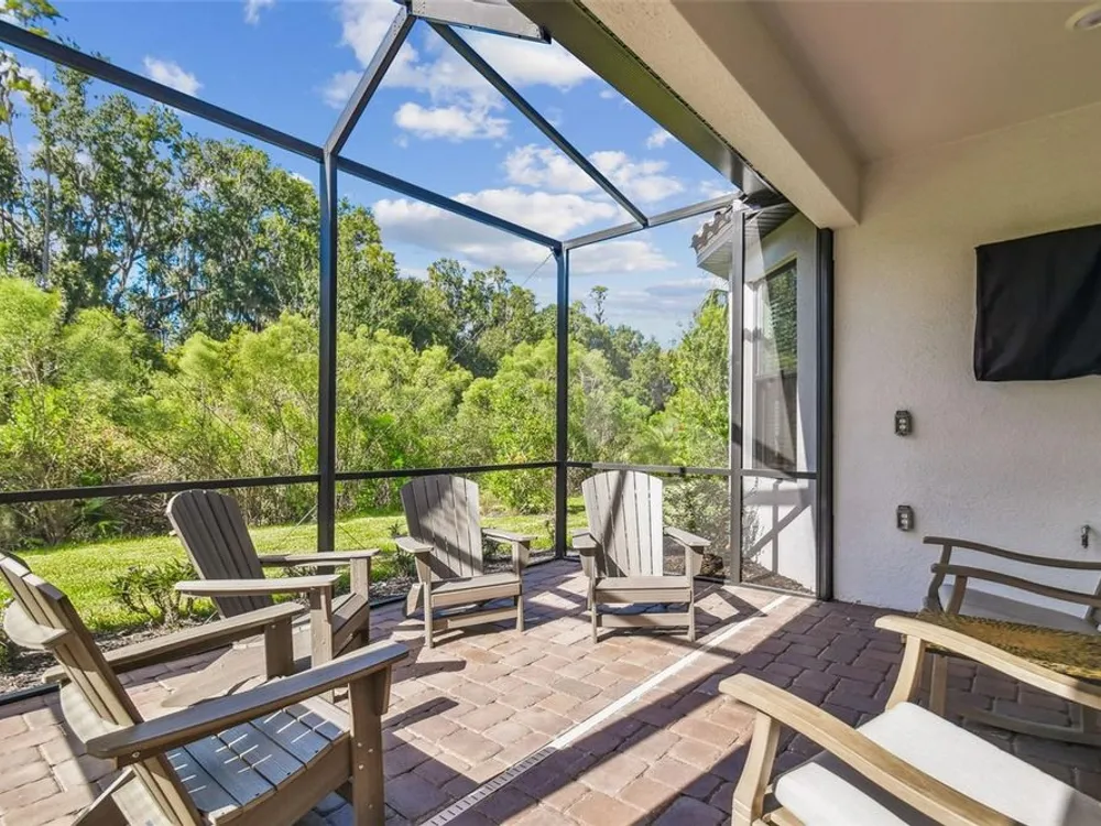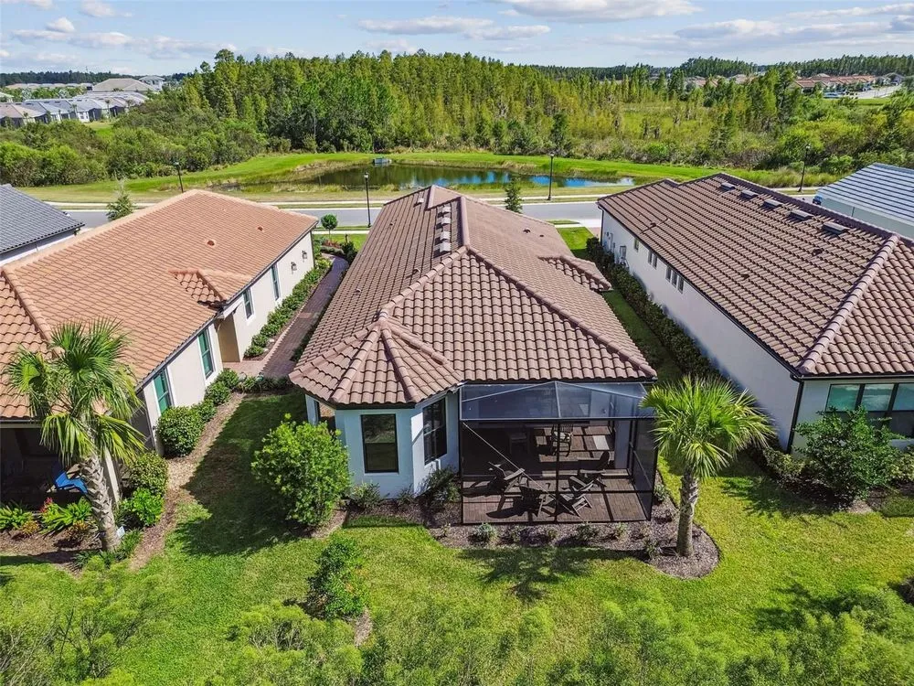 Why wait to build when you can have it all now with this beautifully upgraded Roma model home in Esplanade at Wiregrass. This 2-bedroom, 2-bath, plus office/flex, 2-car, 1,694 SF home has an extended garage on a beautiful conservation lot is all you have been looking for in a home. The kitchen features custom cabinets, quartz counters, upgraded stainless steel Cafe appliances, pantry, and a deep SS sink. The kitchen has ample counterspace for entertaining overlooking an inviting great room with tray ceiling, and crown molding with a large sliding glass door leading to the lanai. The expanded primary suite features a tray ceiling, walk-in closets, quartz counter, dual sinks and a large shower. A large dining room with tray ceiling has room for an oversized table. The extended screened lanai has pavers, pre-plumbed for outdoor kitchen and a great view of serene conservation. The upgrades and features of this home include, but are not limited to, an office with French doors, luxury large format vinyl floor throughout, 8’ doors, tray ceilings, extensive crown molding, laundry room with upper and lower cabinets, sprinkler system using recycled water, upgraded garage door opener, a water softener loop and a unique lot with a pond to the front of the home and conservation to the rear. Esplanade of Wiregrass Ranch is a 55+ community that has a luxurious upscale club house with full-time lifestyle and fitness directors. The Venue includes a resort style pool, hot tub, cabanas, dog park, state-of-the-art 24-hour fitness center, billiard/card room, and spa room. For active outdoor entertainment there is a firepit, tennis, pickleball, bocci, and a large meeting/gathering area. Esplanade also includes worry free yard maintenance, reclaimed water and Spectrum TV and internet package included in fees. This home is located only minutes from shopping, I-75, hospitals, restaurants, recreation, and entertainment. Come see for yourself this exquisite residence, sit down, relax, call it home, and live the lifestyle! Please see Matterport 3D tour.