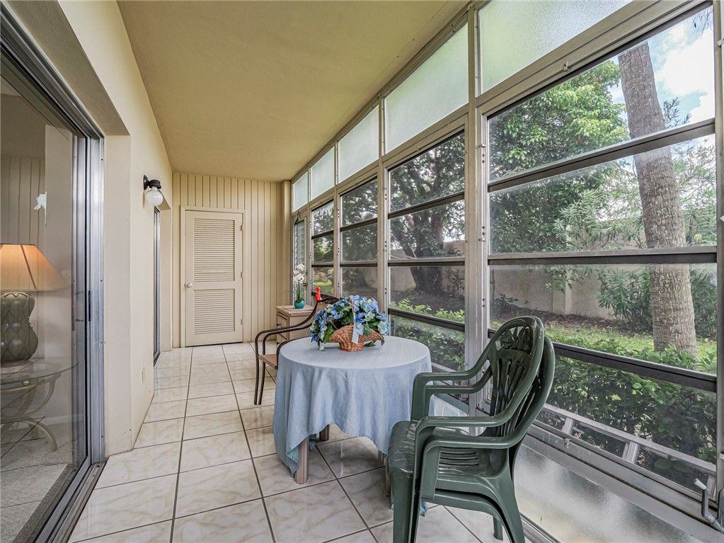 1st Floor condo in Vista Gardens! The most popular 'B' plan! This condo has its own washer and dryer hookup. Enclosed florida room overlooking the golf course, open to the public! Many amenities including clubhouse, community pool, tennis courts, workshop, shuffleboard, and more! Active 55+ community with activities. Furnishings negotiable. Rooms sizes approx. Buyer to verify.