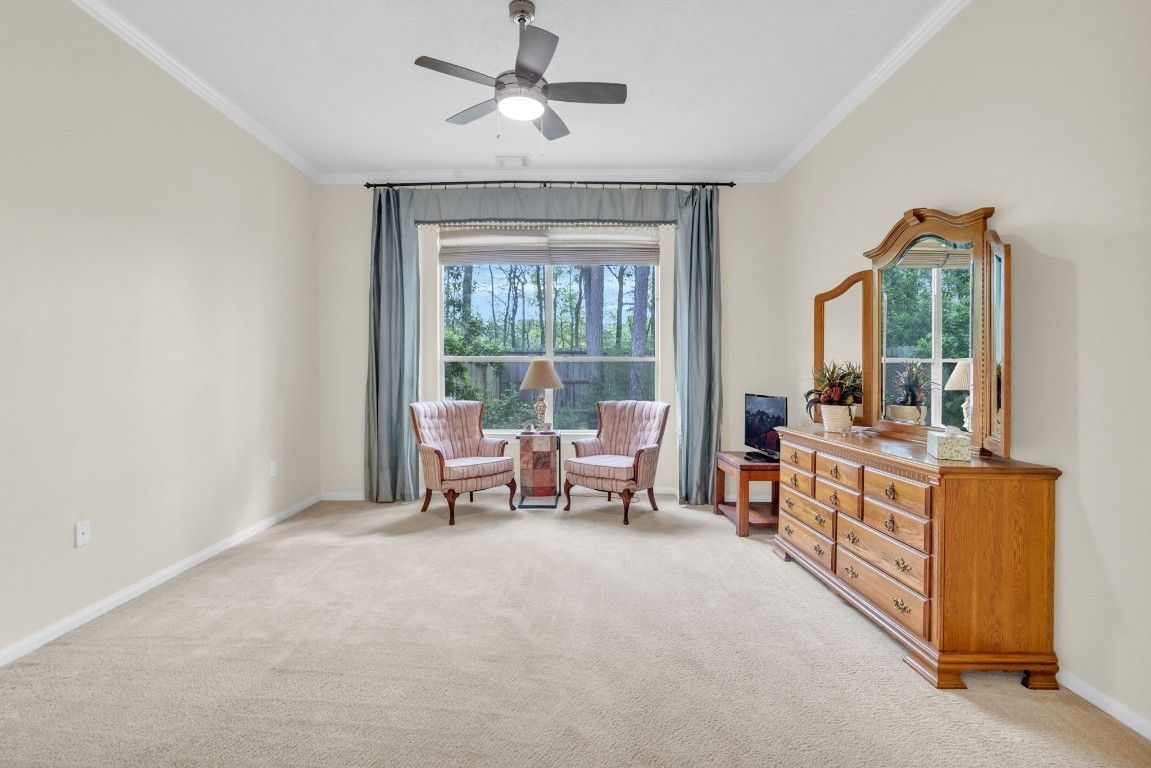Welcome to 44 Windsor Bridge Dr. in highly-coveted Windsor Lakes Estates, a 55+ community designed for comfort, connection, and active adult lifestyle. This gorgeous 3-bedroom, 2-bath home offers large living spaces a flexible floor-plan with the third bedroom perfectly suited as a private study/hobby room, along with a formal dining space that's perfect for gatherings. Granite counters, 42-inch cabinetry, rich hardwood flooring, and fresh, neutral carpeting in bedrooms. Designer paints create an inviting atmosphere, with large walk-in closets and oversized laundry room providing everyday convenience. Step outside to either your screened patio or open patio space and enjoy the soothing, tranquil sounds of your custom waterfall, creating a peaceful backyard retreat ideal for morning coffee or evening relaxation. Enjoy clubhouse with swimming pool, pickleball court, fitness facilities, reading room, cards, board games, and social gatherings room. Welcome home to Windsor Lakes Estates.