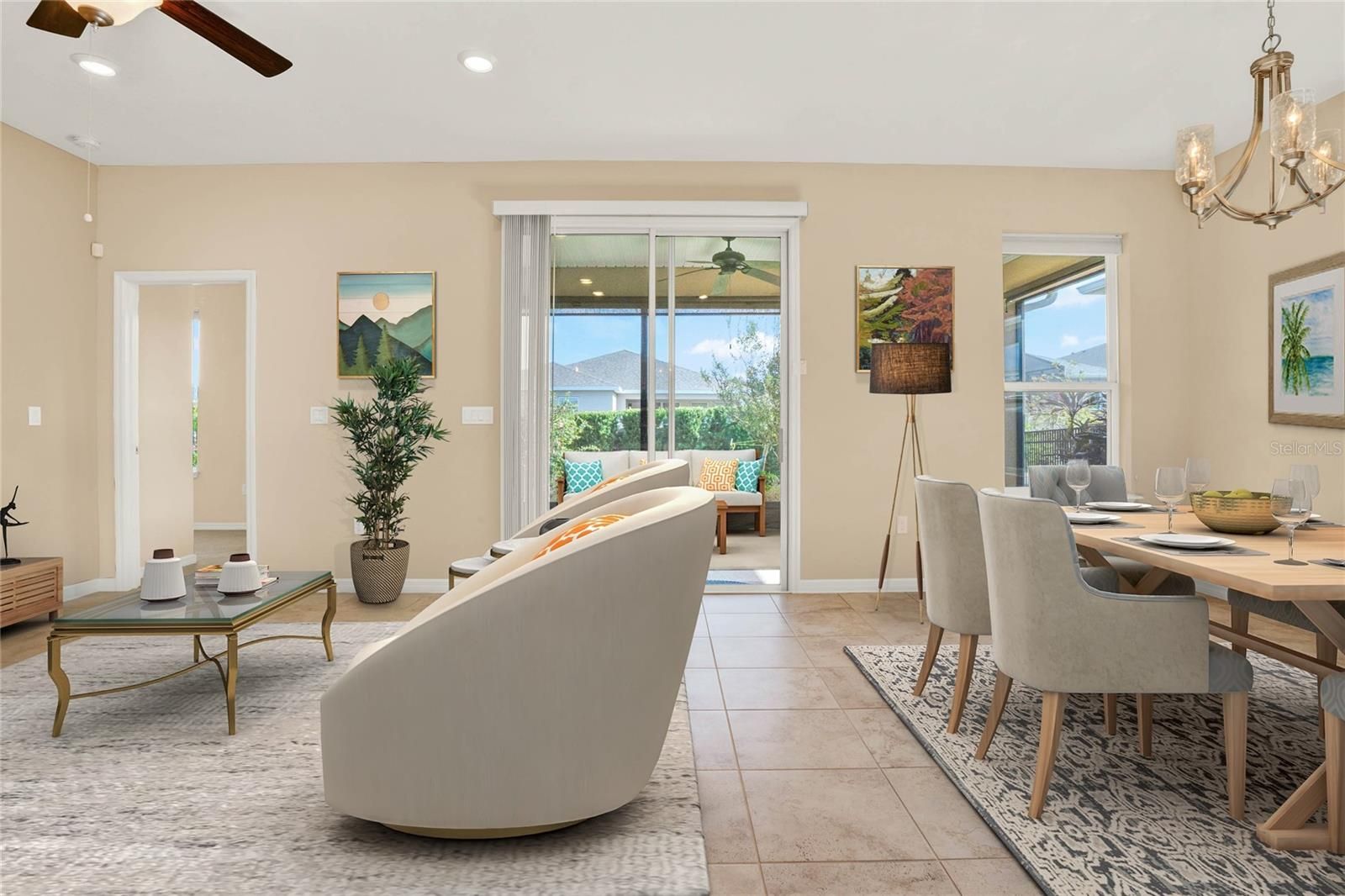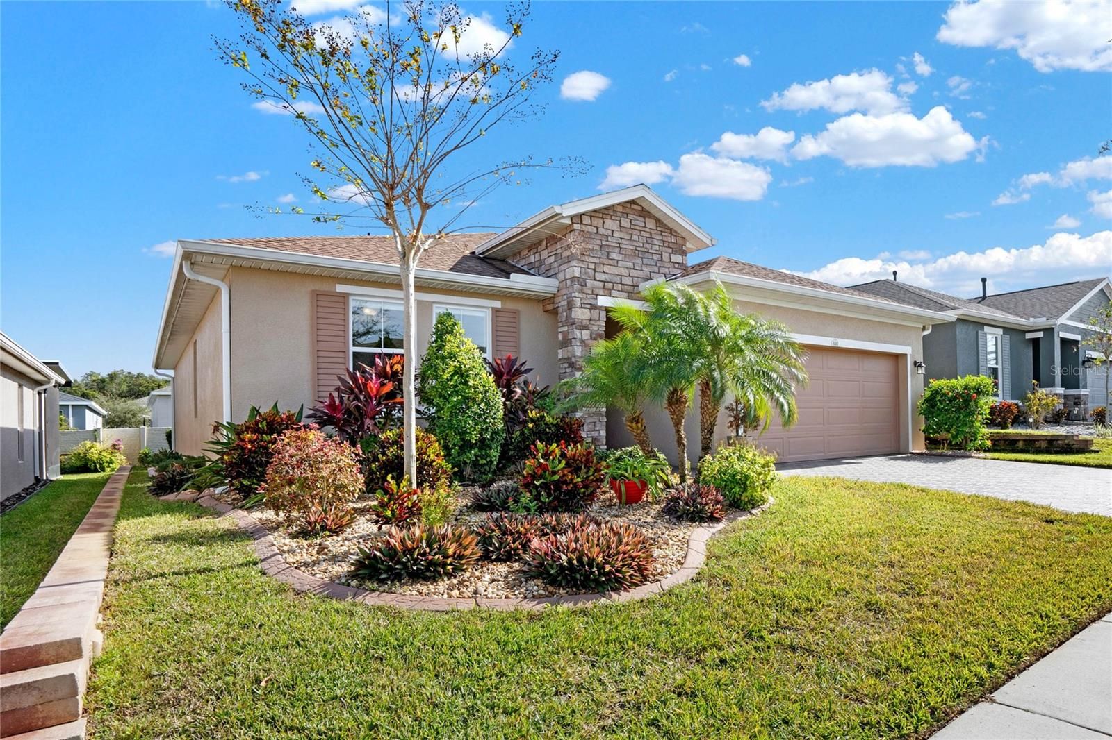 One or more photo(s) has been virtually staged. INCREDIBLE PRICE ON AN EXCEPTIONAL HOME! REFRESHED, RENEWED AND READY FOR VIEW! COME SEE THE PROFESSIONALLY REPAINTED INTERIOR, POWER WASHED EXTERIOR & MANICURED LANDSCAPING COMPLETED 2026! SELLER ACCEPTING OFFERS ...SO BRING YOURS! A WELL-BUILT & EASY ON THE EYES AFFIRM MODEL- SEEKS A NICE NEW OWNER TO MAKE MEMORIES WITH... LET'S MEET IN PERSON... I PROMISE TO KEEP YOU COOL WHEN IT IS HOT AND WARM WHEN IT IS COLD, COME REST AWHILE, ENJOY TANGELOS From My TREES AS YOU RECLINE ON THE BACK Screened LANAI...I KNOW WE CAN HAVE A GREAT LIFE TOGETHER! NOW IT IS TIME, To Create The Next Chapter With YOU! HERE ARE MY STATS: AT 1704 SF, I Am Not Too Big or Too Small, But JUST RIGHT! I am Both STYLISH and CONTEMPORARY, Featuring Popular COASTAL SOFT WHITE SOLID WOOD Cabinets, UPRGRADED Fans, Fixtures, and Lighting Throughout. My EXCEPTIONAL KITCHEN includes a Timeless Glass Listello Tiled Backsplash, a MASSIVE ISLAND with QUARTZ Countertops for additional seating, GAS STOVE for the Chef, GENEROUS Cabinet Space, A Pantry Closet and all STAINLESS STEEL APPLIANCES are included. My SPACIOUS PRIMARY Bedroom Features A ENSUITE bathroom with WALK-IN Shower with Glass Listello Tile, DUAL SINKS, an Extended Vanity and a HUGE Walk-In Closet. My WELL-DESIGNED FLOORPLAN includes Two Additional Bedrooms, at the front of the home, and the 2nd Main Bathroom Ensures PRIVACY for You and Your Guests. OPEN CONCEPT LIVING at its BEST- and PERFECT for Hosting FAMILY and FRIENDS. My Interior Laundry Room Provides EXTRA CABINETS, and a Laundry Sink for convenience...Even The WASHER and DRYER are INCLUDED! I feature NUMEROUS UPGRADES, that you cannot replicate in new construction for this Price! Not to brag, but I Am A SMART HOME with KEYLESS ENTRY, Elegant LEADED GLASS Front Door, SMART THERMOSTAT, allowing you the ability to open and close the garage door with a keypad and more remote options when you are away. The 2-car + garage with additional OVERHEAD STORAGE and EPOXY FLOORING features an Expanded Area Suitable for Workspace, Storage, or a GOLF CART. The owner has also maintained a PREPAID TERMITE BOND and maintained HVAC SERVICE CONTRACT for your benefit. A GREAT LOCATION TOO, You will be Close to The Resident Gate which makes for Easy AccessibilIty, as well as near the Scenic WALKING TRAILS, AND CONVENIENT TO DOG PARK AND MAIL STATION! Situated on an Elevated Lot, UPGRADED Landscape Curbing Around Flower Beds, Flowering Plants and Fruit Trees (Tangelos), Creating a Setting that Offers You Both A VIEW and PRIVACY. My SCREENED LANAI Extends Your Living Space Outdoors, and This Will Soon Be Your FAVORITE Place to RELAX! Complete with Roller Shade and Fan, so you can Choose To ENJOY The Sun or Have Shade While Enjoying Your Tranquil Setting. The monthly HOA fee INCLUDES LAWNCARE, EXPANDED CABLE, HIGH SPEED INTERNET, & a LANDLINE, MYTEK HOME SECURITY, GUARD GATED FRONT ENTRANCE, and CLUB AMENITIES! Your new home at TRILOGY is centered around the 57,000 sq. ft. Magnolia House, which features a full-service BAR AND RESTAURANT ONSITE, two gyms, INDOOR and OUTDOOR pools, spas, tennis, pickleball/bocce ball, event center, dance studio, poker lounge, GOLF simulator, classes, social programs, activities, and SO MUCH MORE! IF YOU ARE READY TO LOVE WHERE YOU LIVE -COME SEE WHY I AM YOUR FOREVER HOME & LET'S MAKE MEMORIES TOGETHER!