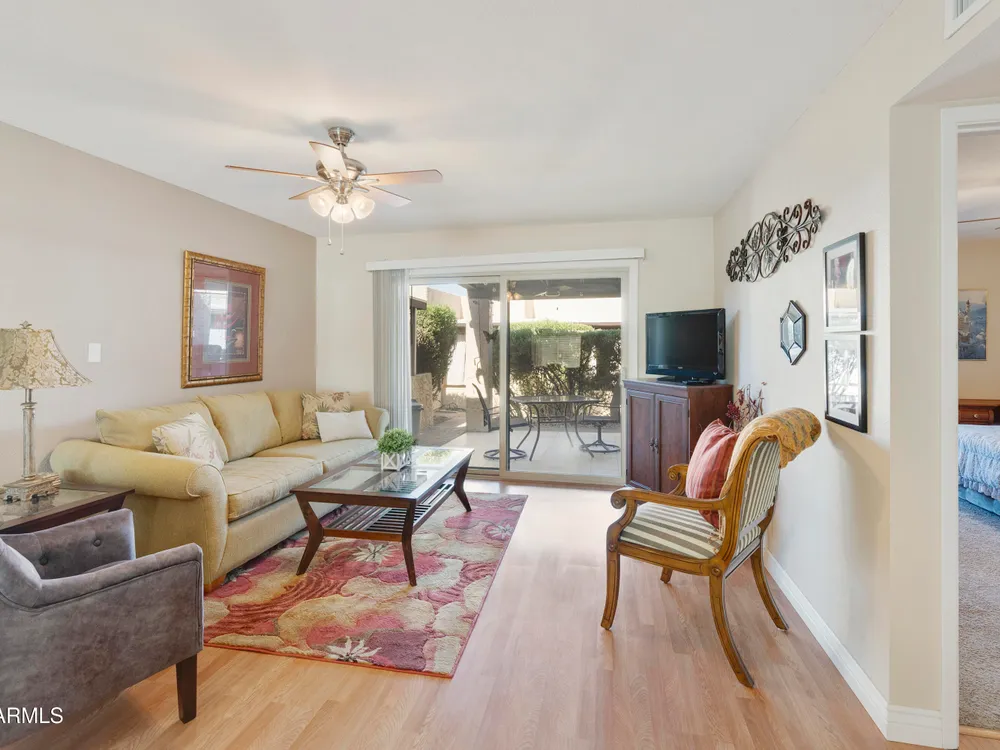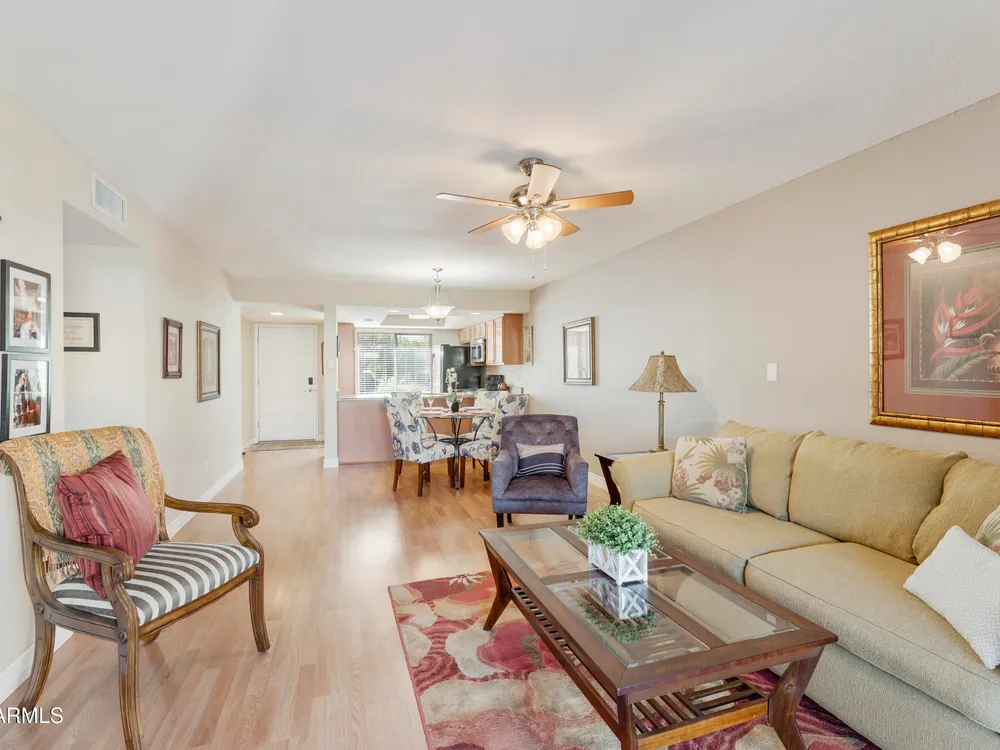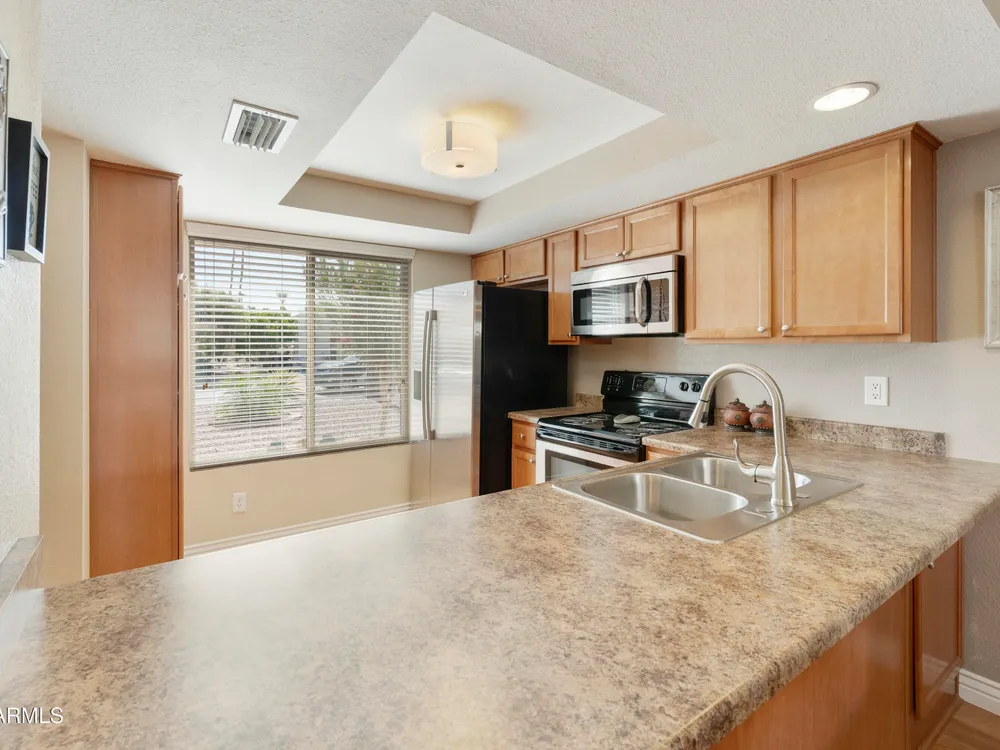 Welcome home to this fully furnished 2 bed, 1.75 bath condo with 1,032 sq ft in the desirable 55+ guard-gated community of Fountain of the Sun in East Mesa. Fully renovated in 2013, this unit features updated kitchen cabinets, countertops, and stainless steel appliances. Additional updates in 2023 include a new AC unit, a new patio slider in the living room, and new windows in the kitchen. Interior highlights include updated flooring, upgraded carpet in bedrooms, 4.5'' baseboards, no popcorn ceilings, new ceiling fans, and fresh paint throughout. Bathrooms feature new vanities, a rare dual vanity in the primary bath, refinished & reinforced showers, and new toilets. Also includes new window coverings, tiled back patio, and a refreshed laundry room with updated walls and flooring. No Pets! Sorry, this is a NO PET AREA! Convenient to the US 60 and Red Mountain freeways, close to Mesa Gateway Airport, Sky Harbor, and Costco! If shopping & dining out is your thing...Superstition Springs & San Tan Mall are a short drive away. Enjoy the Country Club & Golf Community offering a lake, golf course, and tons of planned activities: pickleball, BOCCE, fitness, billiards, library, horseshoes, arts & crafts, card room, shuffleboard, and more! Birdie's restaurant is open daily!