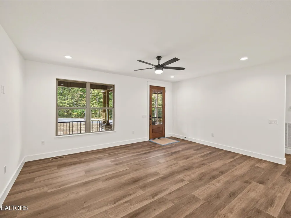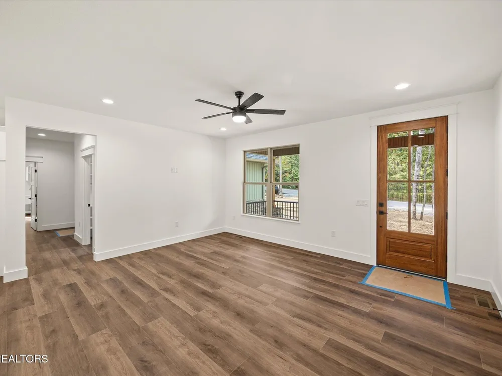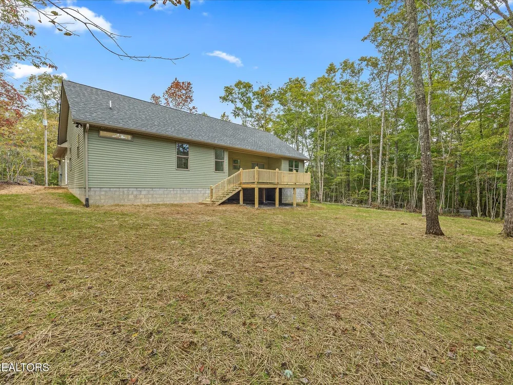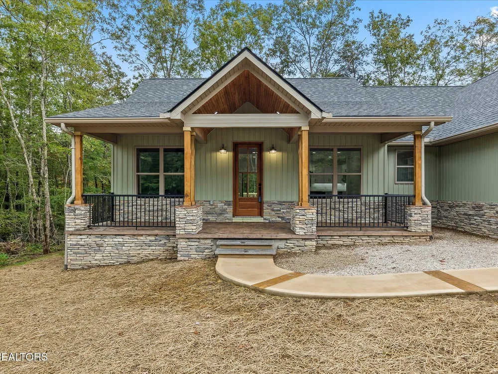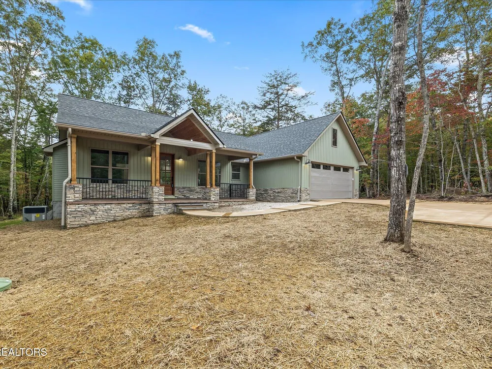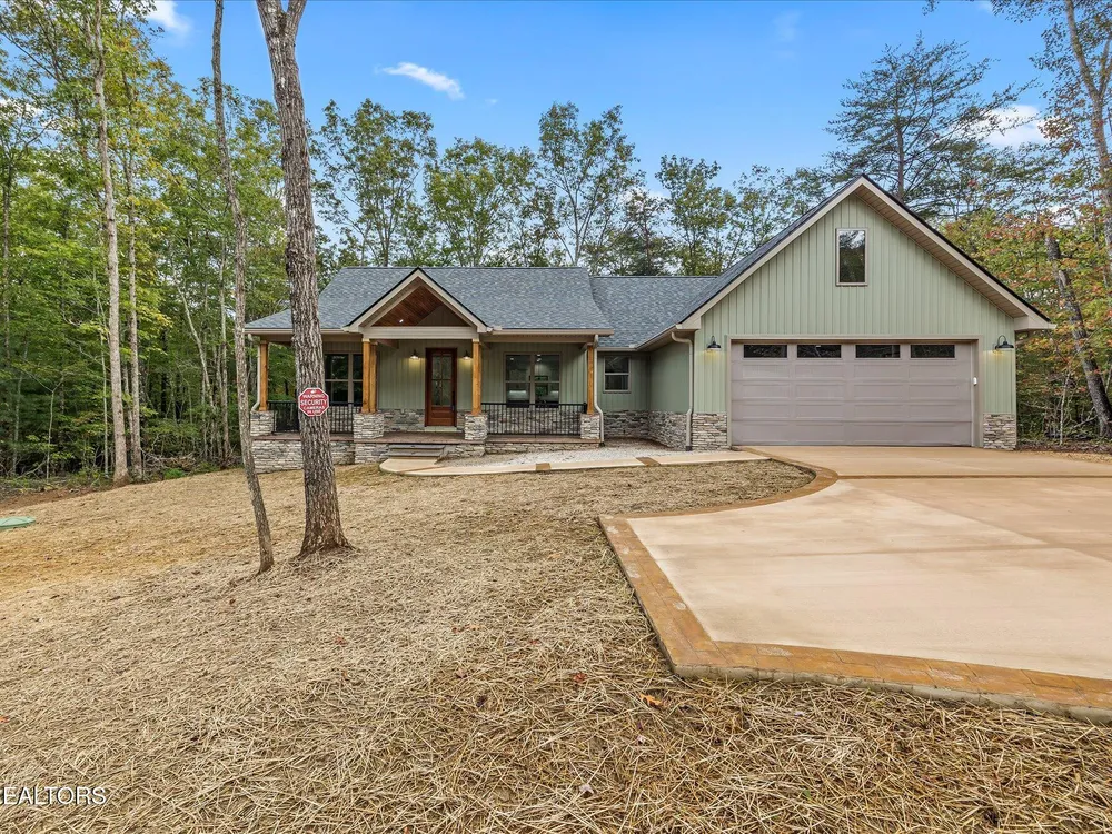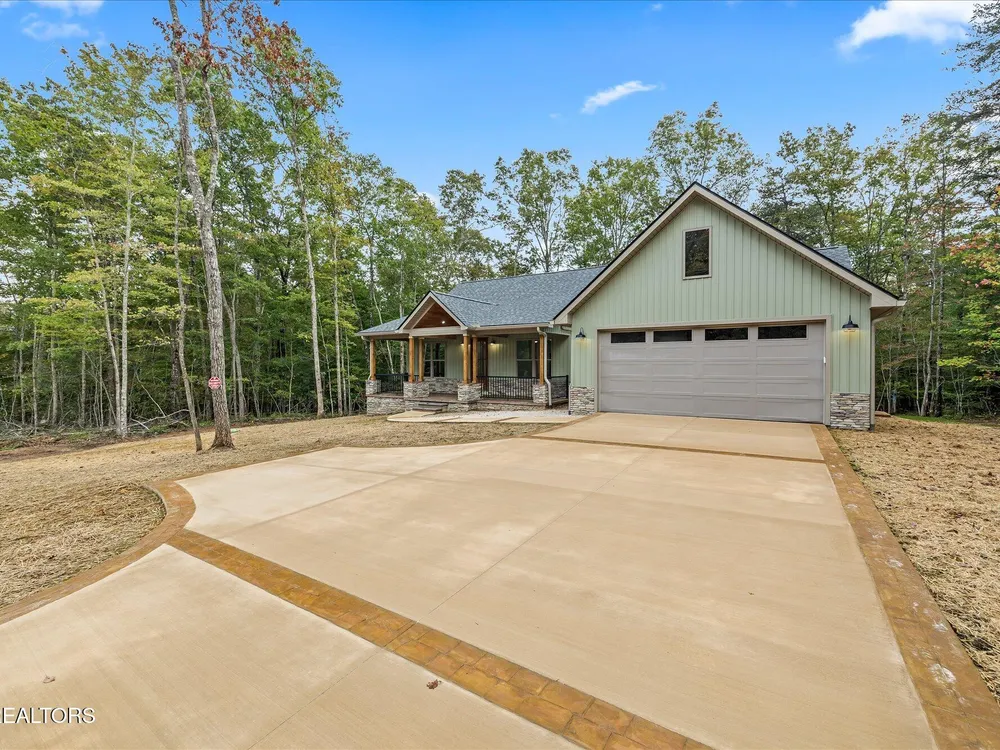 Welcome to this beautifully crafted 3-bedroom, 2-bath home offering 1,686 square feet of thoughtfully designed living space in the heart of Fairfield Glade. From the moment you arrive, the curb appeal impresses with a stunning covered front porch featuring stamped concrete and a rich tongue-and-groove wood ceiling- perfect for relaxing or welcoming guests in style. Step inside to an open concept layout that seamlessly connects the living room, dining area, and a kitchen, creating a warm and inviting space ideal for entertaining. The kitchen is a chef's dream with classic white cabinetry, granite countertops, a spacious center island, and a large walk-in pantry for extra storage. Throughout the home, you will find durable and stylish luxury vinyl plank flooring, as well as custom closet systems that add function and flair. The split bedroom plan ensures privacy, while the primary suite is a true retreat with a huge walk-in closet, double vanities, and a luxurious 4x8 walk in tile shower with granite counters. Additional highlights include a spacious laundry room, house wired for a generator, board and batten siding with elegant stone accents, 16x20 partially covered back porch, and a convenient turnaround driveway. Located in the desirable Fairfield Glade community, you'll enjoy access to golf courses, walking trails, lakes and more. This home blends modern finishes, functional design, and exceptional craftmanship! (*Buyer to verify all information before making an informed offer.)
