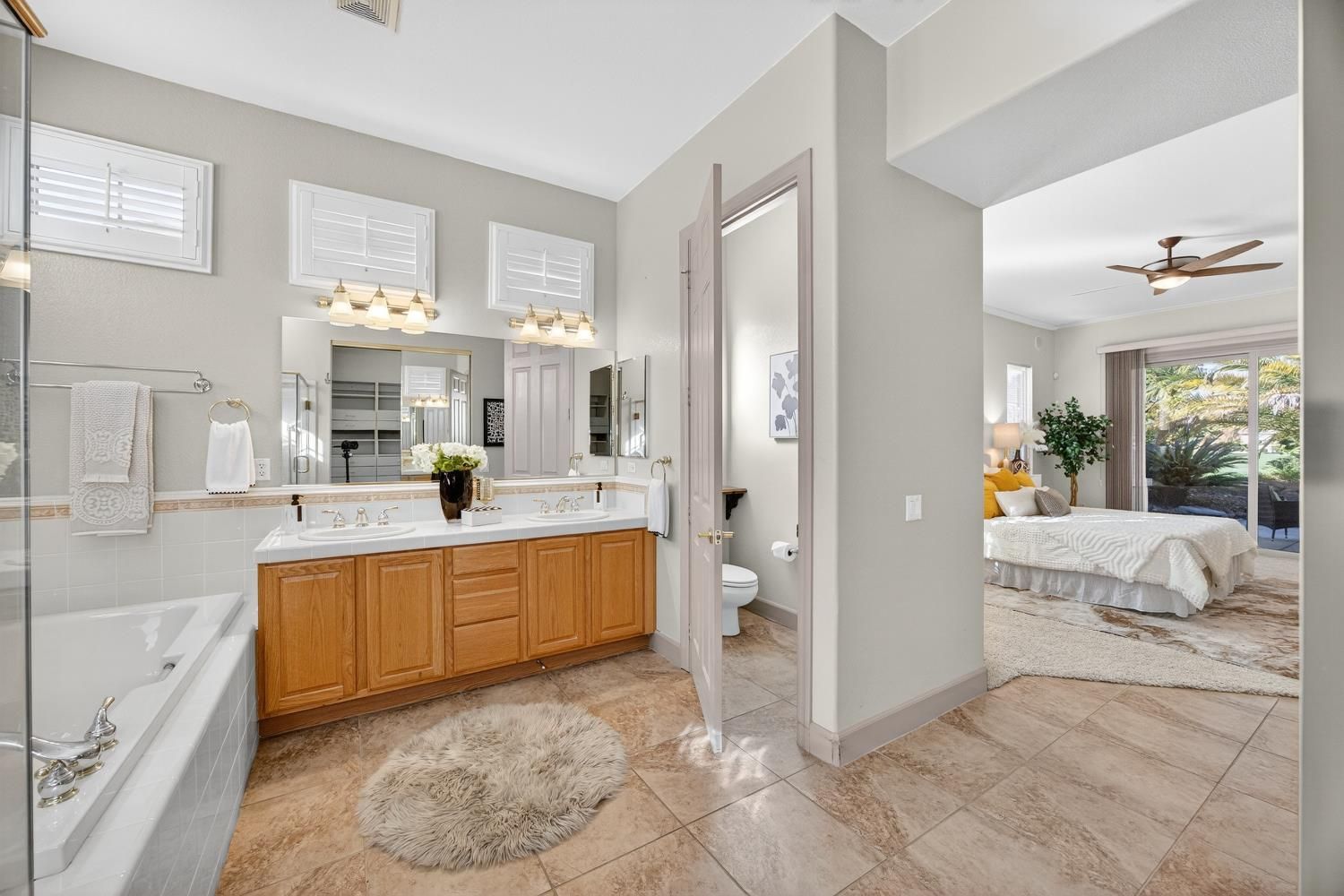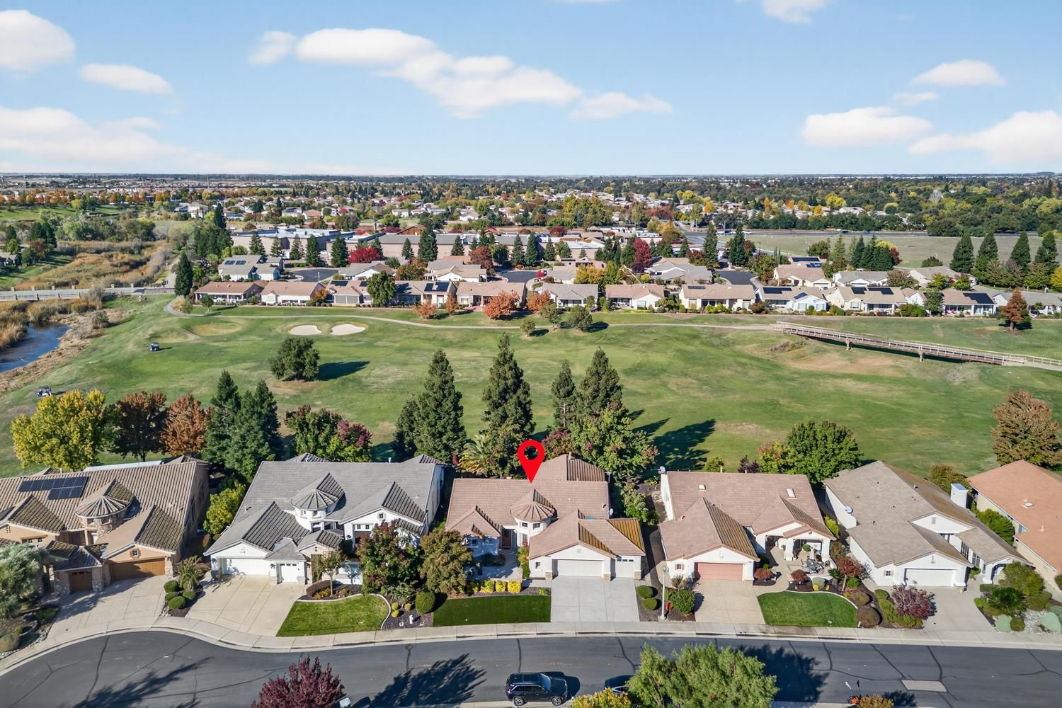 Welcome to Sun City Lincoln hills and appreciate this popular Sausalito model that is nestled within a quiet Cul de sac. This home boasts 3 full bedrooms and 2 full baths while allowing privacy for the primary suite as it is separate from the other bedrooms. It has a large walk-in closet with custom organizer, jacuzzi tub and outdoor access to the extended patio, soothing water feature and golf course view. A spacious 3-car garage offers hard rubber flooring and built in storage cabinets. This home has magnificent curb appeal with artificial grass, mature landscaping and a large patio. As you enter the home, you appreciate the vaulted ceilings, formal entry and dining areas. Enjoy ample of natural light and recessed LED lighting throughout. The kitchen offers a gas stove top, double oven and pantry while looking into the spacious great room with fireplace and a view of the outdoors. You are just minutes from Anglers Cove, golf, a comprehensive sports complex offering softball, 15 pickleball courts, tennis courts, bocce ball, shuffleboard and walking trails. Orchard Creek Lodge offers a state-of-the-art fitness center, activities, pool, and spa. Welcome to your new home.