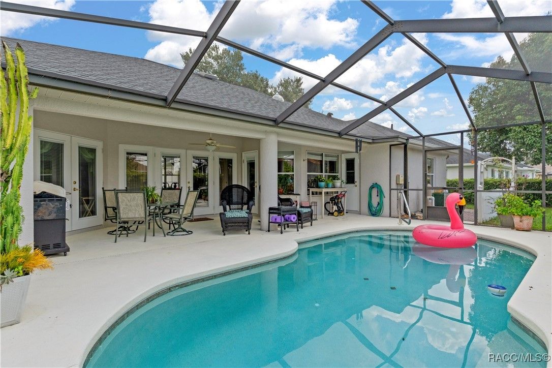 Live your best life in this stunning 3-bedroom, 2-bath pool home, nestled in the prestigious, gated 55+ community of Arbor Lakes. This beautifully updated home features an upgraded kitchen with granite countertops and newer appliances, making it the perfect space for cooking and entertaining. The spacious, open floor plan is flooded with natural light and offers gorgeous views of your sparkling, self-cleaning pool, all framed by lush privacy hedges that create a serene, secluded oasis. The master suite is a true retreat, with a cozy sitting area, French doors leading to the private lanai, and a luxurious ensuite bath that includes a jetted bathtub, perfect for unwinding after a long day. The guest side of the house is equally impressive, with a pocket door that can be closed off for privacy. It includes a guest bedroom, a bathroom with direct access to the pool, and either a third bedroom or a home office ideal for guests or working from home. Storage is abundant throughout, and thoughtful upgrades make this home truly special. Recent upgrades include a brand-new pool pump installed this year, ensuring your pool stays in perfect condition with minimal maintenance. The roof was replaced in 2019, and the AC unit was updated in 2017, ensuring peace of mind and comfort for years to come. Step outside to your own private paradise, where the lanai and pool area provide the ultimate setting for relaxation and entertaining. The Arbor Lakes community offers a range of amenities, including lake access, a clubhouse, tennis courts, and more. Enjoy the security and peace of mind that comes with living in a gated community, all while embracing the luxurious Florida waterfront lifestyle you’ve always dreamed of.