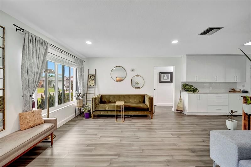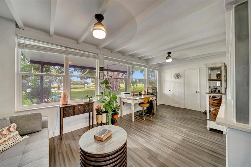 STOP SEARCHING! Gorgeous, worry-free, turnkey waterfront 2-Brdm 2-bath home in Mainlands-Section 3. Home offers ultimate peace of mind & protection. Major expenses already covered w/brand-new metal roof (2023) w/warranty, impact windows & doors, covered patio, new underground plumbing, extended driveway & updated electrical. Interior is just as flawless, featuring contemporary kitchen w/granite & stainless steel, renovated baths, new flooring, newer AC (2020), & fresh paint inside & out. Relax in the extended Florida room overlooking scenic water views & step right onto the amazing walking path in Mainlands Park. The low HOA fee covering lawn maintenance, trash & sprinkler system. Enjoy the community pool, clubhouse & fitness center. Everything is done & waiting for you--This is the one!
