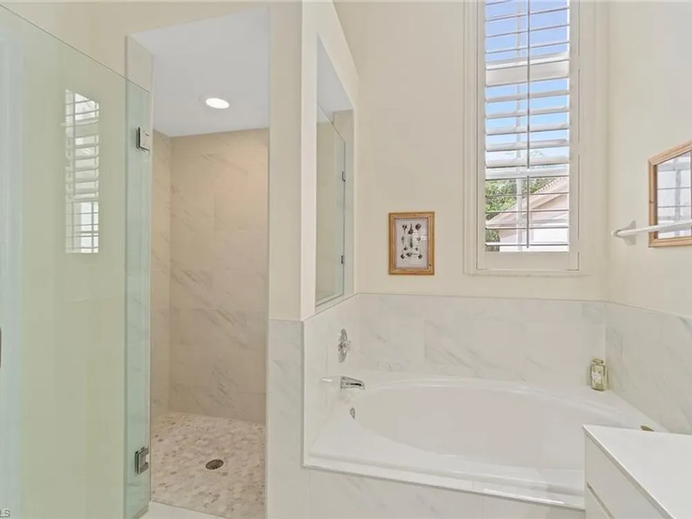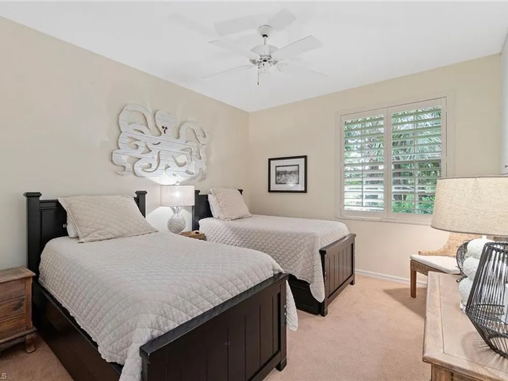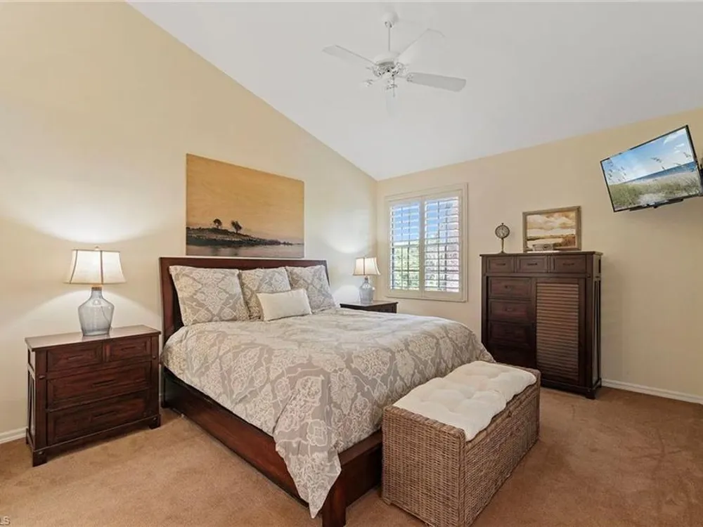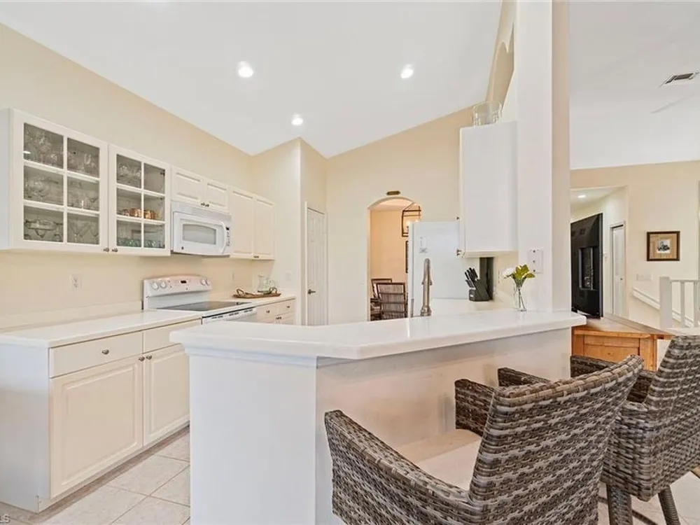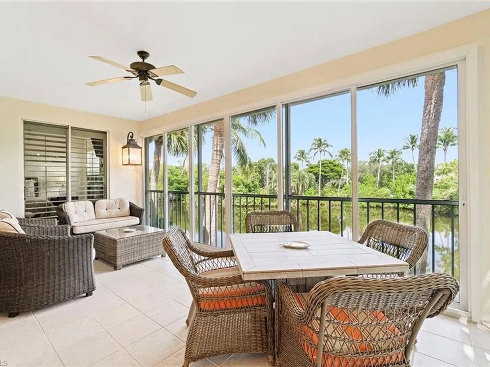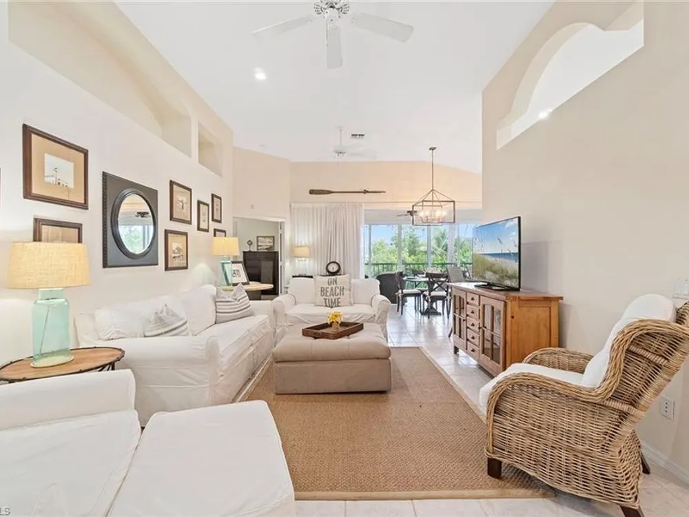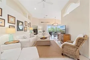 Discover an unparalleled Florida lifestyle in this second-floor end unit in Bonita Bay’s desirable Harbor Landing neighborhood, just 300 yards from the marina and Backwater Jack’s restaurant and directly across from the community pool and spa. This spacious residence features three bedrooms and three full bathrooms, turnkey furnishings, and generous one-car garage. A glass-enclosed lanai with pocketing sliders provides year-round enjoyment with peaceful views of a sparkling pond, lush preserve and swaying palms. The well-appointed kitchen offers recessed lighting, a breakfast bar, pantry and beautifully maintained appliances, while the laundry room includes immaculate LG appliances, a utility sink and bonus storage. The primary suite boasts dual walk-in closets, plantation shutters, recessed lighting, dual sinks, a soaking tub, a tastefully remodeled shower, linen closet and a private water closet. With a new air conditioner in 2024, this property blends comfort and convenience in Bonita Bay, where residents enjoy a private Gulf-front beach park, over 12 miles of recreational and biking trails, bocce ball, pickleball, multiple pools and optional memberships for championship golf, tennis, fitness and fine dining, all in one of Southwest Florida’s sought-after communities.