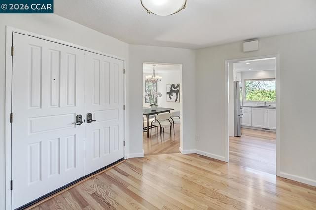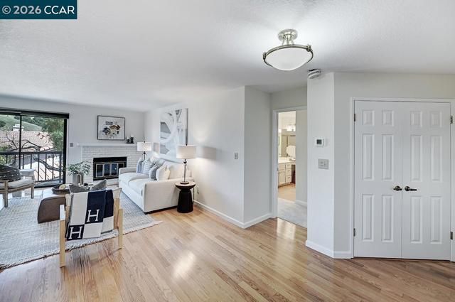 Super sweet Doral condominium offering comfort, style, and an exceptional location. The beautifully remodeled kitchen by award- winning MSK design build features all the modern updates buyers are looking for, including a gas range, custom cabinetry, stunning countertops, and a timeless subway tile backsplash. This inviting home offers two spacious bedrooms and two full baths, along with a separate formal dining area perfect for entertaining. Rich hardwood floors flow throughout, adding warmth and elegance. The cozy family room with fireplace creates an ideal space to relax and unwind. Thoughtfully updated from top to bottom, the home also includes a separate laundry room and a detached garage for added convenience. Ideally situated on a desirable corner location, the property enjoys peaceful distant views and an abundance of natural light. A fantastic walking path just outside your front door enhances the lifestyle this home provides. A truly special opportunity in a highly sought-after setting.