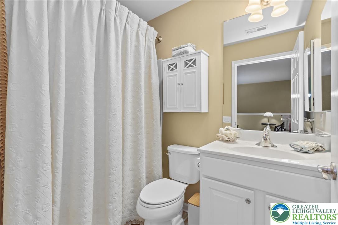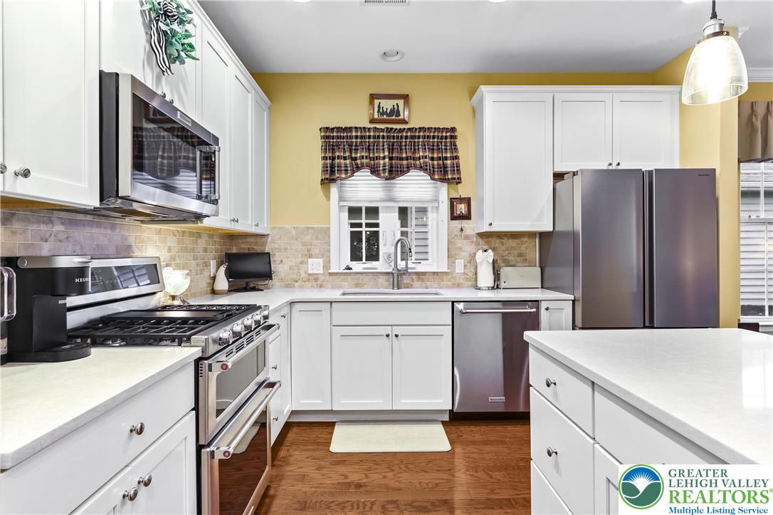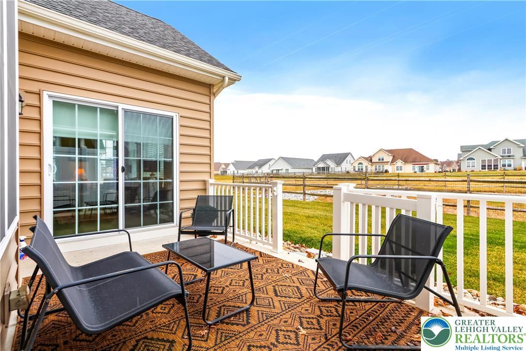 Welcome to Traditions of America at Saucon Valley, a desirable 55+ community offering a low-maintenance lifestyle, active social atmosphere, and excellent amenities. This well-kept 3-bedroom, 3-bath ranch twin home features a gourmet kitchen with quartz counters, double ovens, gas range, center island, and ample cabinetry, opening to the dining area and living room with a gas fireplace. A four-season sunroom adds comfortable year-round living space with abundant natural light. The main-level primary suite includes a tray ceiling, en-suite bath, walk-in shower, and walk-in closet. A second bedroom and full bath on this level provide ideal guest or office space. Upstairs loft offers a third bedroom, full bath, and a flex room perfect for a den or hobby area. Additional features include first-floor laundry, fenced back patio, and attached two-car garage. The HOA covers trash, recycling, lawn and shrub care, mulching, and snow removal. Major items such as roof and siding replacement, power washing, and driveway sealing are also handled, providing true maintenance-free living. Community amenities include a clubhouse with sports bar and fitness center, pool, tennis/pickleball courts ,and a dedicated social committee that organizes events and activities throughout the year. Conveniently located minutes from The Promenade Shops and Route 78, easy access to Philadelphia and New York City. Ask how to receive a $4,000 lender credit towards closing costs or lowering your interest rate!