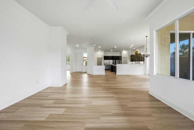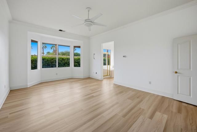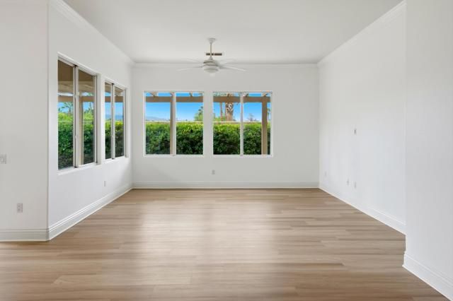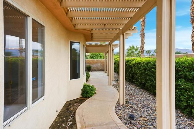 Located in the beautiful Heritage Palms Country Club, a premier 55+ resort-style community, this beautifully maintained 2-bedroom, 2-bath home with a versatile office/den or guest room featuring double doors offers comfort, style, and exceptional desert living. A convenient separate laundry room with washer and dryer opens directly to the attached two-car garage.Spanning 2,052 sq. ft., this spacious residence features an open floor plan enhanced by new luxury vinyl flooring, fresh interior paint, and new baseboards throughout, making it truly move-in ready. Additional highlights include a gas stove, ceiling fans, abundant natural light, thoughtful finishes, and a walk-in shower. large enclosed private entry patio, extra large built in refrigerator/ freezer/ walk in pantry/ gas stove and double ovens. The property offers a large, usable entry courtyard and side yard--perfect for relaxing or entertaining--along with beautiful mountain views and a quiet street location. Priced to sell, this home delivers outstanding value and lifestyle.Residents of Heritage Palms enjoy world-class amenities, including an 18-hole championship golf course, indoor and outdoor pools, pickleball and tennis courts, a fully equipped fitness center, grill room and restaurant, card and billiards rooms, and an active calendar of social clubs and events. Cable TV is included in the HOA, with monthly dues of $600.Ideally located just minutes from the Indian Wells Tennis Garden, additional top-rated golf courses, upscale shopping, Costco, grocery stores, and Trader Joe's, this exceptional home offers the perfect desert oasis and a lifestyle worth living.