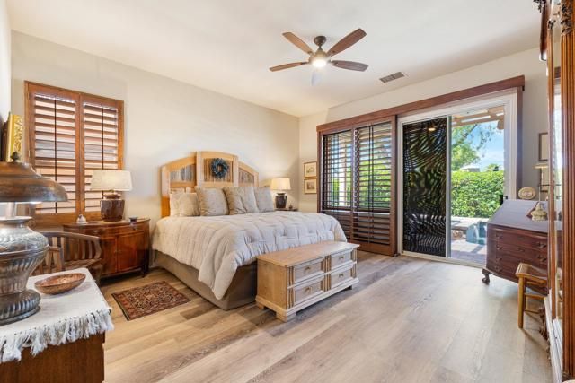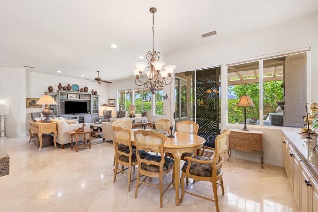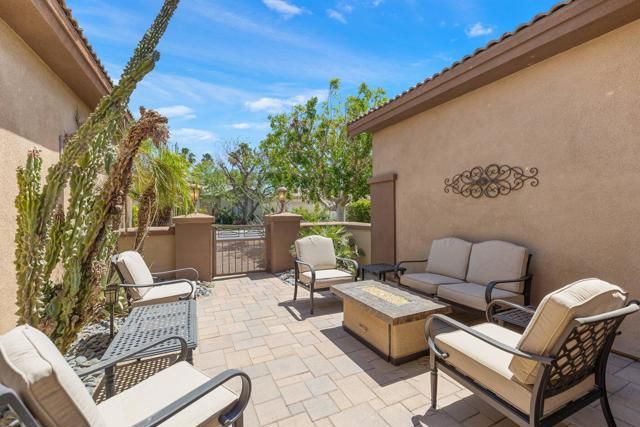 Welcome to Heritage Palms Country Club, a sought-after 55+ community in Indio! This beautifully maintained Gleneagles floor plan offers 2 spacious bedrooms, 2 bathrooms, and almost 2,200 sq ft of open-concept living. Step inside to find a bright and inviting living space with high ceilings, a large kitchen ideal for entertaining with seamless flow to the dining and living areas. The primary suite features patio access and a spa-like en-suite bathroom with a large walk in closet. Outside, enjoy your private pool and spa, outdoor gas BBQ, and a spacious front patio to enjoy the gorgeous desert sunrises. Community amenities include an 18-hole semi-private golf course designed by Arthur Hills, a large driving range, and professional-grade practice areas. Homeowners and their guests can also enjoy indoor and outdoor pools, a fitness center, pickleball and tennis courts, and a clubhouse with restaurant and bar--all within a vibrant, gated setting. The monthly HOA dues include cable and internet. Seasonal rentals of 30 days or more are permitted and Heritage Palms is always in demand for wintering snowbirds. Buyers to pay a one-time fee of $1,200 to the Heritage Palms Capitol Reserves at close of escrow and a Reserve Replenishment fee of $3,600 to the HOA, which may be paid over 9 months.