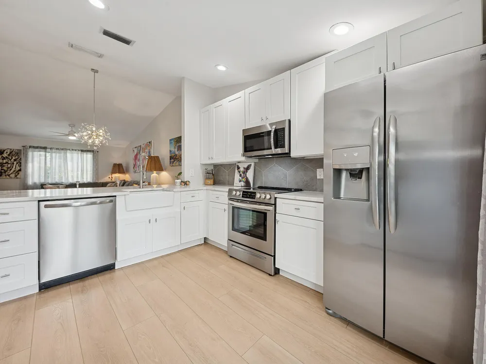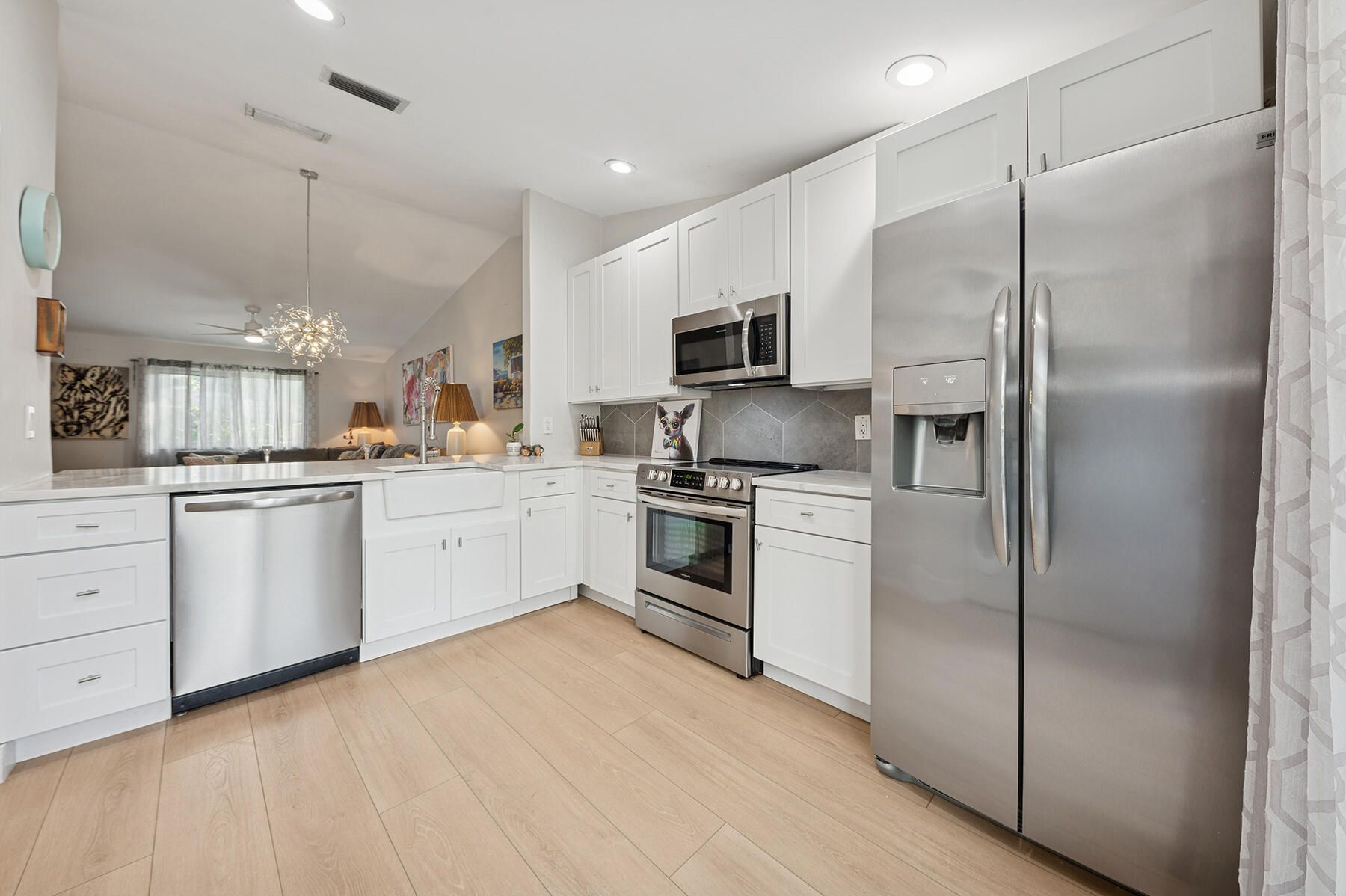 Location, location, location! Just 15 minutes from the Horse Show and 25 minutes from the ocean, this beautifully updated villa in Strathmore Gate West offers elegant 55+ living in sought-after Royal Palm Beach. This villa, located in the most ideal position of the community, adds an extra window in the primary bedroom, filling the space with natural light. Enjoy wide-plank blonde hardwood floors, a kitchen with custom quartz countertops and custom cabinetry--a true showstopper--plus upgraded baths with stainless steel finishes. The spacious open-concept layout is complemented by two additional outdoor spaces, including a screened-in, air-conditioned area perfect for year-round living, blending modern style with everyday comfort.Amenities include pool, clubhouse & community room.