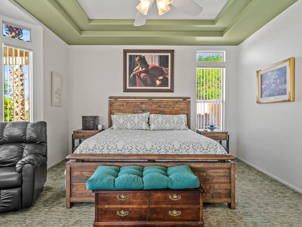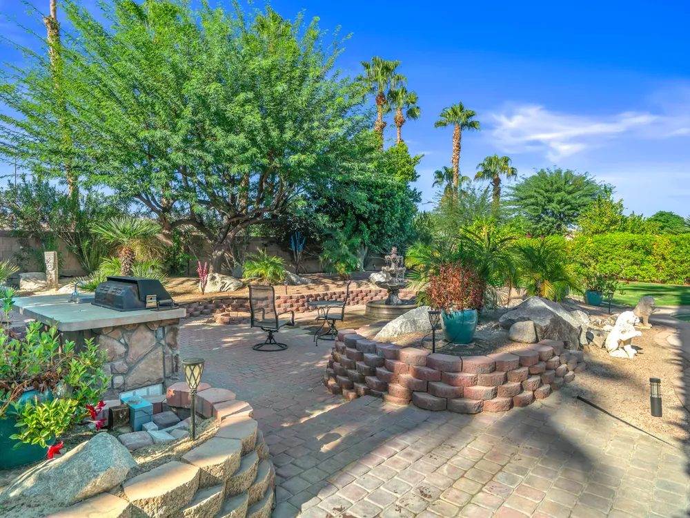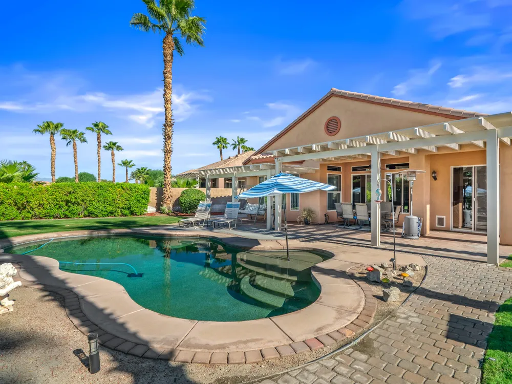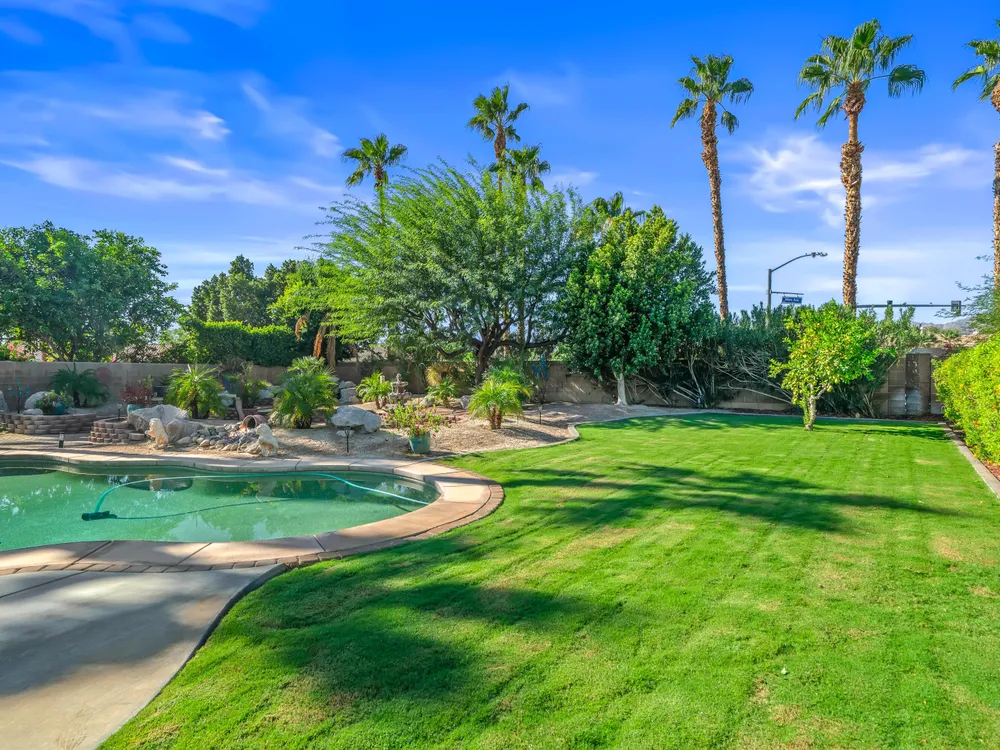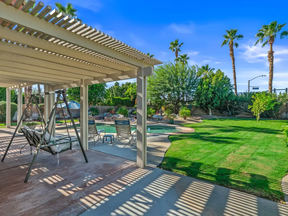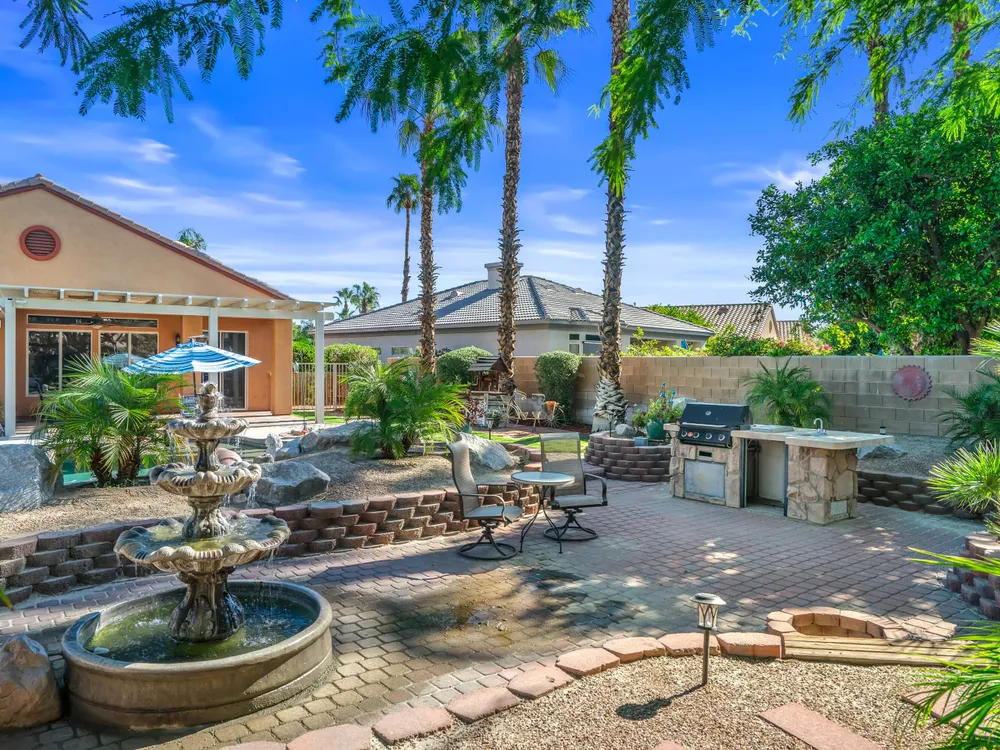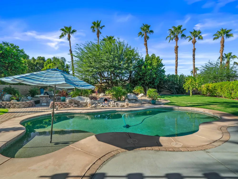 OWNER MAY CONSIDER LEASE. Stunning home in beautiful adult community......rare, large yard with tropical pool oasis. Welcome to your dream home in a highly sought-after golf community! This beautifully updated, open floor plan residence offers the perfect blend of luxury, comfort, and outdoor living. Step into a tropical backyard paradise featuring a BBQ, sparkling pool, waterfall, fountain, lush landscaping, and multiple seating areas ideal for relaxing or entertaining guests. The sunset and mountain views are wonderful and the house is situated on the front of the lot to enhance the view and reduce street noise. Inside, enjoy a spacious layout with an optional office/Den, newer appliances and an indoor laundry room for added convenience. The large primary suite is a true sanctuary, featuring a custom walk-in closet and plenty of space to unwind after a long day. Included in your dues are security, cable TV, internet and amenities! The community offers full security, a dining clubhouse, banquet room, meeting rooms, card rooms, library, billiard room, 18-hole golf course, pro shop, tennis, pickle ball, fitness center, indoor lap pool and outdoor pool and spa with views of the golf course and south facing mountains. The community also has many social groups to choose from! (Owner is licensed Realtor)