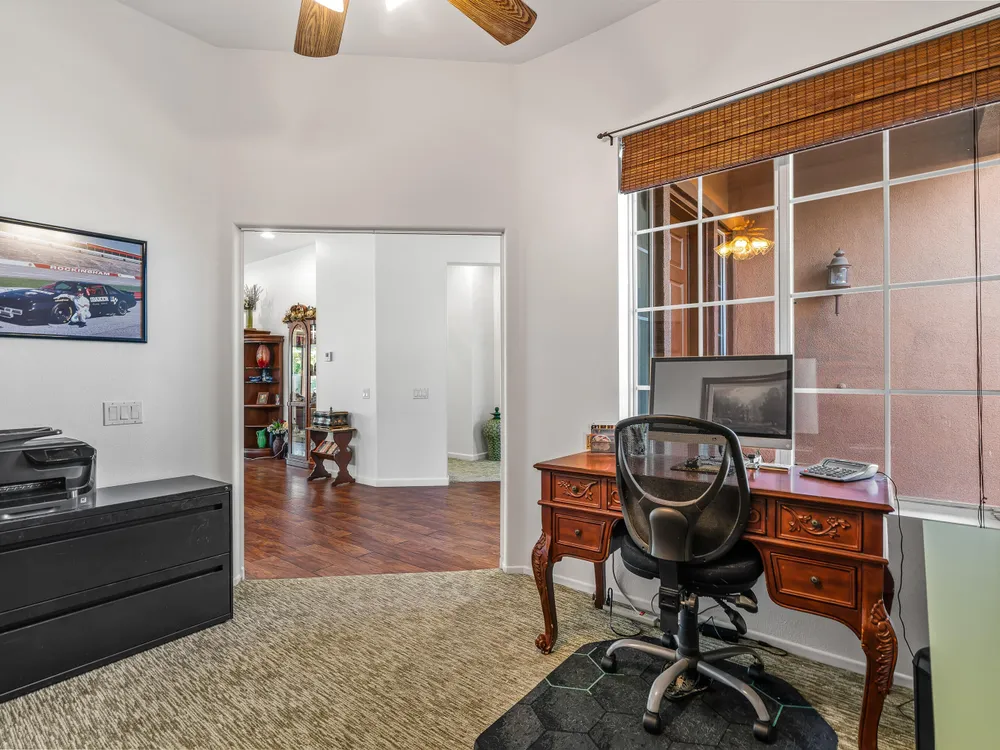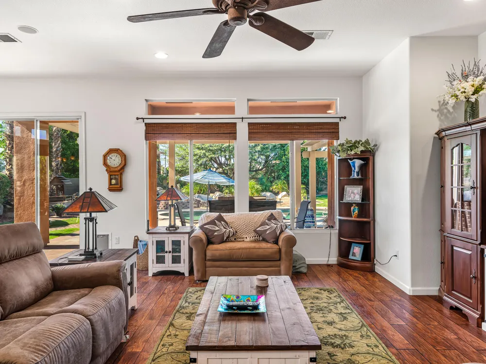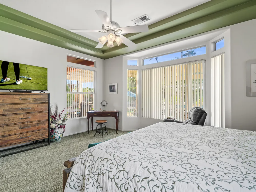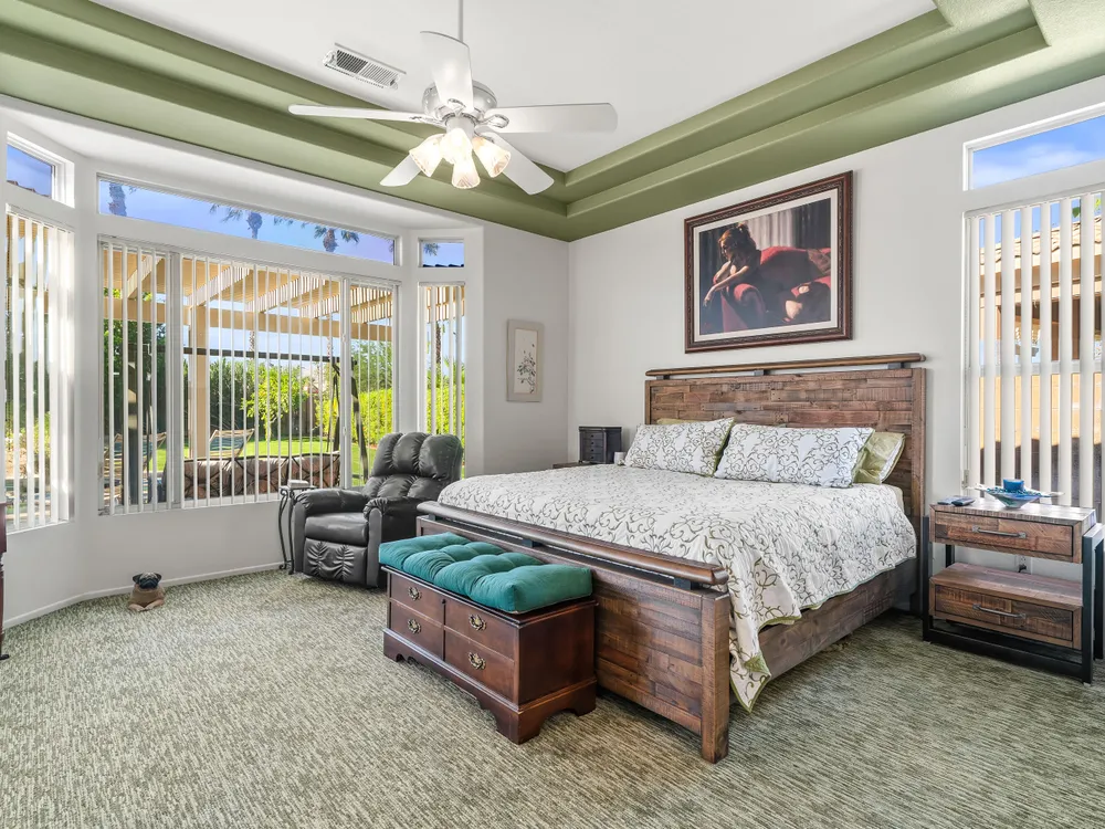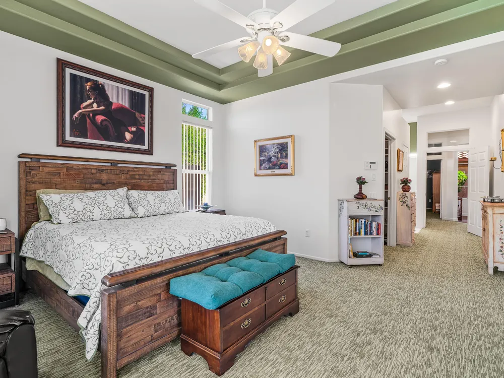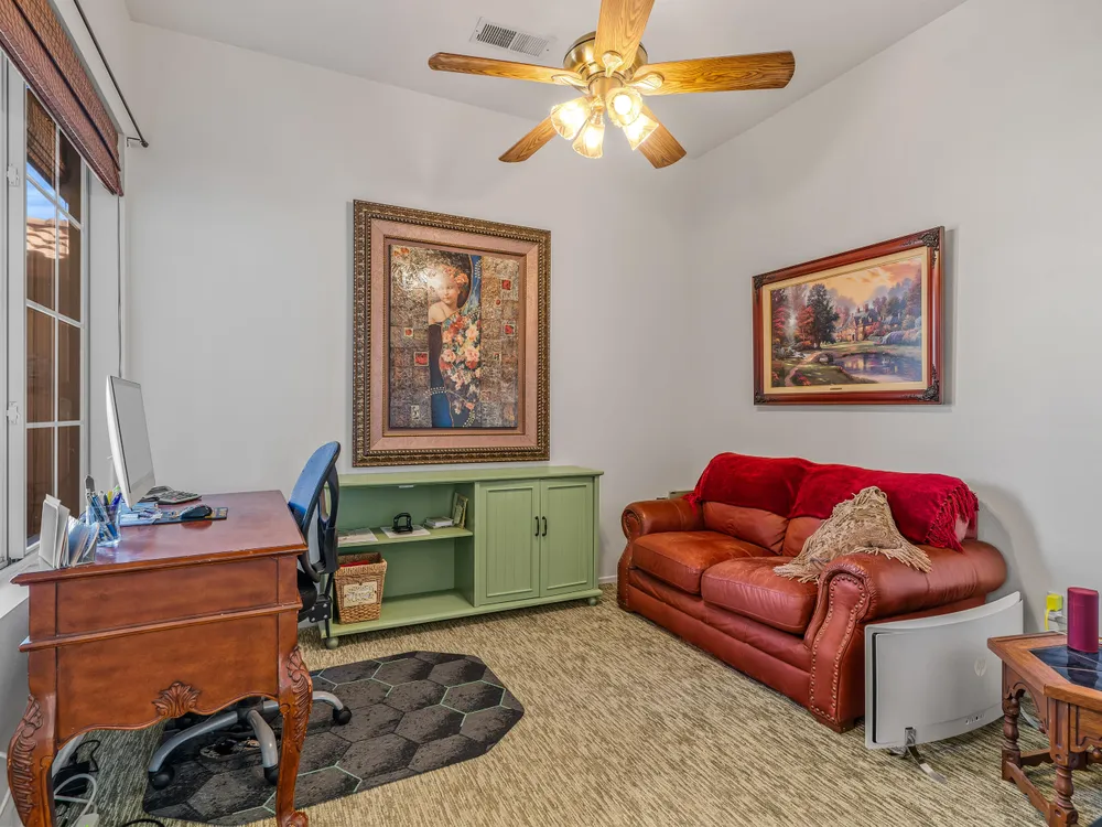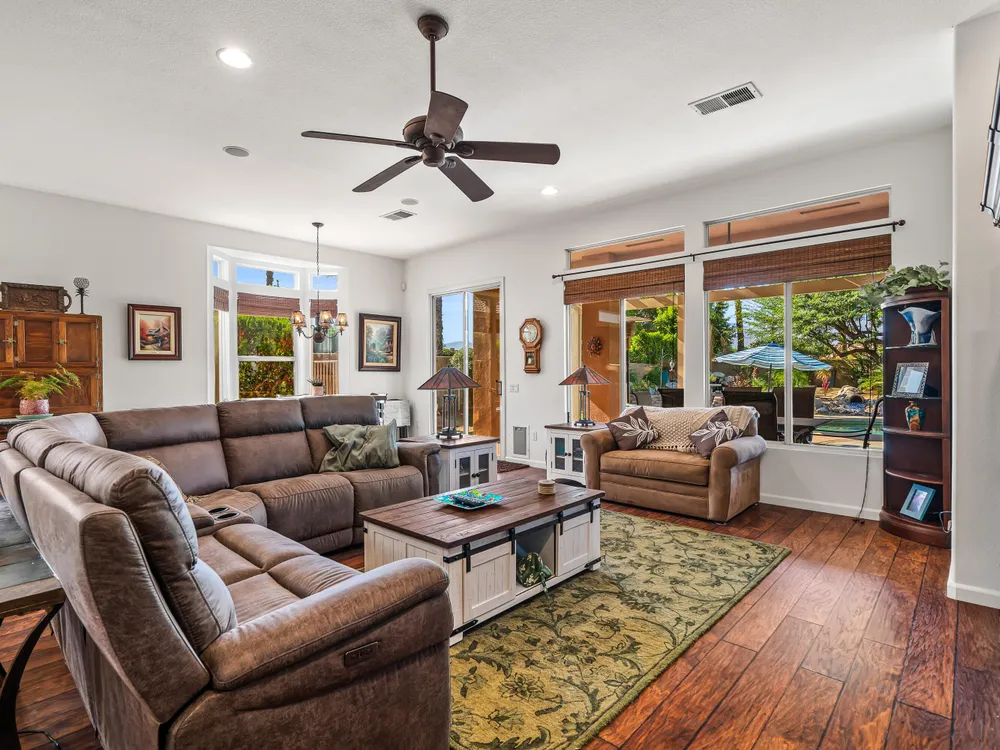 OWNER MAY CONSIDER LEASE. Stunning home in beautiful adult community......rare, large yard with tropical pool oasis. Welcome to your dream home in a highly sought-after golf community! This beautifully updated, open floor plan residence offers the perfect blend of luxury, comfort, and outdoor living. Step into a tropical backyard paradise featuring a BBQ, sparkling pool, waterfall, fountain, lush landscaping, and multiple seating areas ideal for relaxing or entertaining guests. The sunset and mountain views are wonderful and the house is situated on the front of the lot to enhance the view and reduce street noise. Inside, enjoy a spacious layout with an optional office/Den, newer appliances and an indoor laundry room for added convenience. The large primary suite is a true sanctuary, featuring a custom walk-in closet and plenty of space to unwind after a long day. Included in your dues are security, cable TV, internet and amenities! The community offers full security, a dining clubhouse, banquet room, meeting rooms, card rooms, library, billiard room, 18-hole golf course, pro shop, tennis, pickle ball, fitness center, indoor lap pool and outdoor pool and spa with views of the golf course and south facing mountains. The community also has many social groups to choose from! (Owner is licensed Realtor)