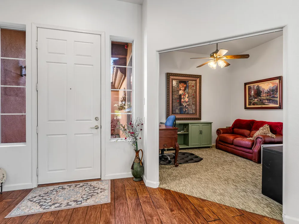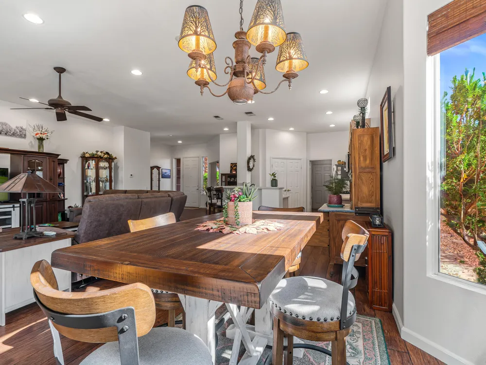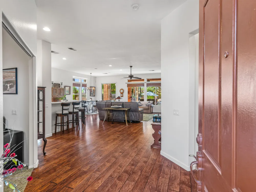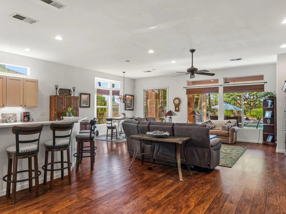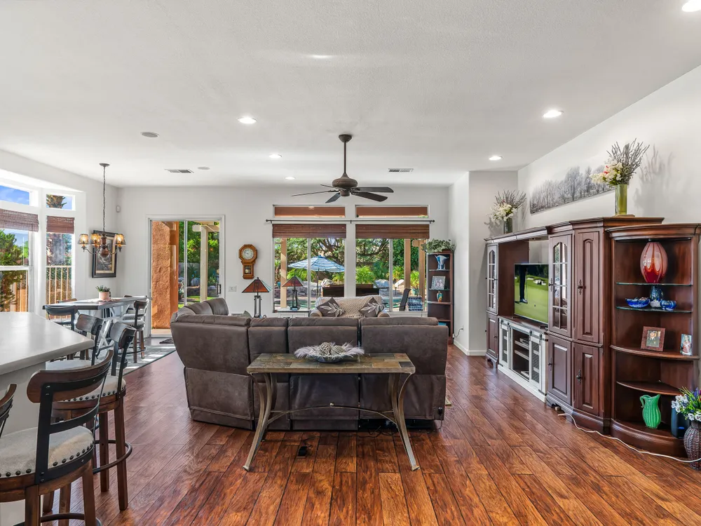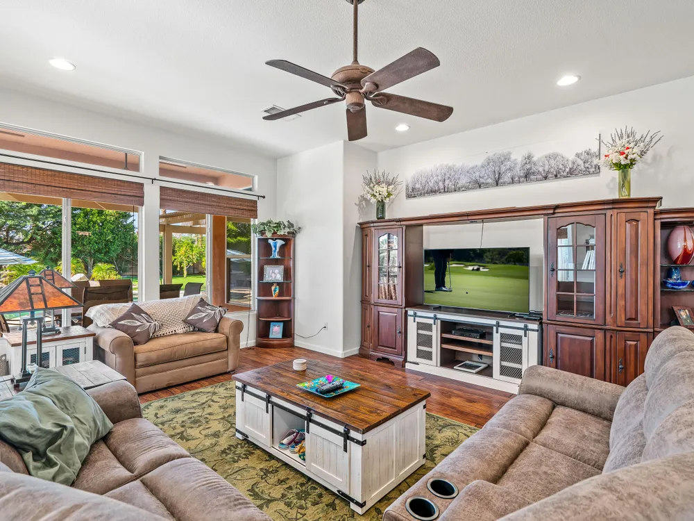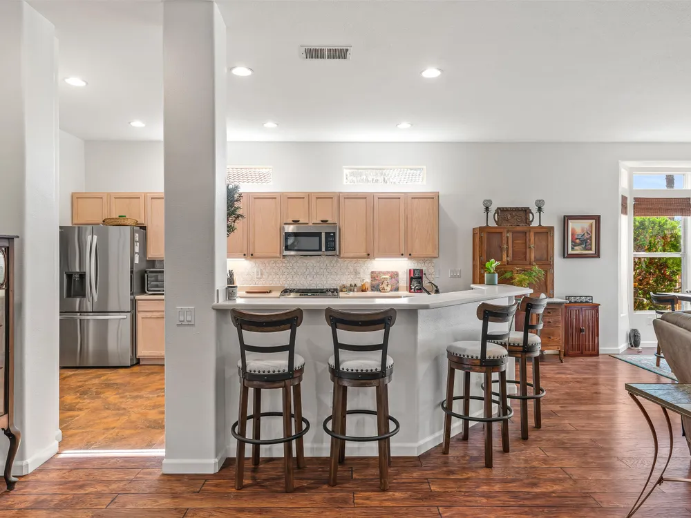 OWNER MAY CONSIDER LEASE. Stunning home in beautiful adult community......rare, large yard with tropical pool oasis. Welcome to your dream home in a highly sought-after golf community! This beautifully updated, open floor plan residence offers the perfect blend of luxury, comfort, and outdoor living. Step into a tropical backyard paradise featuring a BBQ, sparkling pool, waterfall, fountain, lush landscaping, and multiple seating areas ideal for relaxing or entertaining guests. The sunset and mountain views are wonderful and the house is situated on the front of the lot to enhance the view and reduce street noise. Inside, enjoy a spacious layout with an optional office/Den, newer appliances and an indoor laundry room for added convenience. The large primary suite is a true sanctuary, featuring a custom walk-in closet and plenty of space to unwind after a long day. Included in your dues are security, cable TV, internet and amenities! The community offers full security, a dining clubhouse, banquet room, meeting rooms, card rooms, library, billiard room, 18-hole golf course, pro shop, tennis, pickle ball, fitness center, indoor lap pool and outdoor pool and spa with views of the golf course and south facing mountains. The community also has many social groups to choose from! (Owner is licensed Realtor)