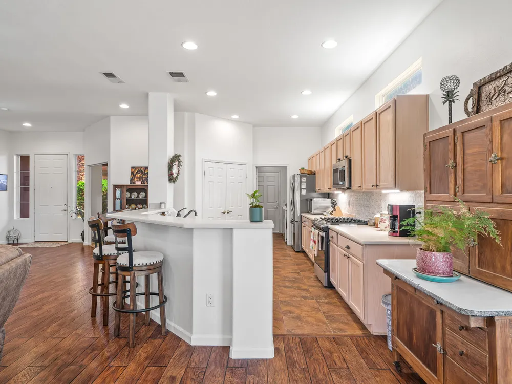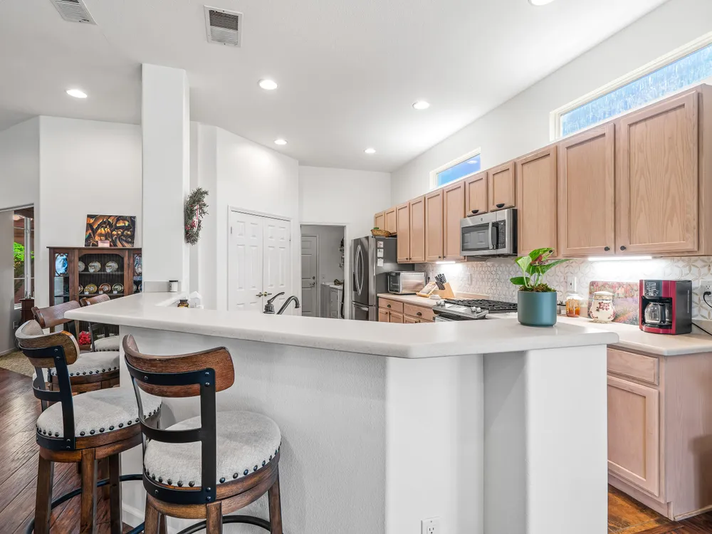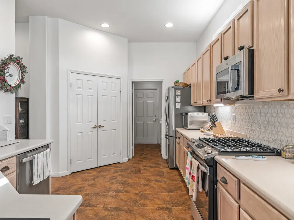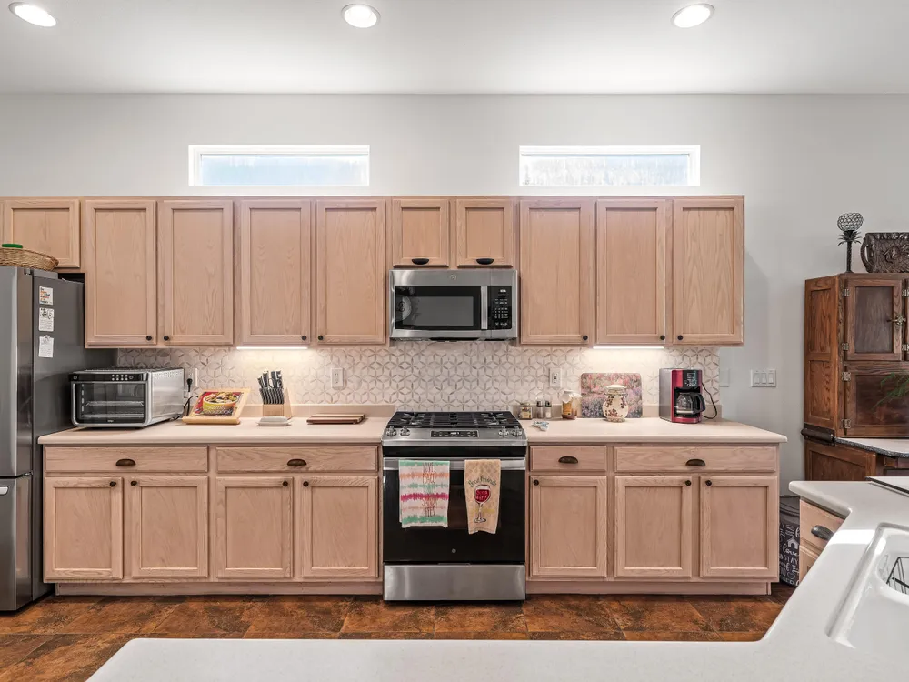 - Dishwasher, Disposal, Dryer, Gas Oven, Gas Range, Ice Maker, Microwave Oven, Refrigerator, Washer, Water Line to Refrigerator