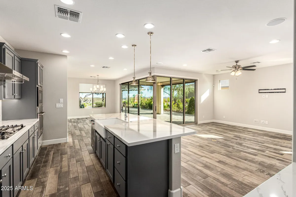 HUGE PRICE REDUCTION! *Unbelievable views, You must see this home* Not too many views like this one! 2 Bdrm + Den, 2 Bath Highly Upgraded (Shea Nice floorplan) in Wickenburg Ranch. Tile thru-out. Gorgeous upgraded Kitchen w/gas Cooktop, Granite countertop, SS appliances, upgraded cabinets, walk in Pantry. Laundry w/smart space (built in office desks). Beautiful hallway bath w/granite countertop. 2 Herb Gardens. Huge Pergola, Automatic Patio Sun Shades on patio, Patio w/multi corner Slider, Pavers, Gorgeous Fountain in the incredible backyard. Sunsets are amazing. Split floorplan. Primary ensuite w/Large walk-in Shower, Dbl Sinks, Walk-in Closet. Kitchen is open to the Greatroom & separate Dining Rm. You have to see this home to believe it. Home was painted 2 yrs ago w/20 yr Paint. This property has over $184,000 + in upgrades. Upgrades include, applicances, Master shower glass & chrome hardware, Granite countertop in both bathrooms, Ceramic tile shower surround in the Primary Bath and the 2nd Bathroom, Upgraded Grey Maple cabinets. Kitchen roll-outs, recycle center, cutlery divider w/tray divider. Under-mount soft-close drawer guides & covetail Drawers thru out home. Upgraded kitchen w/built-in appliance package. Engineered stone at kitchen countertop. Touchscreen keypad deadbolt at front door. Fiberglass service door at garage. Corner multi slide door at Great room and Dining Room. Prewire for speakers and a subwoofer. Apron front white kitchen sink. Fiberglass sink in laundry room. Washer/dryer and refrigerator convey. Upgraded Granite Primary bath countertop. Glass cabinet door in kitchen. Upgraded baseboards. Upgraded sinks at both bathrooms. AND DON'T FORGET THE INCREDIBLE VIEW LOT.....THAT WAS A HUGE UPGRADE!