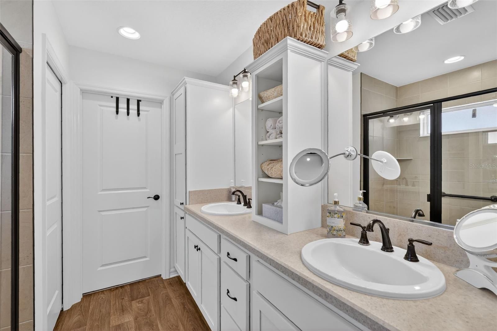 Step into this Beautiful 3/2 Block & Stucco Designer Home in the sought after Village of DeLuna in the Southern Oaks section of The Villages. This Basswood Model offers the must have Three Bedroom Plan and Open Concept design. Open the door to a large Foyer complete with double entryway Closet! As you step into the home notice the natural light filled Living and Dining area accented by Luxurious Vinyl Flooring. Overlooking this area, separated by a large Breakfast bar and Island Sink, is your stunning Kitchen featuring Modern Cabinetry with soft close drawers and doors, as well as the pull out shelves, making life easier in the Kitchen! Did I mention the extra large WALK IN Pantry? All Appliances are Stainless Steel, including the 5-burner Gas Stove. The Primary Bedroom En-Suite, is your go to room offering you total comfort and peace. Here you'll see a Tray Ceiling with overhead Fan offering a cool breeze restful night. There is a large Walk-In Closet, Double Sink Vanity, extra Center Cabinet for the "His & Hers" Toiletries, as well as the Inviting Tiled Walk-In Shower with Bench, PLUS a separate Toilet Closet. The Two additional Guest Bedrooms share a Guest Bath. Of course, both bedrooms have ample closet space and Ceiling Fans. The shared Bath has a lovely Tiled Shower/Tub Combo for quick rinses or a soaking Bubble Bath after a full day of Village Activities! So many to choose from........Other stand out features of this Designer Home are your Interior Laundry Room allowing full space in your Two Car Garage. The home also has Gutters and Down Spouts, Water Filtration System and Enhanced Front Landscaping for a Welcoming feel! The back of this home has a large 13.9 Ft. Screened Lanai, as well as a separate Poured Patio for Sunning & Grilling! Just RELAX and ENJOY! This home is conveniently located by the new DeLuna Recreation Center, Pool & Postal Station. Hop into your must have Golf Cart and Cruise to the Fenney Grill for Lunch! This short Golf Cart ride showcases the Walking Trails, Golf Courses, Water features and abundant outdoor Activities. Can you Envision this Active Villages Lifestyle? Then come take a look at the Newest Area of The Villages! Stop by our Town Squares to Shop, Eat & Drink, or just to listen to the NIGHTLY Live Music & Entertainment. You'll be glad you did! NEW IMPROVED PRICE!