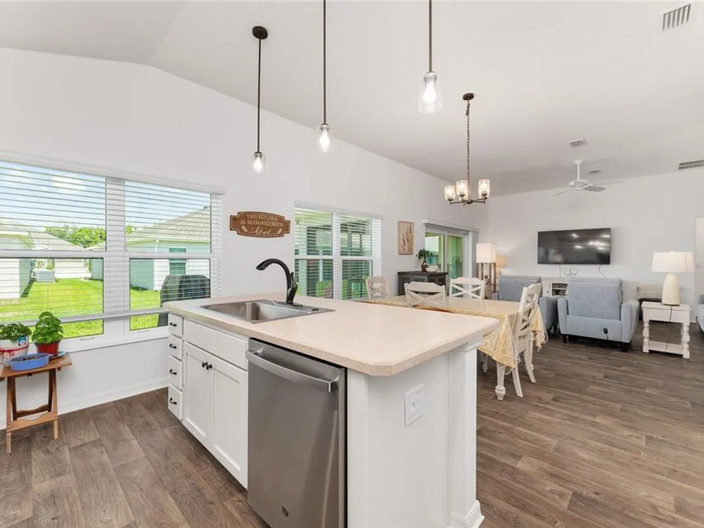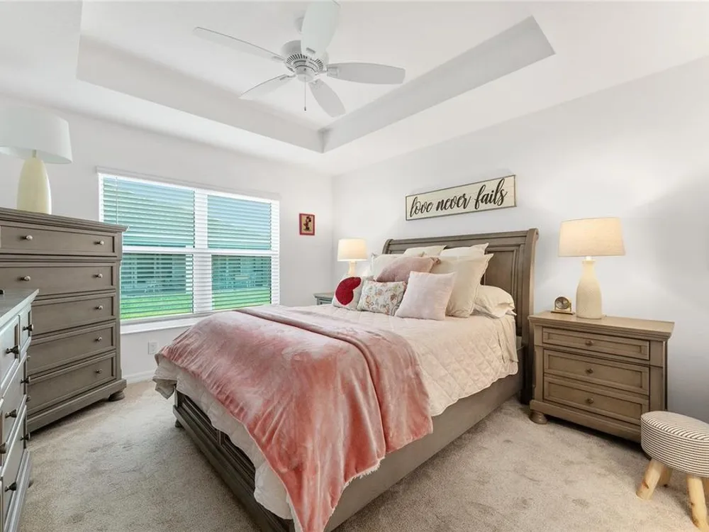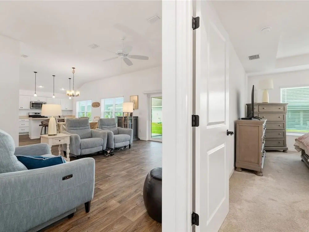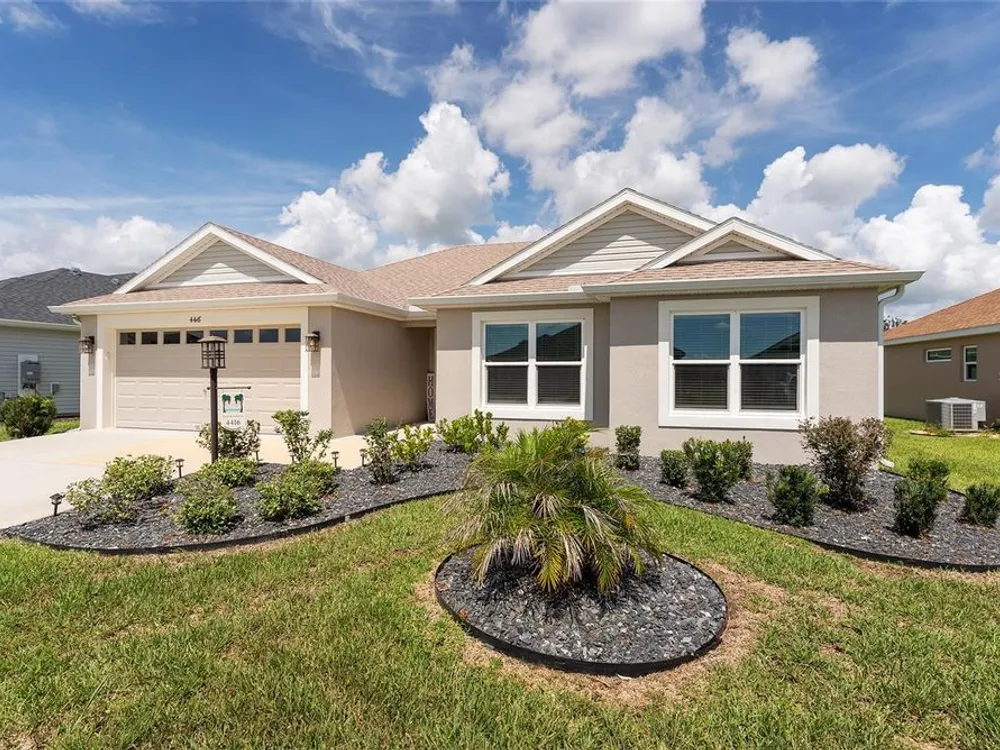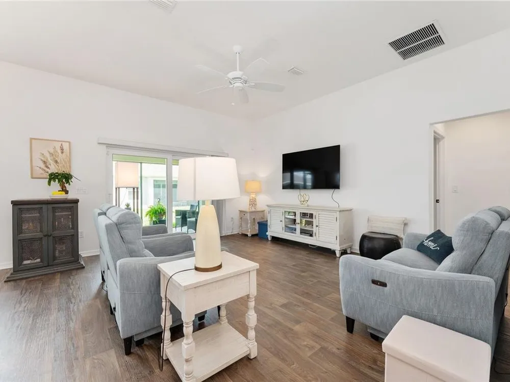 New and Improved Price!!! Welcome to this beautiful 3/2 Basswood Designer Home, where comfort and style meet in a thoughtfully designed layout. Located in a sought-after Village of DeLuna, this home offers charming curb appeal with a landscaped front yard and a covered front entry. Step inside to an inviting open floor plan enhanced by luxury vinyl plank flooring in the main living areas, combining durability with modern design. The heart of the home is the spacious kitchen, featuring a large island, breakfast bar, stainless steel appliances, a 5-burner gas stove, and a walk-in pantry that offers ample storage for all your culinary needs. The master suite is a serene retreat with a tray ceiling, an expansive walk-in closet, and an ensuite bath complete with dual vanity, a private water closet, a window for natural light, and a walk-in shower with bench. Two additional guest bedrooms are generously sized and share a full guest bath with a tub/shower combo, providing comfort and privacy for family or visitors. Carpeted bedrooms ensure a cozy, quiet atmosphere, while ceiling fans throughout add comfort and energy efficiency. Enjoy Florida living year-round in the screened-in lanai, perfect for morning coffee or evening relaxation. This move-in ready home blends designer features with everyday functionality—don’t miss your opportunity to make it yours! The Del Luna Recreation Center and Postal Station is close by and you’ll be just 5 minutes to Finney Recreation Center, Trails and Golf Courses. Be sure to watch our video of this outstanding home. Call today to schedule your private showing and start living The Villages dream.