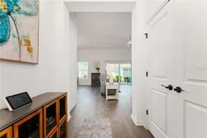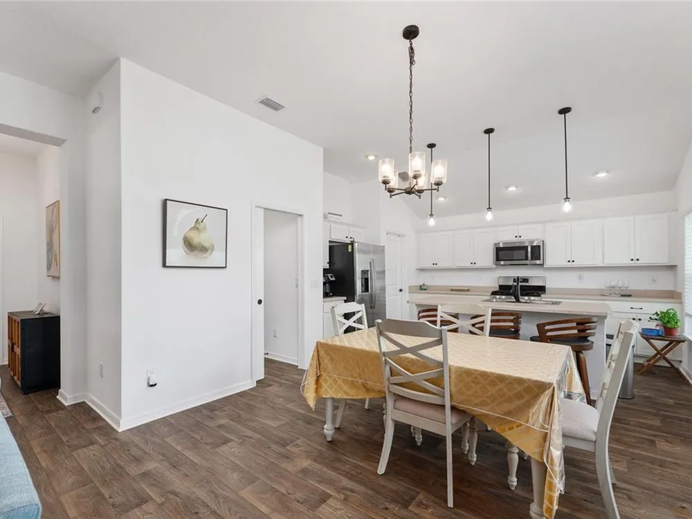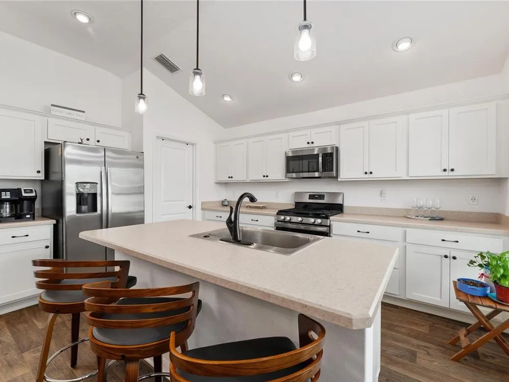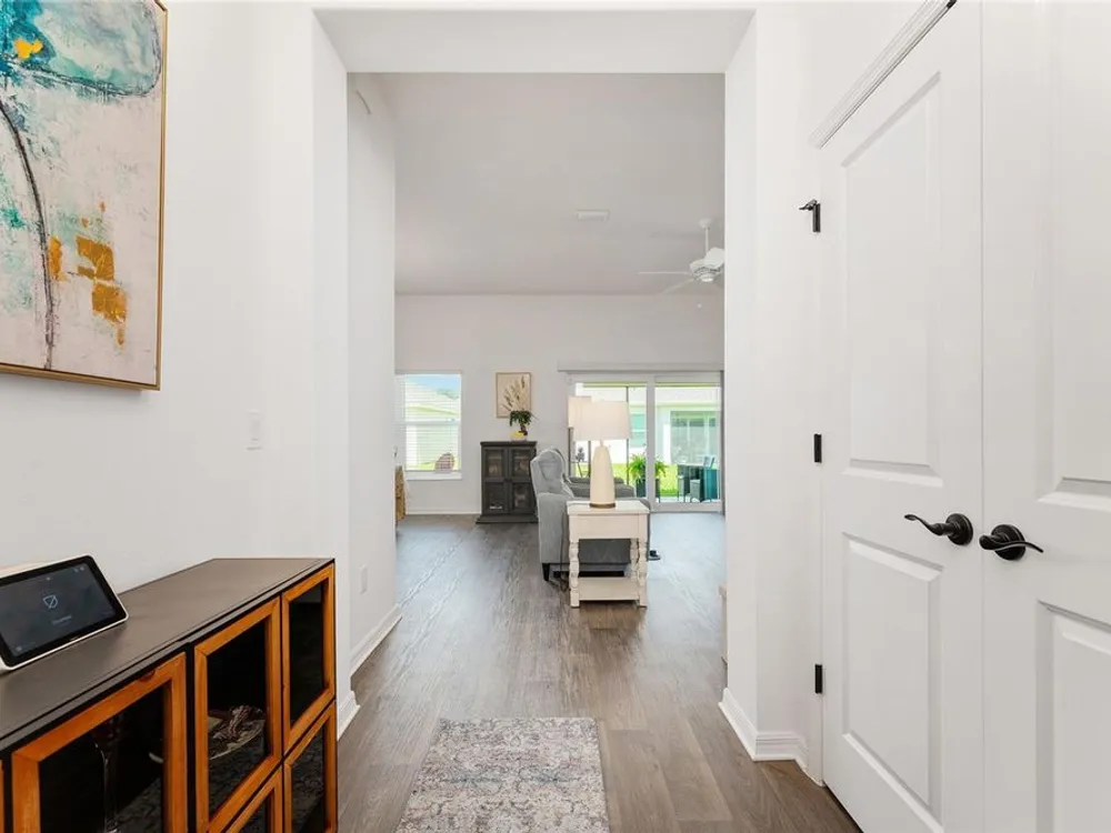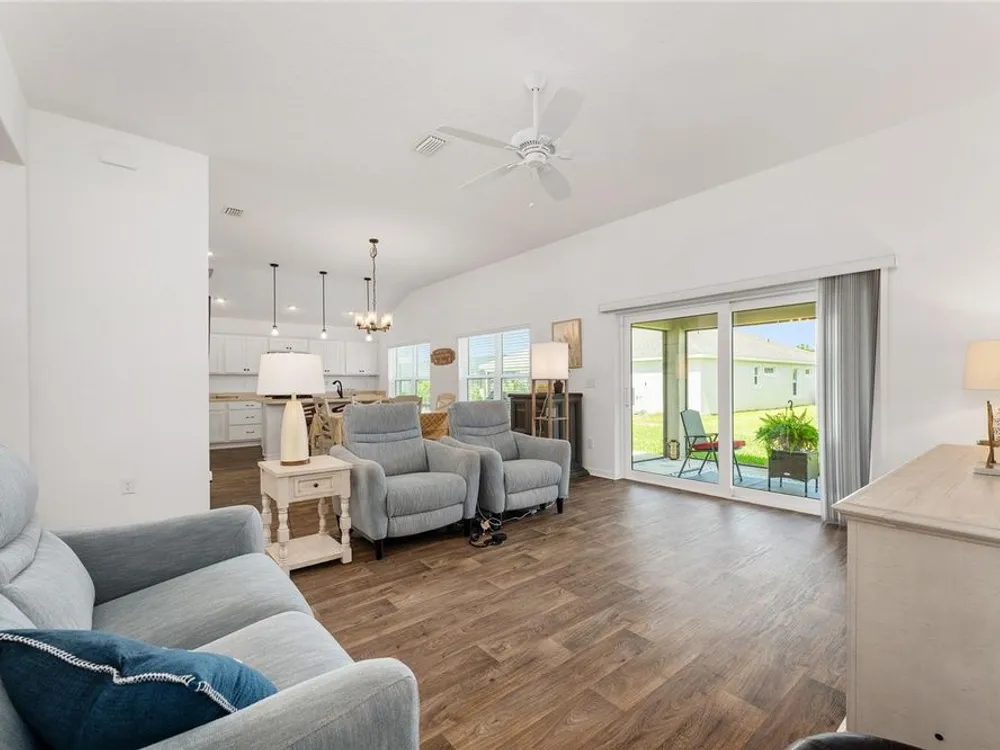 New and Improved Price!!! Welcome to this beautiful 3/2 Basswood Designer Home, where comfort and style meet in a thoughtfully designed layout. Located in a sought-after Village of DeLuna, this home offers charming curb appeal with a landscaped front yard and a covered front entry. Step inside to an inviting open floor plan enhanced by luxury vinyl plank flooring in the main living areas, combining durability with modern design. The heart of the home is the spacious kitchen, featuring a large island, breakfast bar, stainless steel appliances, a 5-burner gas stove, and a walk-in pantry that offers ample storage for all your culinary needs. The master suite is a serene retreat with a tray ceiling, an expansive walk-in closet, and an ensuite bath complete with dual vanity, a private water closet, a window for natural light, and a walk-in shower with bench. Two additional guest bedrooms are generously sized and share a full guest bath with a tub/shower combo, providing comfort and privacy for family or visitors. Carpeted bedrooms ensure a cozy, quiet atmosphere, while ceiling fans throughout add comfort and energy efficiency. Enjoy Florida living year-round in the screened-in lanai, perfect for morning coffee or evening relaxation. This move-in ready home blends designer features with everyday functionality—don’t miss your opportunity to make it yours! The Del Luna Recreation Center and Postal Station is close by and you’ll be just 5 minutes to Finney Recreation Center, Trails and Golf Courses. Be sure to watch our video of this outstanding home. Call today to schedule your private showing and start living The Villages dream.