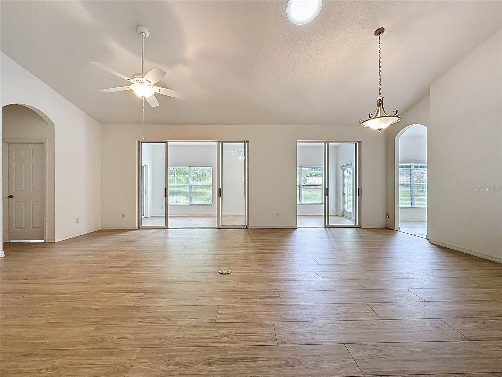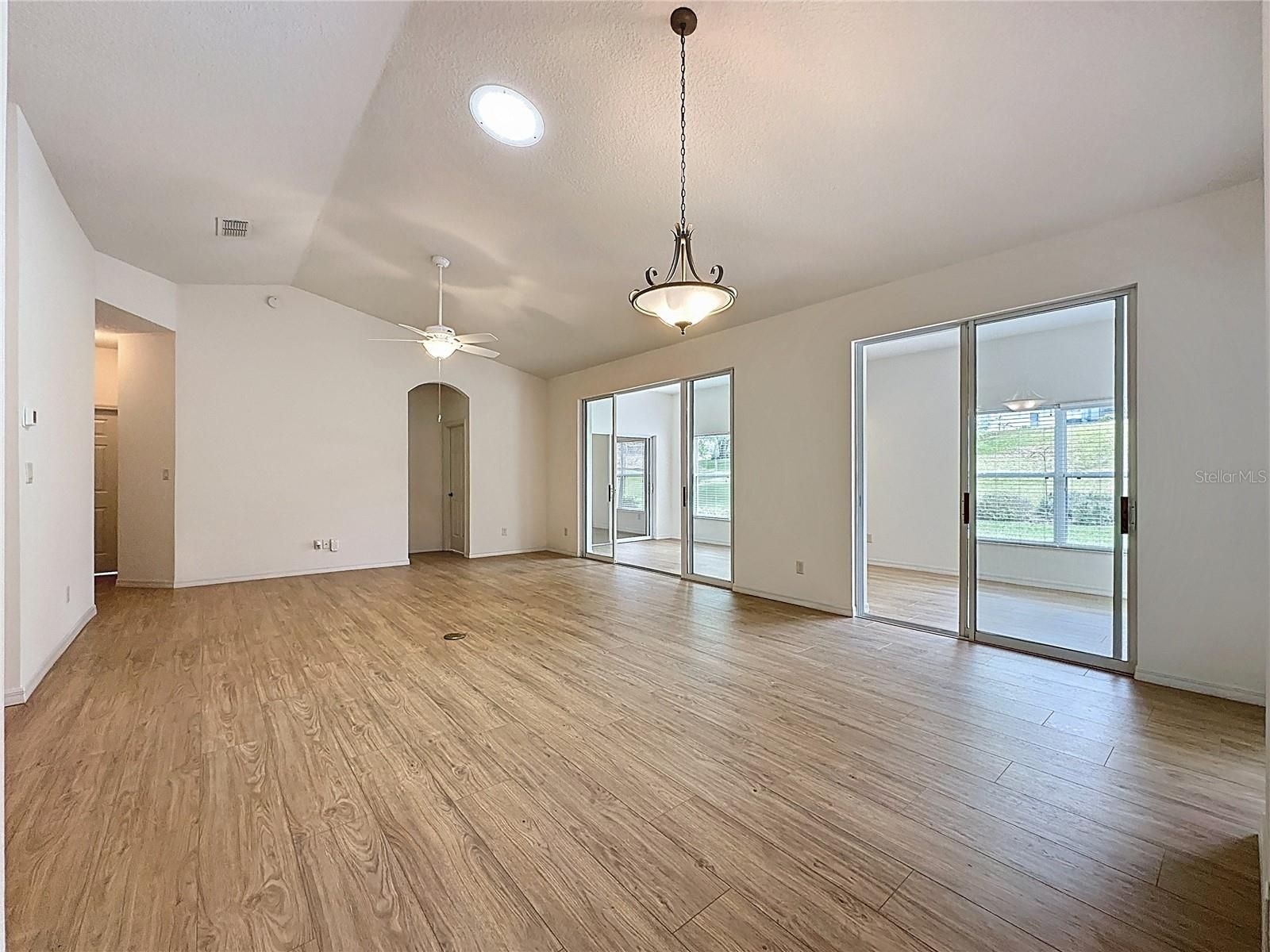 Under contract-accepting backup offers. One or more photo(s) has been virtually staged. Welcome to 4419 Nottoway Dr., a beautifully maintained home in the sought-after Plantation of Leesburg—a premier 55+ community offering resort-style living! This spacious home boasts vaulted ceilings and an airy, open floor plan, creating a bright and inviting atmosphere. Luxury vinyl floors flow throughout the main living areas, while ceramic tile enhances the wet areas for easy maintenance. The kitchen features brand-new stainless steel appliances, perfect for preparing meals to enjoy in the enclosed lanai, where you can relax and take in the peaceful surroundings. The large primary bedroom is a true retreat, complete with a walk-in closet and plenty of natural light. Major updates include a 2018 roof and a brand-new A/C in 2024, ensuring worry-free comfort for years to come. Step outside to your beautiful backyard, a tranquil space for morning coffee or evening gatherings. And when you're ready to explore, the Plantation of Leesburg offers two championship 18-hole golf courses, a driving range, three clubhouses with pools and spas, fitness centers, tennis, pickleball, bocci ball, softball and a vibrant calendar of activities to keep you engaged and entertained. There is also a restaurant and pro shop on premises. Don't miss this incredible opportunity to live the lifestyle you’ve been dreaming of! Schedule your private showing today!