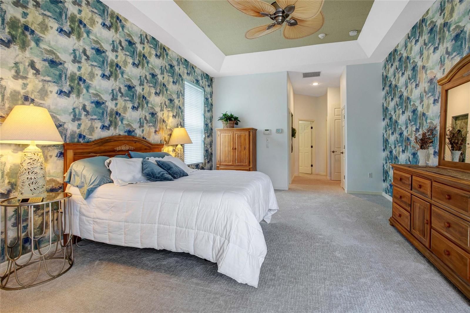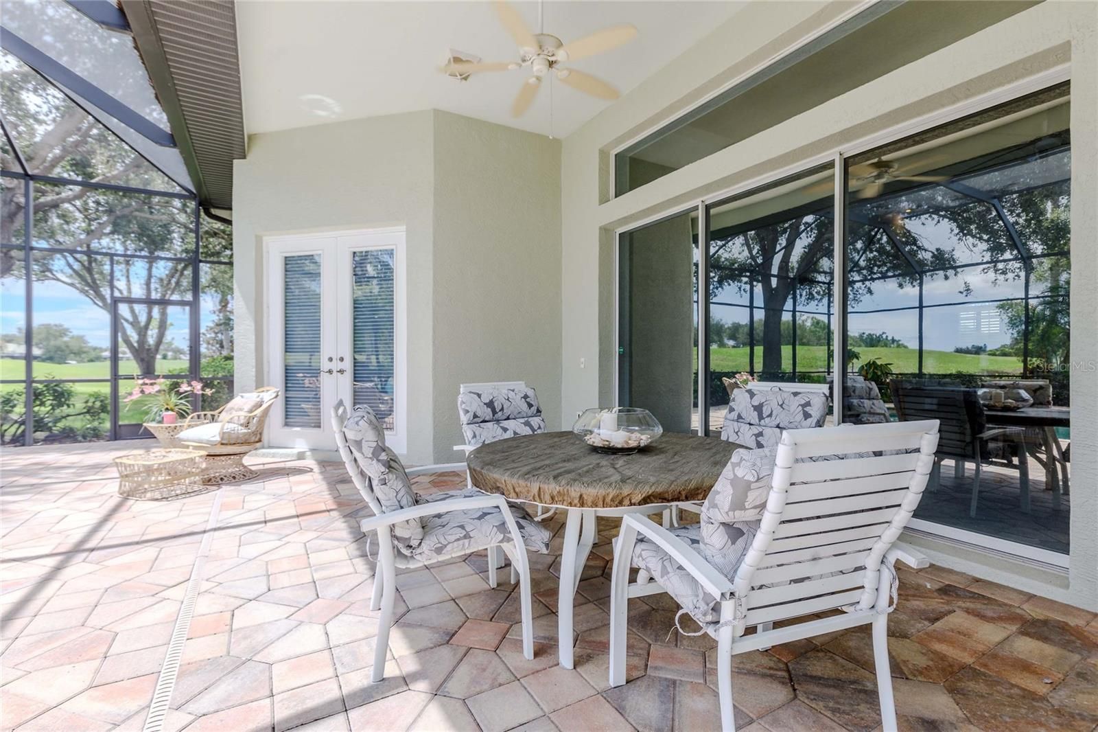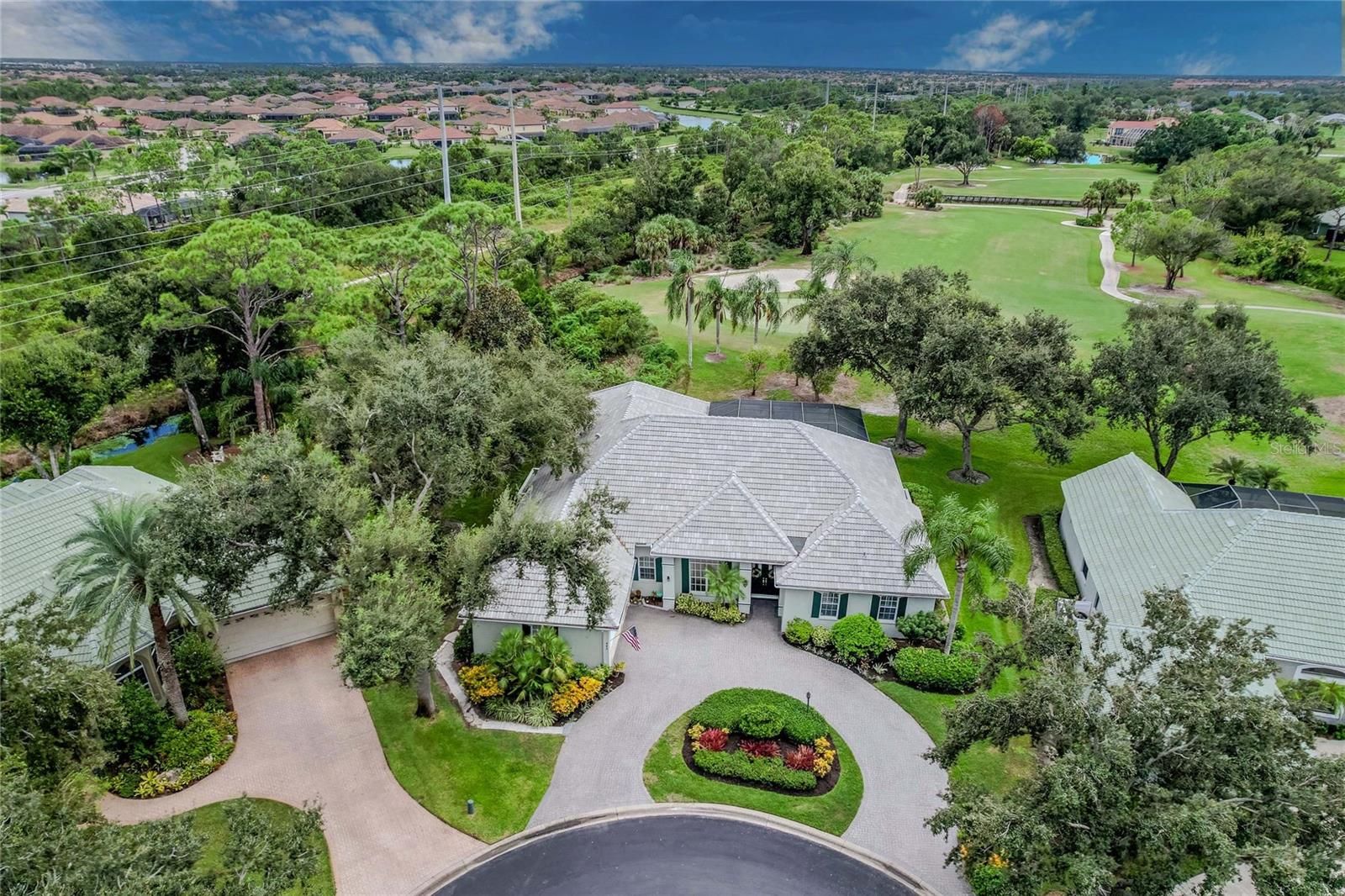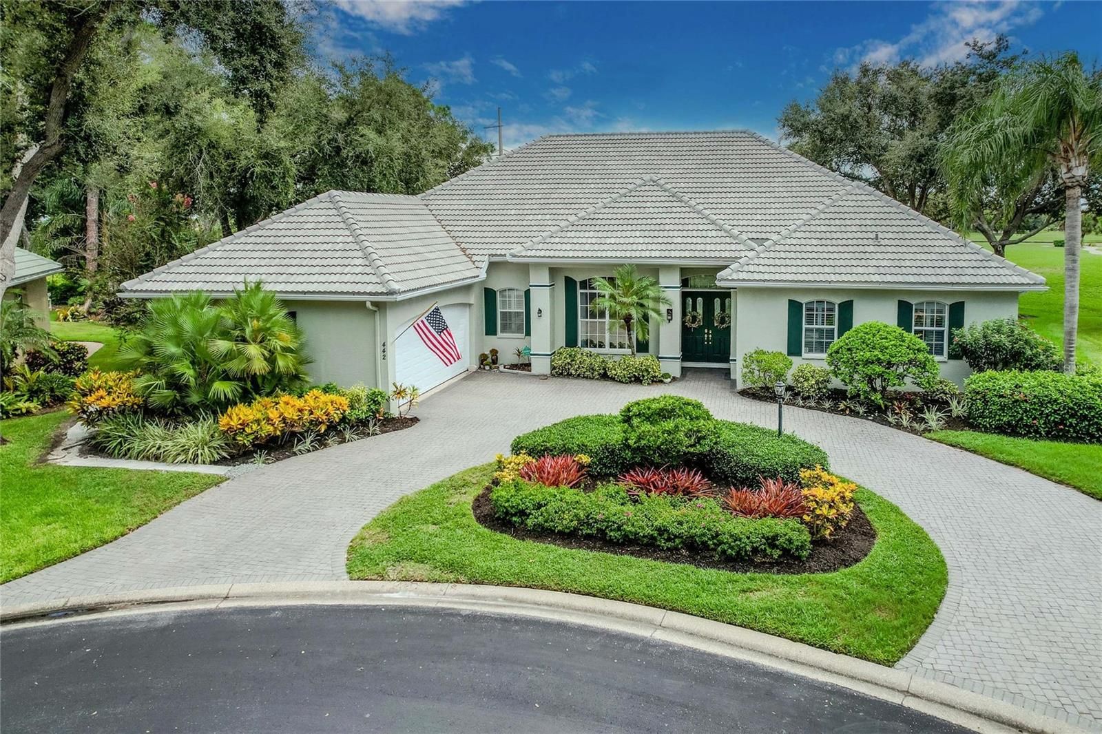 Elegant Florida Living in a Private Gated Golf Community. Nestled at the end of a peaceful cul-de-sac in The Reserve, one of Venice’s most beautiful sought after gated golf course communities. This beautifully maintained home offers the perfect balance of refined living, modern upgrades, and effortless comfort. The property provides rare privacy, elevated design, and peace of mind — ideal for those who expect more from their home. From the moment you arrive, you're greeted by a custom paver circular driveway—reset, stained, and sealed in 2022 for a polished first impression. In 2024, the community roads were fully redone and sealed, and in 2021, a hurricane-rated garage door was installed to meet today’s highest standards of safety and design. New tile roof installed January of 2025 in neutral gray shade to match the paver brick driveway. This elevated lot was thoughtfully built up at the time of construction for superior flood protection and drainage, while a well-fed irrigation system keeps the lush landscape vibrant. The left corner of the lot was thoughtfully planted with native Florida vegetation, enhancing both privacy and ecological integrity. It provides a large side yard full of shade, beauty and privacy. It’s rare to find a home with both a golf course view and a large private yard. Inside, every detail was thought out with both quality and intention. High tray ceilings throughout, coffered ceiling in the den, crown molding, several walk in closets, and built-in features and storage will show that this home is truly one of a kind. Custom built-in window seating in the kitchen offers convenient places to tuck away pool towels or holiday decor. Built in entertainment center in family room features an 80-inch tv, magnetic panels that lift away to hide wires and connected devices, as well as storage and display options. There is an additional storage closet on lanai as well as three closets in garage to keep all of your work and play items organized and away when not in use. The primary suite bathroom was fully redesigned in late 2021, featuring a custom built double vanity with quartz countertops, elegant basin sinks, fountain-style faucets, and a built-in seated vanity area—perfect for a tranquil start to your day. Wide plank wood-style tile flooring (2020) flows through the kitchen, great room, and laundry, adding warmth and cohesion to the living spaces. The den features brand-new tile 2025, while the primary bedroom carpet was just updated in 2025 as well. Additional features include a Moen smart water detection system, newer water heater, large A/C unit (5 years old), and all appliances replaced within the past 5 years, ensuring efficient performance and contemporary style. The pool was recently re-screened as well and rust proof bolts added to ensure integrity of the structure. The Plantation offers easy access to golf, tennis, pickle-ball or social activities. Location is convenient to beaches, restaurants, and all Venice has to offer. Homes like this—with a private cul-de-sac lot, golf course views, spacious yard, and original ownership spanning 23 years—rarely come to market. Every detail has been carefully curated, offering move-in-ready ease and enduring quality in one of Florida’s most desirable communities. Don’t miss your chance to experience elegant, effortless Florida living at its finest.