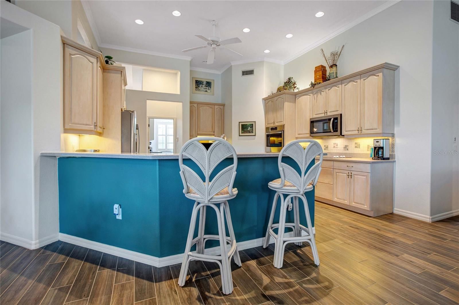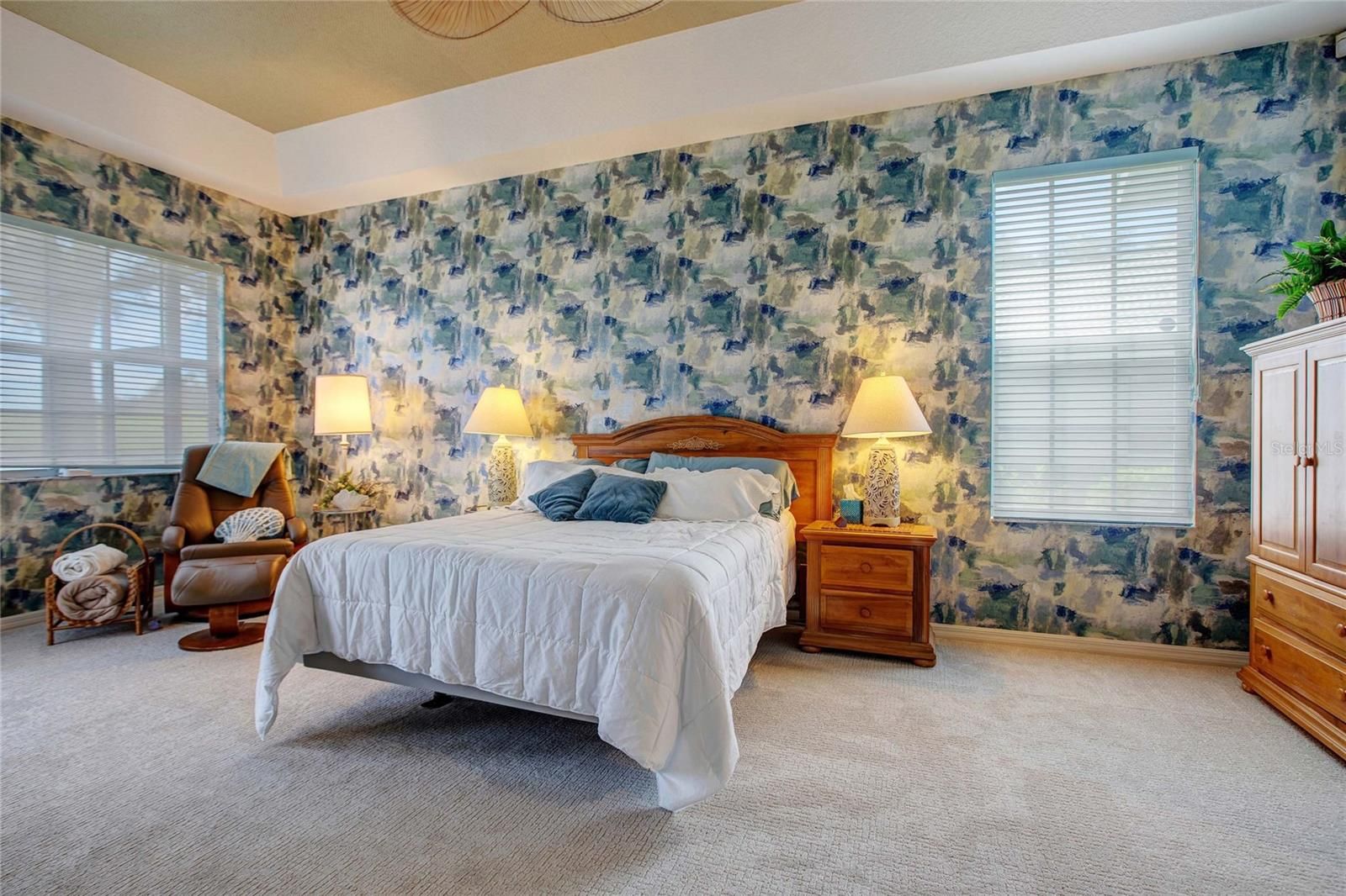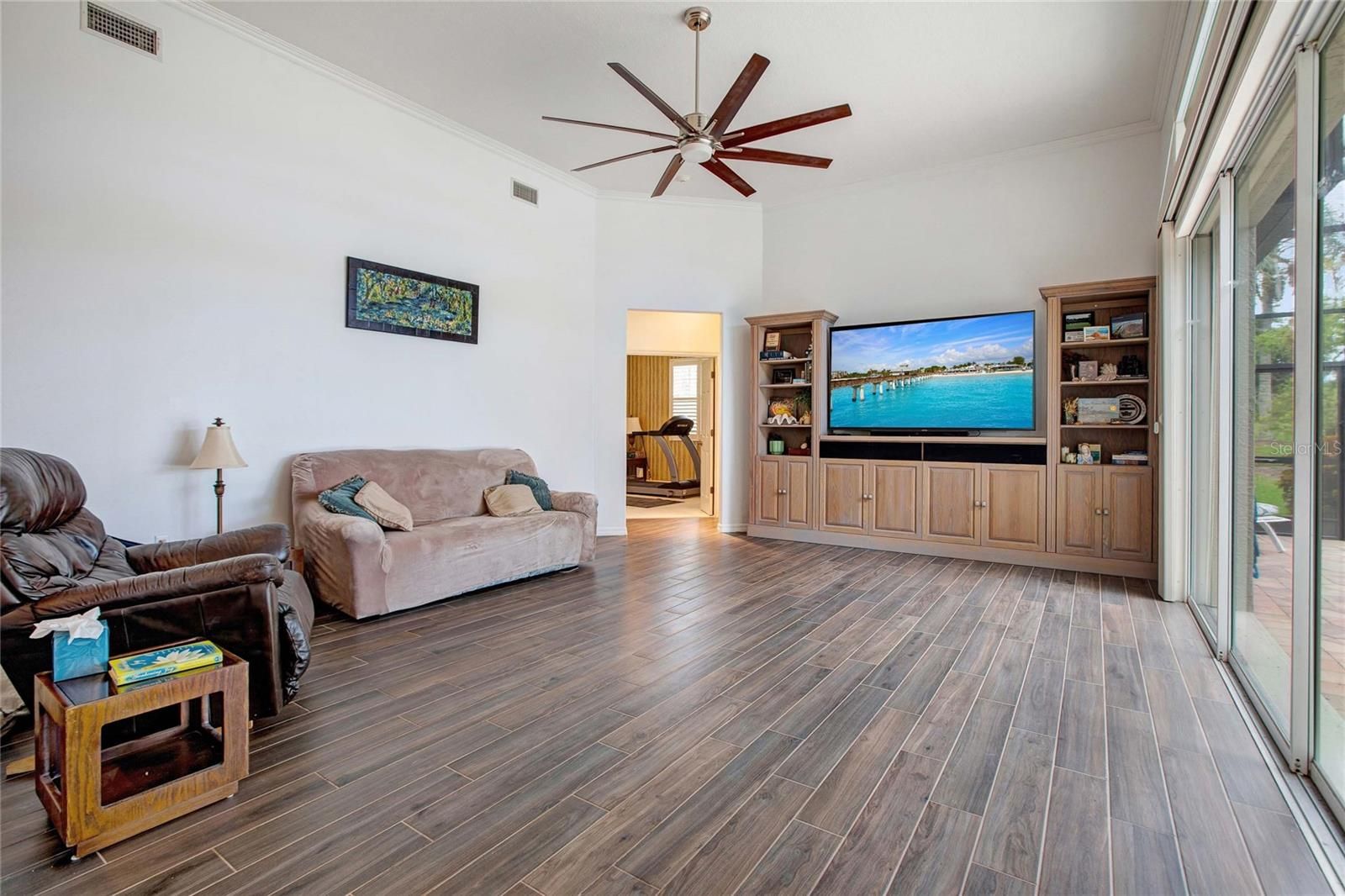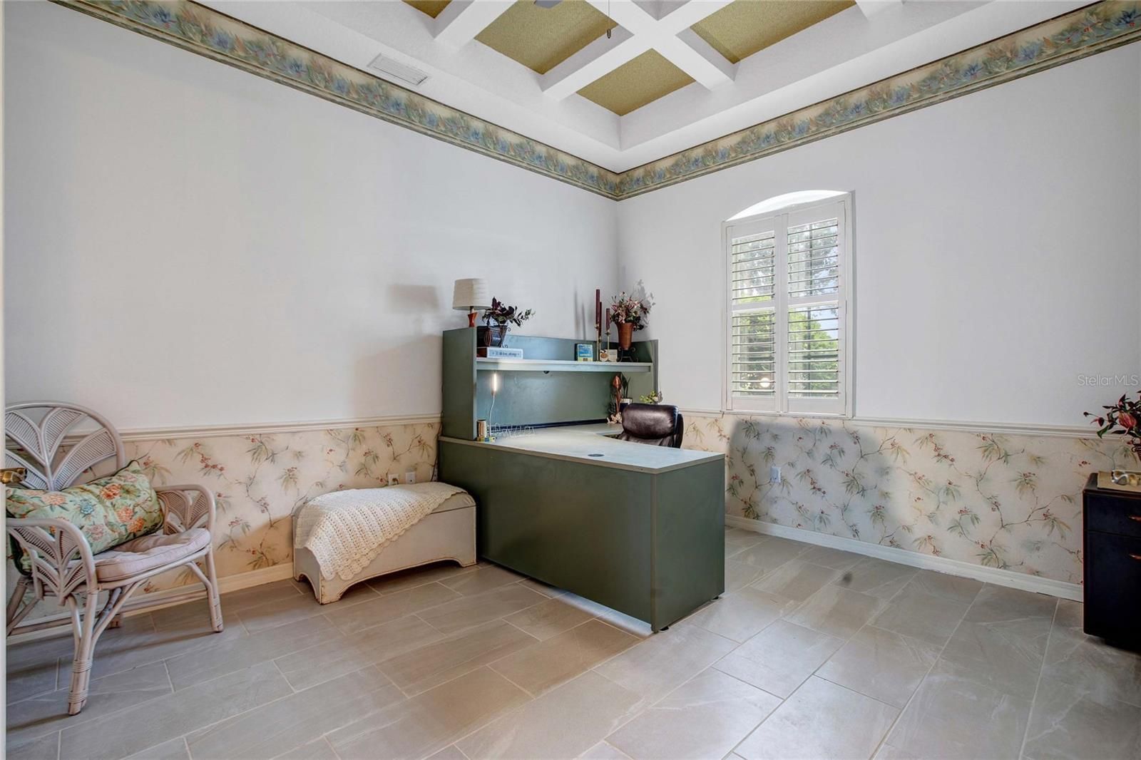 Elegant Florida Living in a Private Gated Golf Community. Nestled at the end of a peaceful cul-de-sac in The Reserve, one of Venice’s most beautiful sought after gated golf course communities. This beautifully maintained home offers the perfect balance of refined living, modern upgrades, and effortless comfort. The property provides rare privacy, elevated design, and peace of mind — ideal for those who expect more from their home. From the moment you arrive, you're greeted by a custom paver circular driveway—reset, stained, and sealed in 2022 for a polished first impression. In 2024, the community roads were fully redone and sealed, and in 2021, a hurricane-rated garage door was installed to meet today’s highest standards of safety and design. New tile roof installed January of 2025 in neutral gray shade to match the paver brick driveway. This elevated lot was thoughtfully built up at the time of construction for superior flood protection and drainage, while a well-fed irrigation system keeps the lush landscape vibrant. The left corner of the lot was thoughtfully planted with native Florida vegetation, enhancing both privacy and ecological integrity. It provides a large side yard full of shade, beauty and privacy. It’s rare to find a home with both a golf course view and a large private yard. Inside, every detail was thought out with both quality and intention. High tray ceilings throughout, coffered ceiling in the den, crown molding, several walk in closets, and built-in features and storage will show that this home is truly one of a kind. Custom built-in window seating in the kitchen offers convenient places to tuck away pool towels or holiday decor. Built in entertainment center in family room features an 80-inch tv, magnetic panels that lift away to hide wires and connected devices, as well as storage and display options. There is an additional storage closet on lanai as well as three closets in garage to keep all of your work and play items organized and away when not in use. The primary suite bathroom was fully redesigned in late 2021, featuring a custom built double vanity with quartz countertops, elegant basin sinks, fountain-style faucets, and a built-in seated vanity area—perfect for a tranquil start to your day. Wide plank wood-style tile flooring (2020) flows through the kitchen, great room, and laundry, adding warmth and cohesion to the living spaces. The den features brand-new tile 2025, while the primary bedroom carpet was just updated in 2025 as well. Additional features include a Moen smart water detection system, newer water heater, large A/C unit (5 years old), and all appliances replaced within the past 5 years, ensuring efficient performance and contemporary style. The pool was recently re-screened as well and rust proof bolts added to ensure integrity of the structure. The Plantation offers easy access to golf, tennis, pickle-ball or social activities. Location is convenient to beaches, restaurants, and all Venice has to offer. Homes like this—with a private cul-de-sac lot, golf course views, spacious yard, and original ownership spanning 23 years—rarely come to market. Every detail has been carefully curated, offering move-in-ready ease and enduring quality in one of Florida’s most desirable communities. Don’t miss your chance to experience elegant, effortless Florida living at its finest.