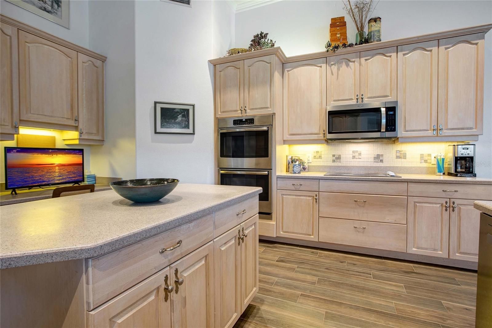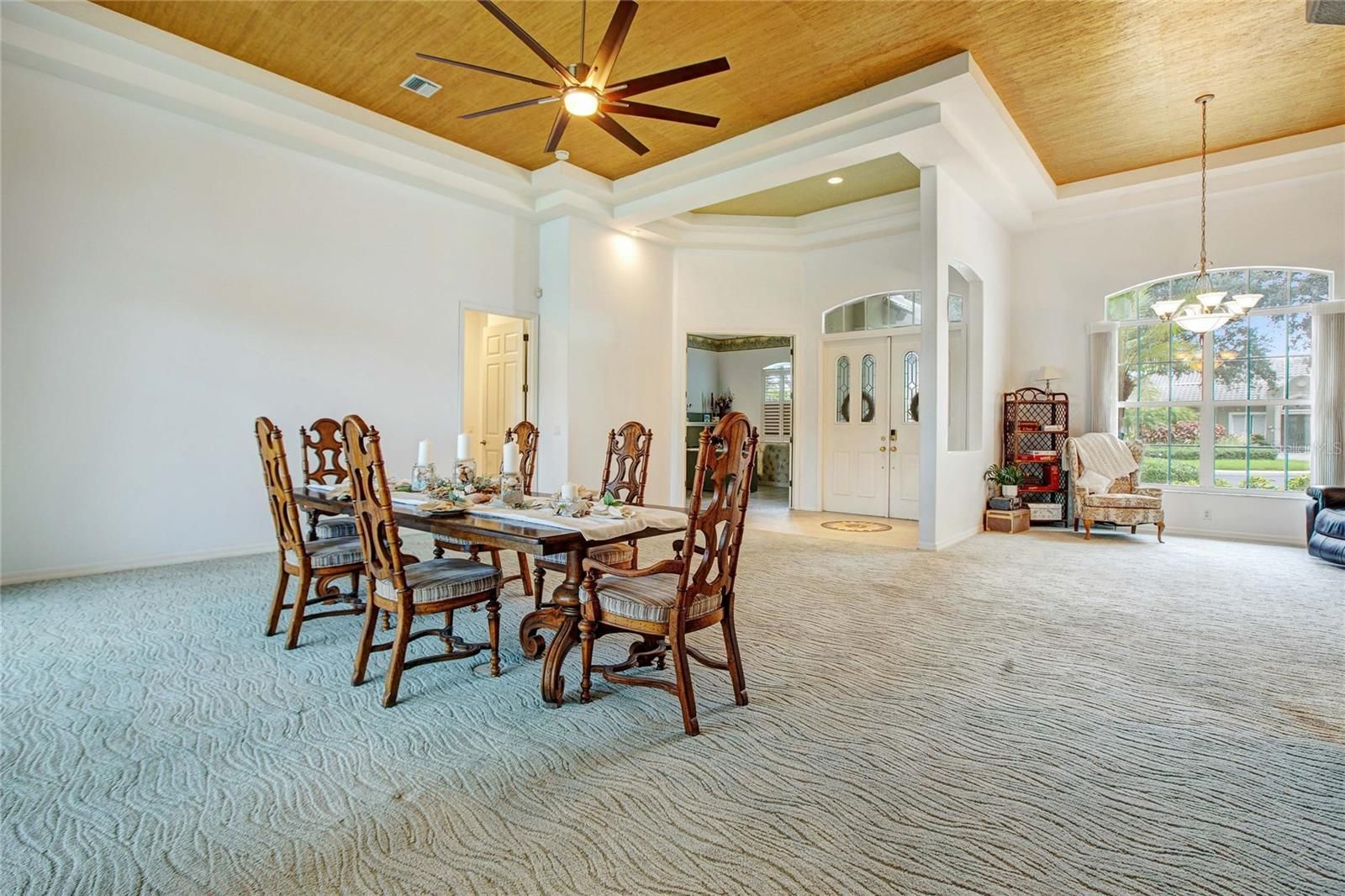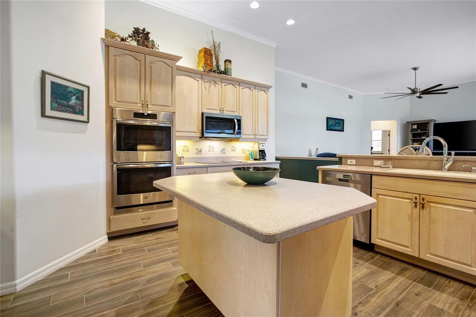 - Accessibility Features, Built-in Features, Cathedral Ceiling(s), Ceiling Fan(s), Chair Rail, Coffered Ceiling(s), Crown Molding, Eat-in Kitchen, High Ceilings, Kitchen/Family Room Combo, Living/Dining Room, Open Floorplan, Main Level Primary, Solid Surface Counters, Solid-Wood Cabinets, Split Bedrooms, Thermostat, Walk-In Closet(s), Window Treatments
