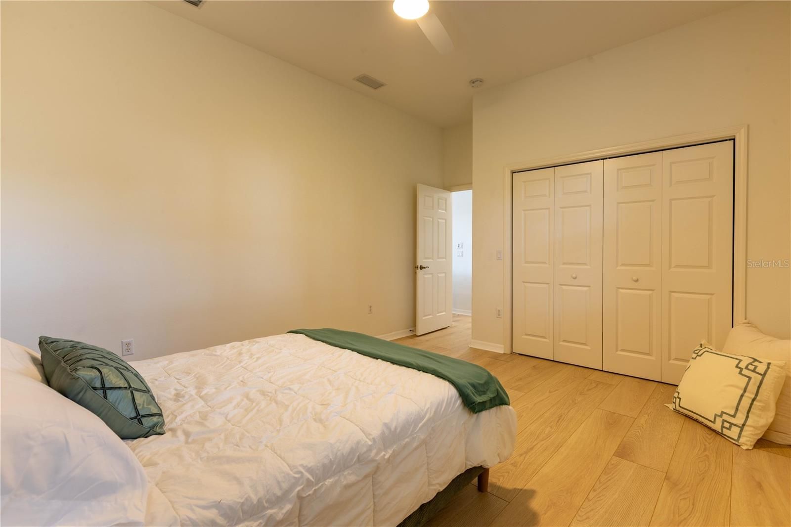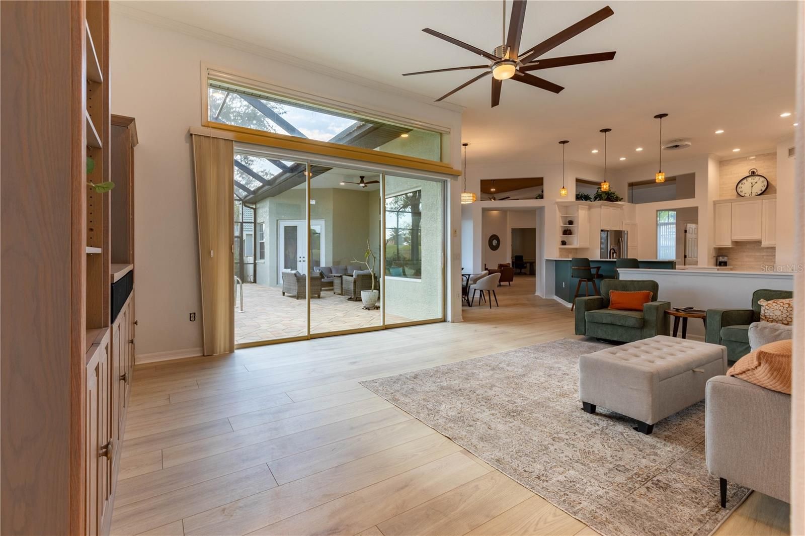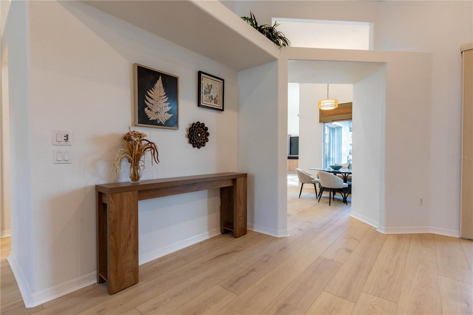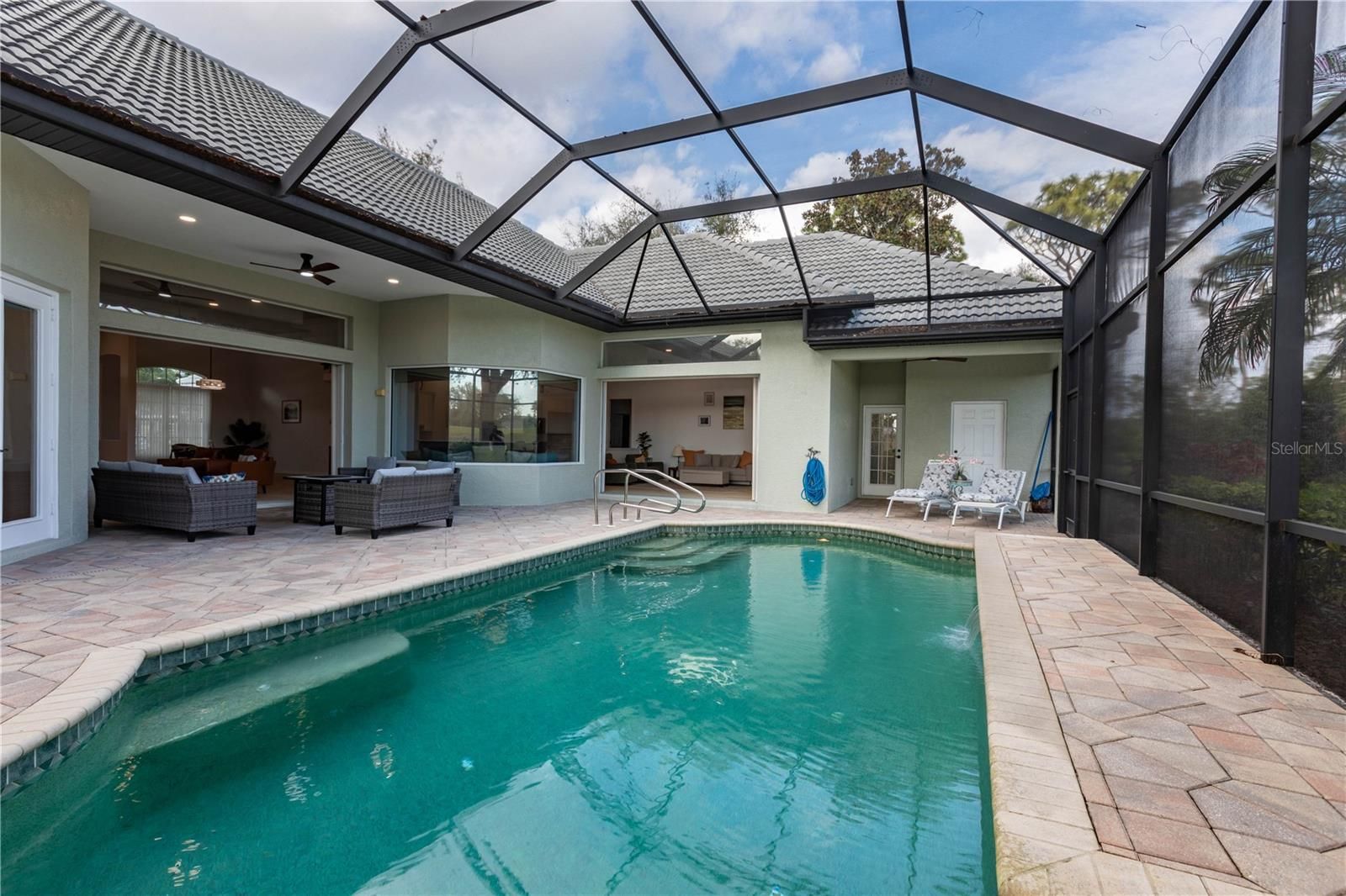 Welcome to your dream home in The Reserve! This newly renovated residence offers 4 bedrooms, a den, and 3,500 square feet of luxurious living space. Nestled on a quiet cul-de-sac and nearly half an acre, this property features sweeping golf course views and an expansive private side yard. Enjoy natural privacy with a portion of the yard planted with native Florida trees and palms, which also helps with drainage during the rainy season. The rest of the lot was elevated prior to construction for enhanced water protection. Inside, you’ll find new 9x78 hybrid oak plank flooring in the main living areas, den, and guest bedrooms. The primary bedroom has new neutral textured carpet throughout the bedroom, linen closet, and two walk-in closets. All three bathrooms have been fully updated with porcelain tile floors, contemporary vanities, and modern tiled showers. Fixtures and plumbing are newly updated as well. The expanded pool bath now includes direct pool access, a changing area, and extra storage. The kitchen is a chef’s delight with custom white shaker cabinets, cove crown molding, quartz countertops, and an extra-large stainless-steel sink. All appliances are less than 5 years old. Both main living spaces feature disappearing triple sliding doors—perfect for entertaining or soaking in the beautiful surroundings. Fresh paint and new lighting throughout create a bright, modern feel. Step outside to a Pebble Tec inground pool, decorative paver lanai, and brand-new screening. Additional highlights include a new roof (2024), a massive 36x22 garage with closet storage, a 2021 hurricane-rated garage door, and a hot-water-return system for instant hot water. The main house AC and water heater are approximately 5 years old, and irrigation is from a private well. This home is being offered with all furniture and decor pictured for the buyer’s convenience, at no additional cost. Sellers are happy to remove all furniture and decor as well, if that is the preference. The Reserve is a highly sought-after gated community known for its beautiful environment and close proximity to golf, shopping, dining, and area beaches. This home is perfect for those seeking space, privacy, and natural surroundings, all while enjoying convenient access to everything the area has to offer.
