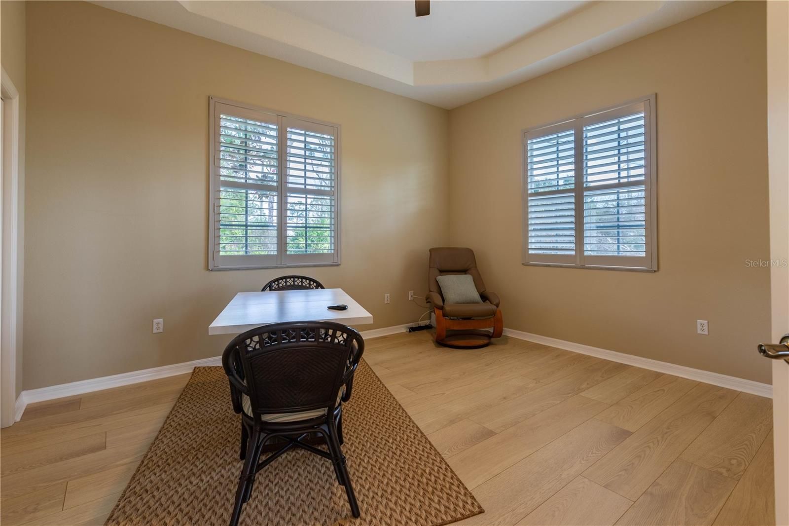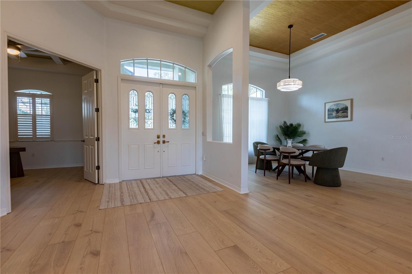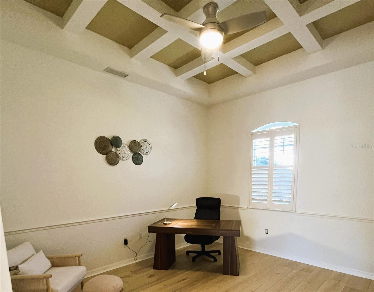 - Accessibility Features, Ceiling Fan(s), Chair Rail, Coffered Ceiling(s), Crown Molding, Eat-in Kitchen, High Ceilings, Kitchen/Family Room Combo, Living/Dining Room, Main Level Primary, Solid Surface Counters, Solid-Wood Cabinets, Split Bedrooms, Thermostat, Tray Ceiling(s), Walk-In Closet(s), Window Treatments