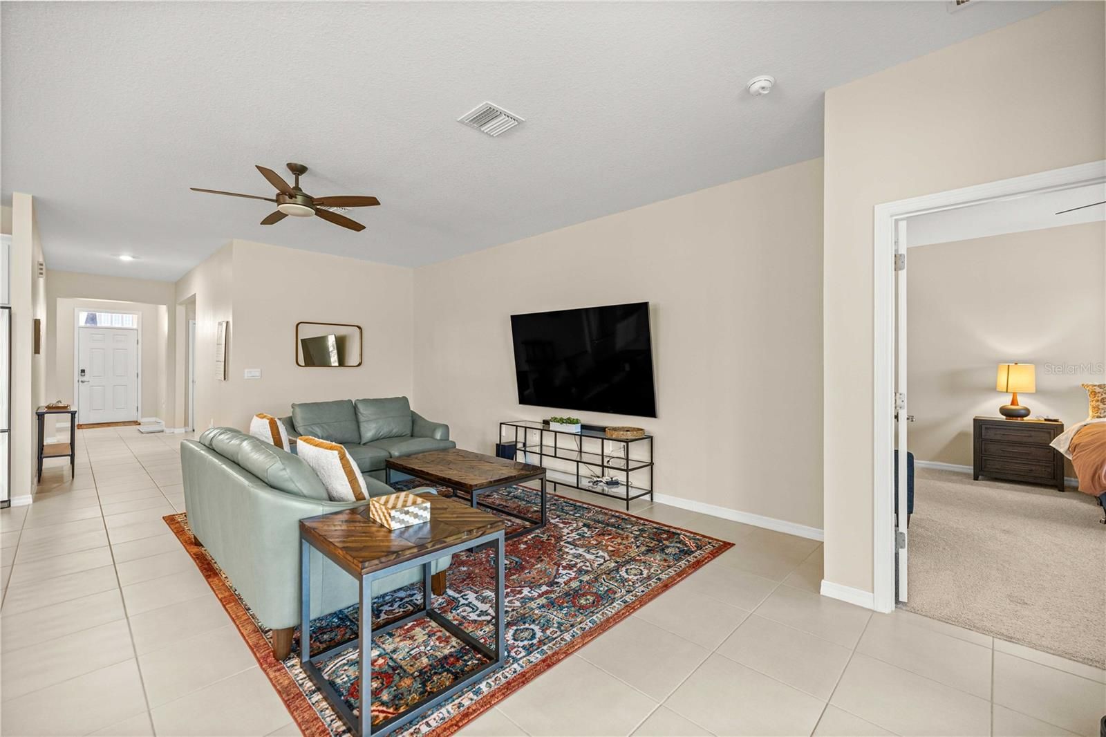 - Ceiling Fan(s), Open Floorplan, Main Level Primary, Split Bedrooms, Thermostat, Walk-In Closet(s), Window Treatments