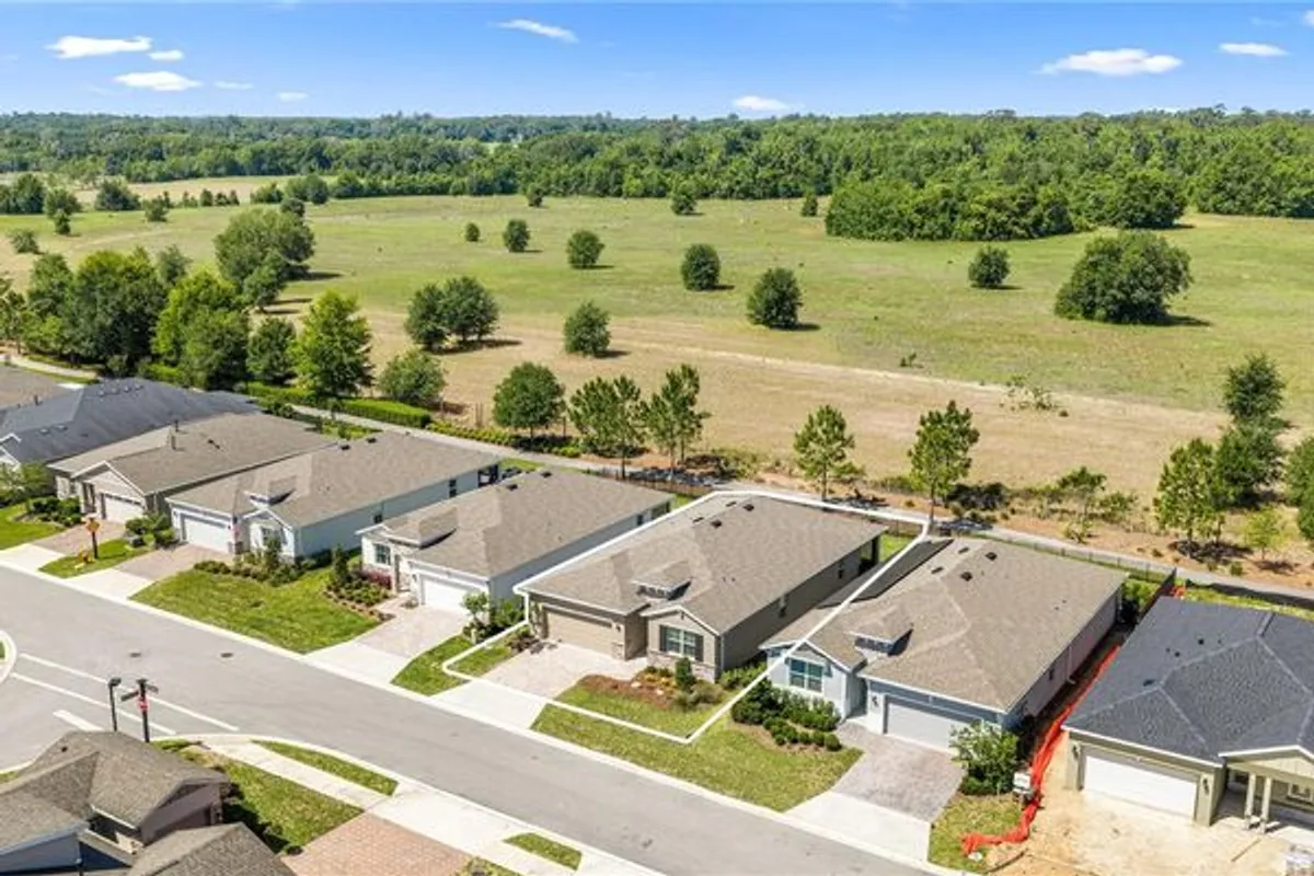 Located in the trendy resort style community of Ocala Preserve ideally positioned between I-75 and World Equestrian Center, this beautifully maintained 4-bedroom, 2-bathroom home offers approximately 2,036 sq. ft. living space on a premium lot featuring a fenced backyard and lovely pasture views! Perfect for the busy active lifestyle and the equine athlete, wanting lock and leave living. This home features upgraded curb appeal with lovely stone facade front elevation. Step inside and you’ll find a thoughtful layout offering privacy and comfort for your guest and family while the open living, dining and kitchen area are designed for relaxed living and easy entertaining. The kitchen is wrapped in white shaker cabinetry and sleek granite countertops and highlights a large island, walk-in pantry and stainless appliances. The primary bedroom features an ensuite bathroom with double sinks, walk-in shower, water closet and two walk-in closets. The screened lanai with ceiling fans offers year round outdoor enjoyment. Additional features include gutters, window treatments, ceiling fans and an electronic patio door sun shade. Ocala Preserve is perfect for the active lifestyle with state of the art amenities, spa services, on-site restaurant, 25 miles of walking and biking trails, dog park, and golf memberships. HOA covers full lawn landscape maintenance, irrigation, gated community, internet, access to clubhouse, pools, and restaurant. Additional amenities available with a membership fee. Located minutes to WEC, HITS, Publix, Gold's Gym, Starbucks and shopping, restaurants, craft bars, cafes close by and in Ocala’s Downtown Square and Farmers Market. Whether you’re in the mood for a trendy dinner spot, a cozy coffee or just unwinding and listening to music, you’ll find plenty of options. ***Age restricted section, one owner must be 55+, No CDD.