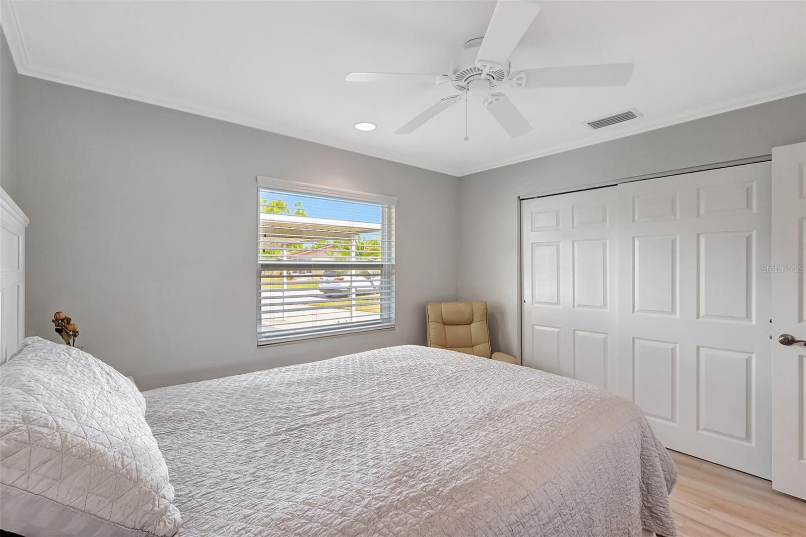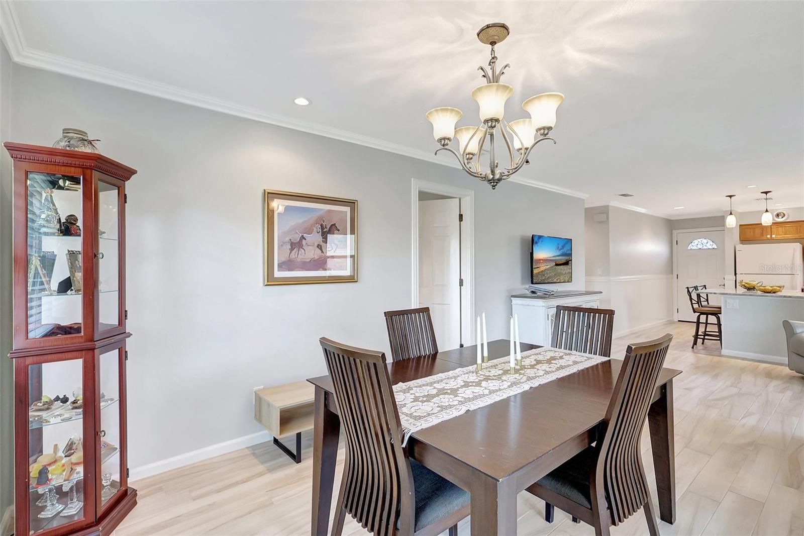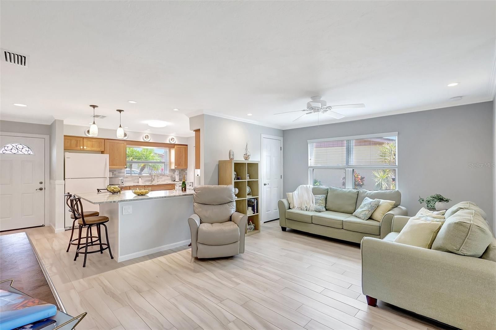 - Ceiling Fan(s), Chair Rail, Crown Molding, Eat-in Kitchen, Kitchen/Family Room Combo, Living/Dining Room, Open Floorplan, Stone Counters, Thermostat, Walk-In Closet(s), Window Treatments