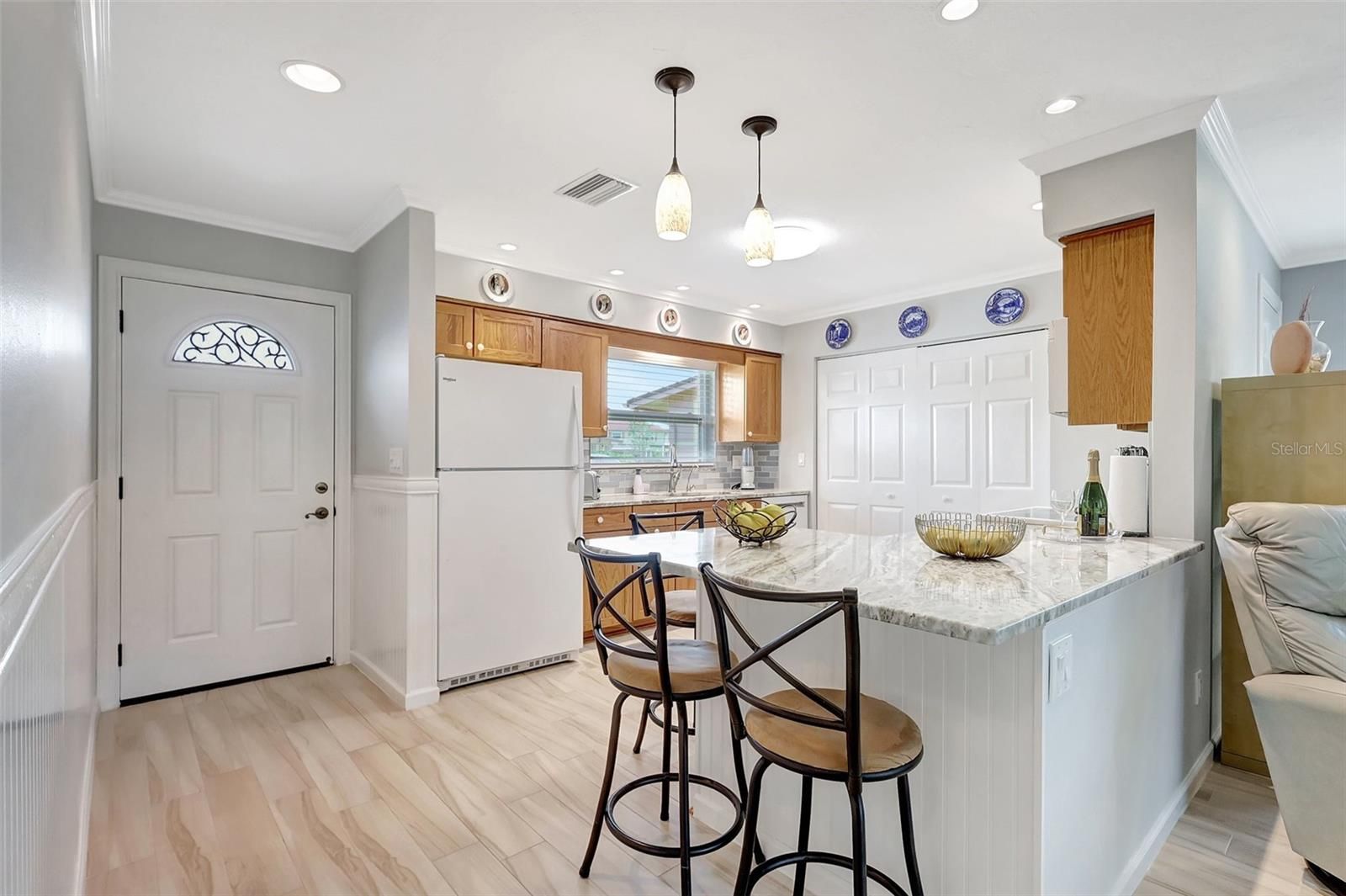 PRICE IMPROVED ready to sell and a MUST SEE impeccable gem!! This is the one you've been looking for! Beautifully recently updated 2-bedroom, 2-bathroom villa. Nestled in a peaceful cul-de-sac within the sought-after maintenance-free 55+ community of Lake Tippecanoe, this charming well-appointed end-unit villa is ready to impress! The home features a bright, spacious, open floor plan, with an abundance of storage/closets and high-end finishes. Recent upgrades include: porcelain tile flooring and recessed lighting throughout, newer blinds, doors, plus granite countertops in both kitchen and bathrooms, and tiled showers with glass doors for an elegant touch. Offering additional improvements such as a newer roof (2024), water heater (2019) and a newer AC (2021) located in the storage closet in lanai for maintenance convenience, + 2024 dishwasher. There's also no carpet, no popcorn ceiling, recently painted interior, freshly landscaped exterior, and for added convenience there's an interior laundry closet and a carport with guest spot right out front. Enjoy the tranquil atmosphere of the private back porch, which comes with a newly installed screen and door, and storage closet. You'll just love tis active social community offering the amenities you want in your Florida home, including a heated pool, clubhouse, pool table, shuffleboard court, and breathtaking views of serene Lake Tippecanoe just across the way. Can you imagine, the affordable monthly fees have actually been recently lowered?! It covers lawn maintenance, community pool, clubhouse, internet, basic cable, water, sewer, pest control, management, and roof. Centrally located in Sarasota, you'll be close to our famous beaches, Downtown Sarasota, UTC area, golf courses, shopping, dining, hospitals, and more! Don’t miss the opportunity to make this hidden gem your own year-round home or home away from home—schedule a tour today!