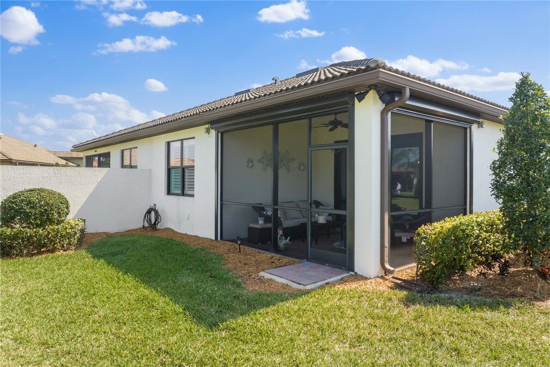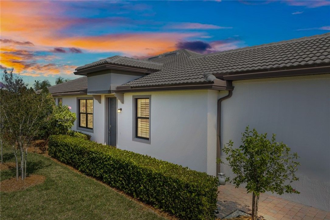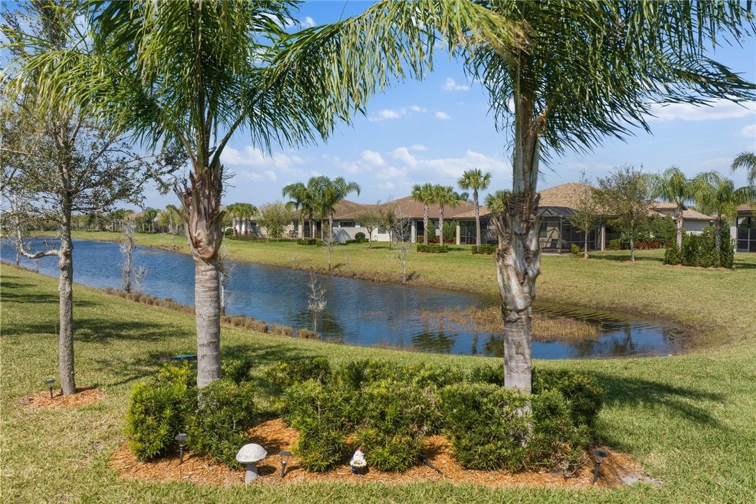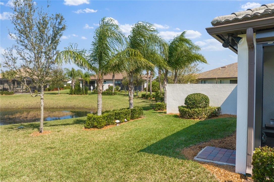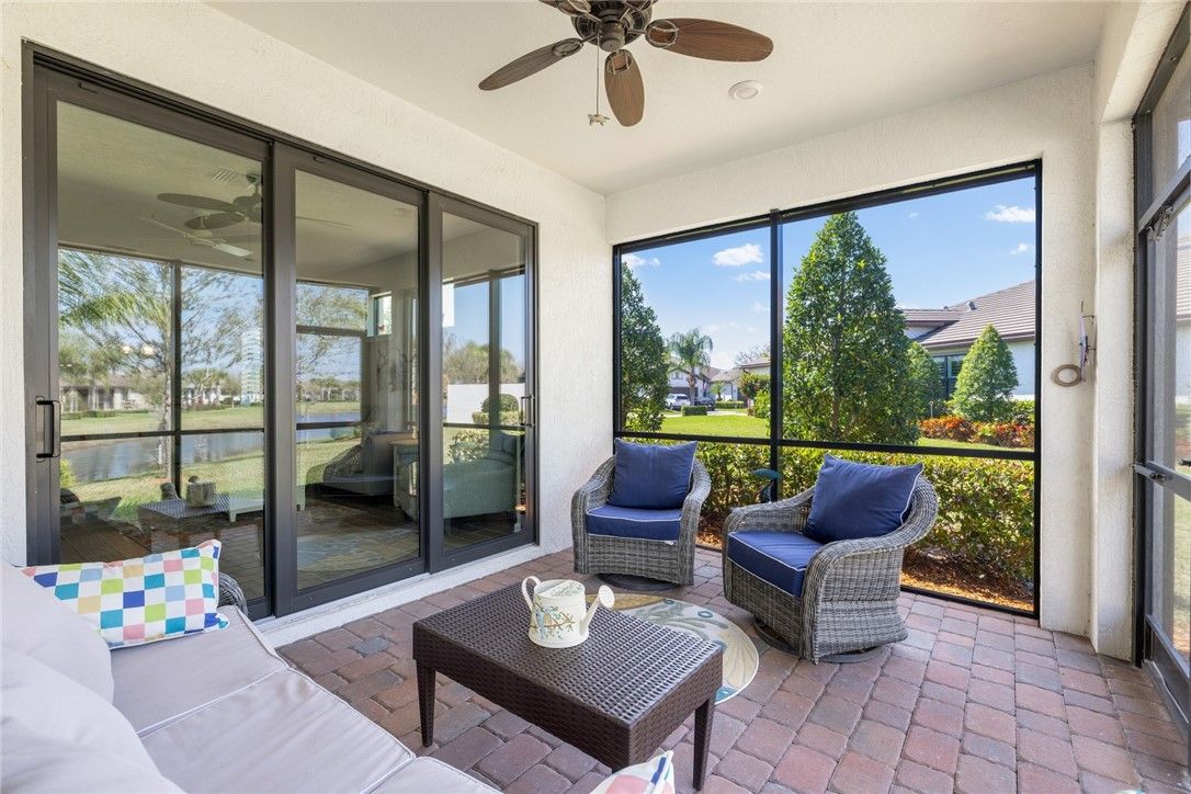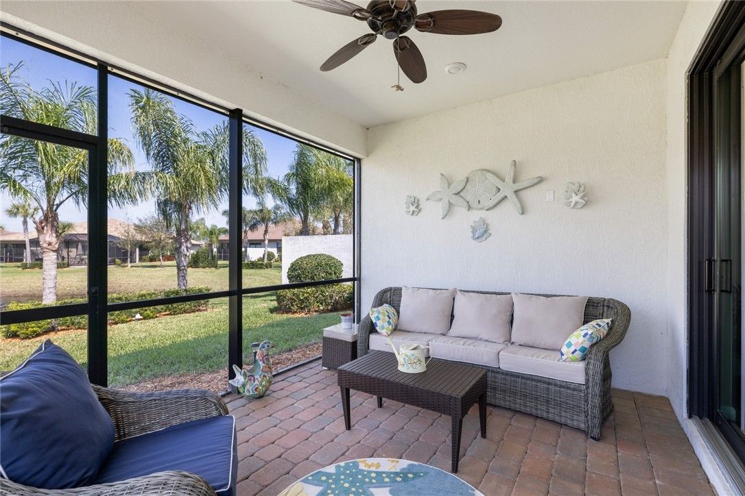 Why Wait to build! Beautifully appointed Villa on a huge premium lot offers 2BR/2BA+ Den/Flex Room! Open floor plan w serene lake views, Impact Glass, Tile throughout main living area, gorgeous kitchen, Plantation Shutters, Granite baths, Walk-In shower, furnishings negotiable! Relax on the lakefront, screened lanai. Gated Community has it all! Active Clubhouse, Fitness Center, Bar, Card Room, Pool, spa, Tennis & Pickleball