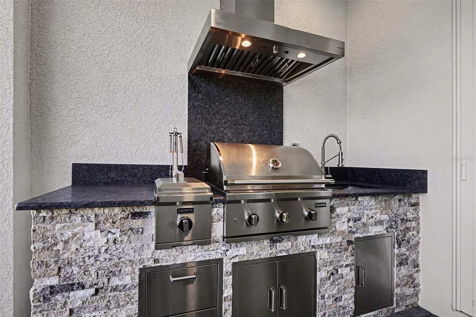 Welcome to this exceptional 3-bedroom, 2-bath Khaya Villa, offering low-maintenance luxury living in Regency — the only active 55+ community within the highly sought-after Babcock Ranch master-planned community in Florida. This beautifully upgraded Khaya Villa features a spacious open-concept design filled with high-end finishes. The expansive great room and casual dining area seamlessly connect to the chef-inspired kitchen, showcasing an oversized island, abundant counter space, upgraded cabinetry, a large pantry, and built-in appliances—perfect for both everyday living and entertaining. Glass sliders lead from the gathering area to the screened lanai, complete with a high-end outdoor kitchen that features a gas grill, side burner, sink, high capacity exhaust and privacy wall. Enjoy evening beverages, al fresco dining, and stunning sunset views from your private outdoor retreat. The primary suite serves as a serene escape, offering a spa-inspired en-suite bath with a luxurious walk-in shower, dual-sink vanity, linen storage, and a generous walk-in closet. Two additional well-sized bedrooms provide flexibility for overnight guests, a home office, or hobby space. Throughout the home are upgraded, high-quality ceiling fans and light fixtures, elegant plantation shudders, a motorized drop-down window covering on the sliding door leading to the lanai, and a no-see-um screened front porch for added comfort and privacy. Additional highlights include plank throughout, an oversized lot, tray ceilings, a spacious laundry room, and a garage with insulated doors and ceiling. The garage easily accommodates a vehicle and golf cart, with ample space for tools and a dedicated work area. Discover Regency, an exceptional 55+ active adult community where luxury meets lifestyle. Resort-style amenities include a sparkling pool with lap lanes, a state-of-the-art fitness center, group exercise classes, yoga lawn, pickle ball and tennis courts, bocce ball, shuffleboard, fire pit, golf simulator, billiards, and a scenic three-mile walking and biking path surrounding a tranquil lake. The vibrant social scene features weekly Tuesday morning breakfasts, weekly social events, game nights, and resident-planned group activities—offering endless opportunities to stay active, engaged, and connected. Whether you’re seeking relaxation, recreation, or new friendships, Regency offers the perfect place to call home.